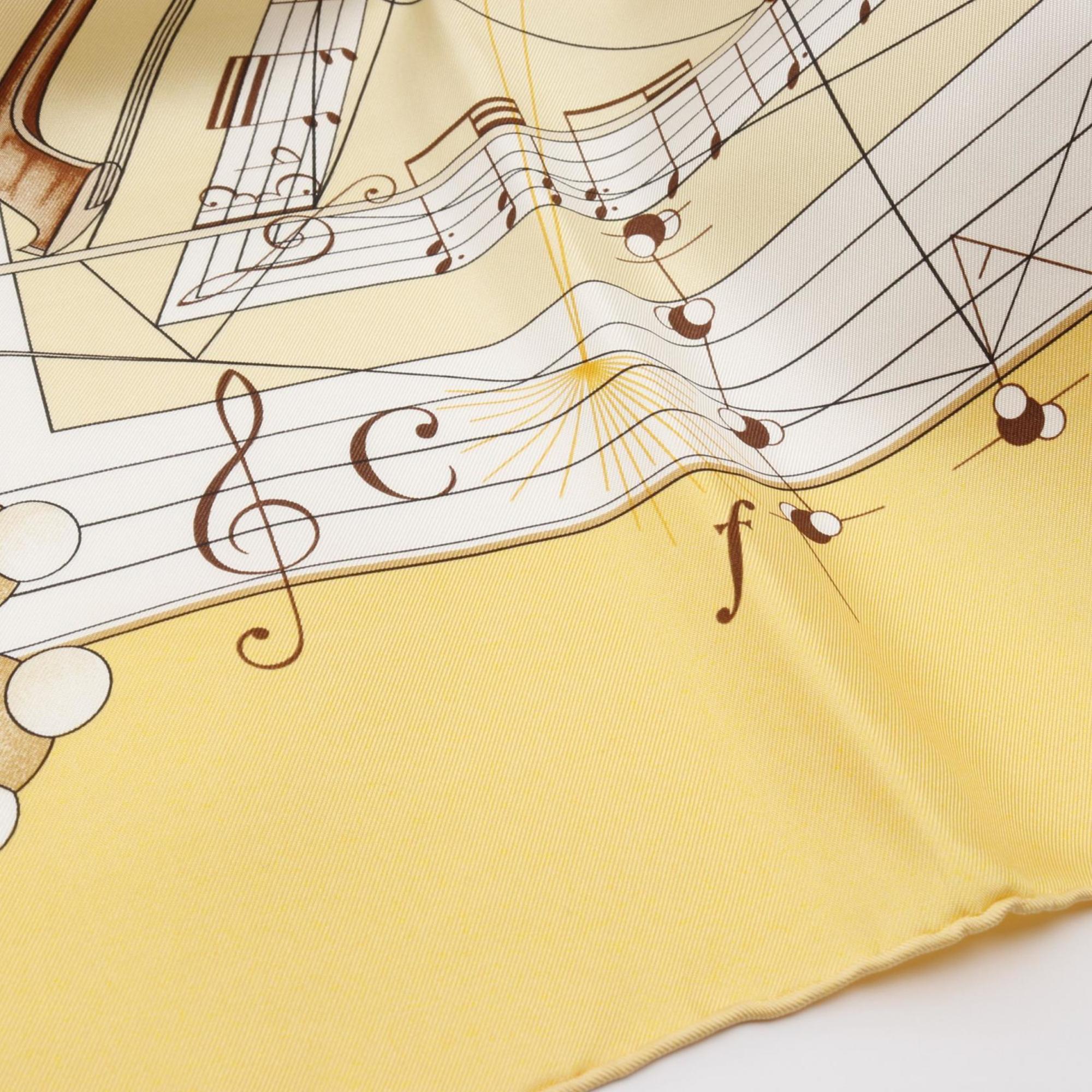 Hermès HERMES Carré 90 "La Musique des Spheres" Silk Scarf for Women in Multicolored Yellow