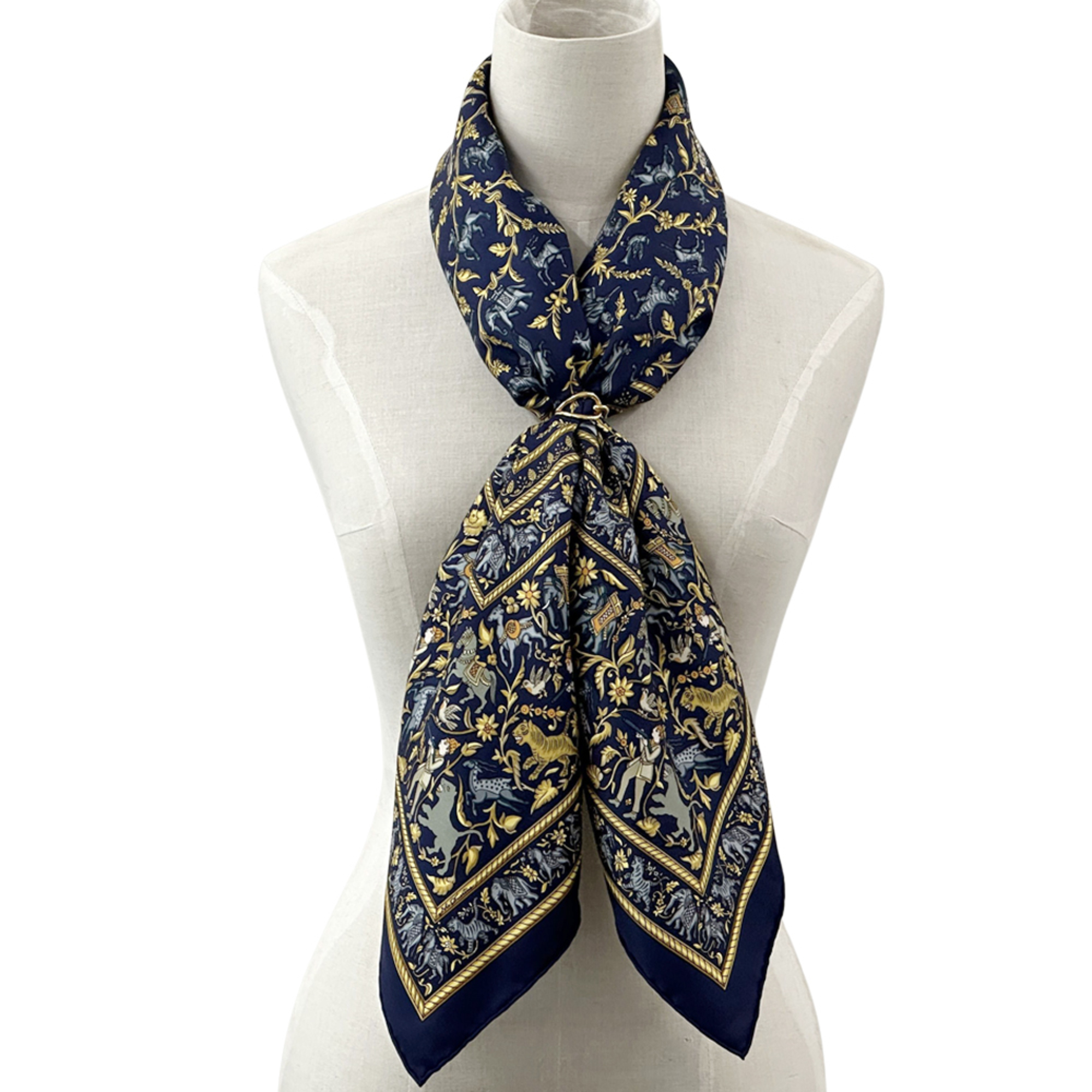 Home / ACCESSORIES / Hermès HERMES Carré 90 Scarf, “Chasse en Inde,” Indian Hunting, Women’s, Silk, Navy, Multicolor