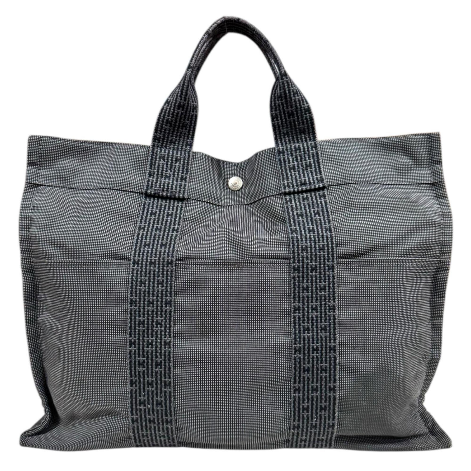 Hermès Tote MM Air Line Bag, Canvas Gray, Women's, Pre-owned, HERMES