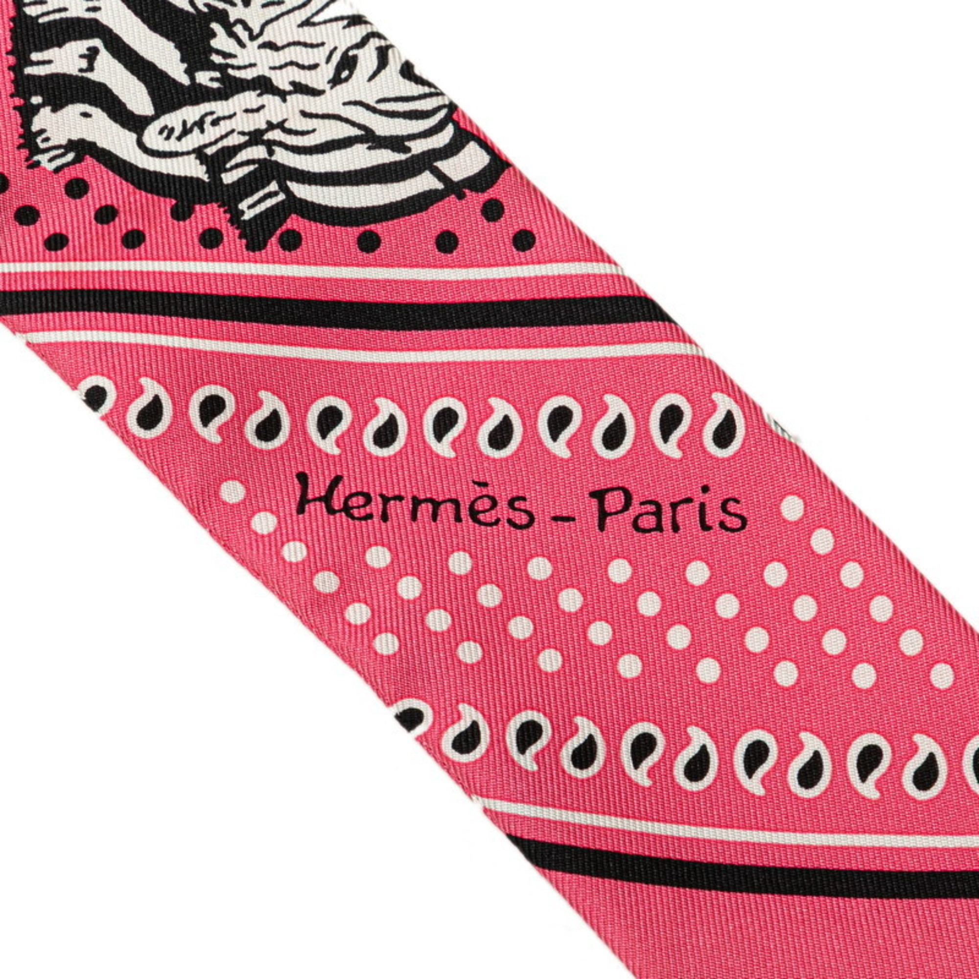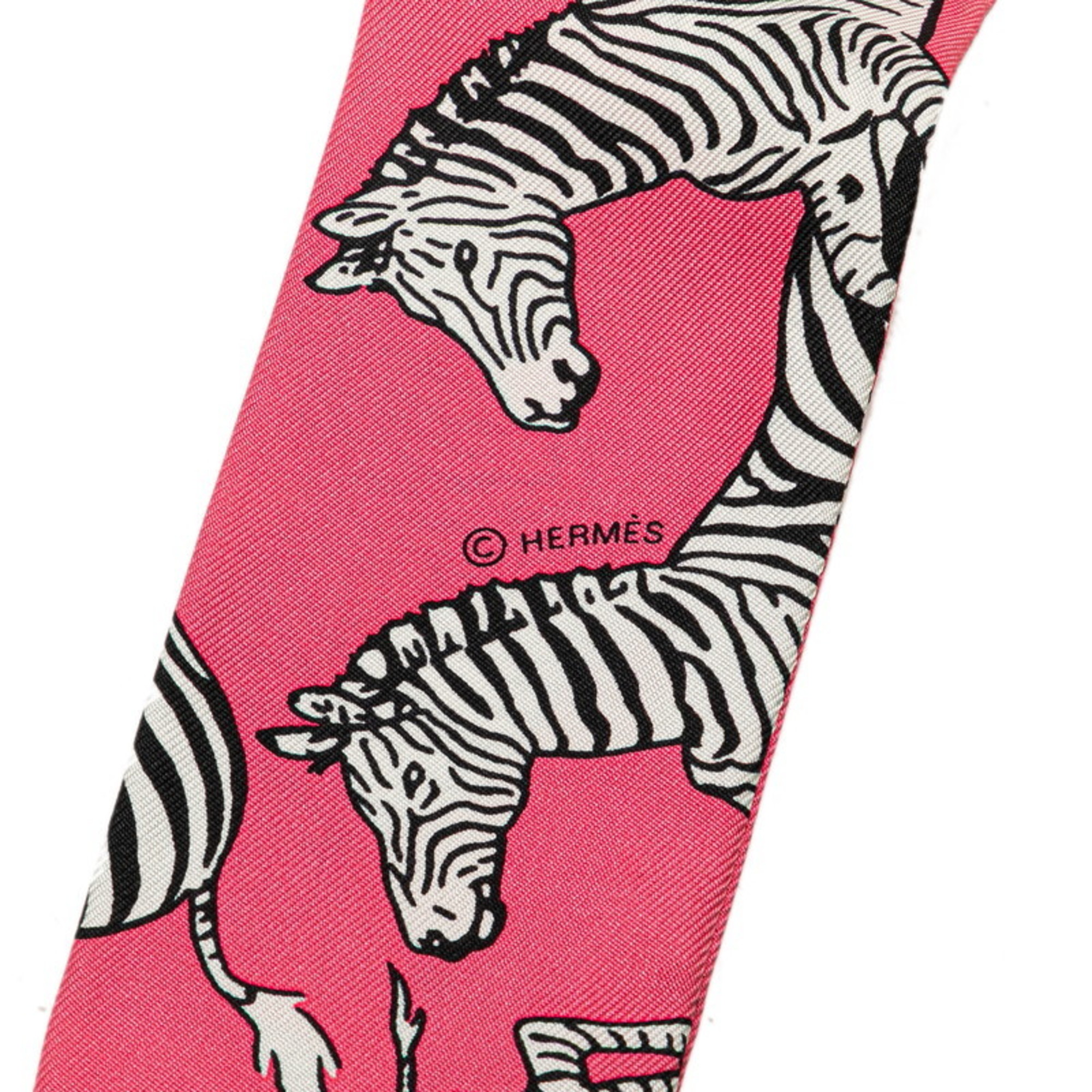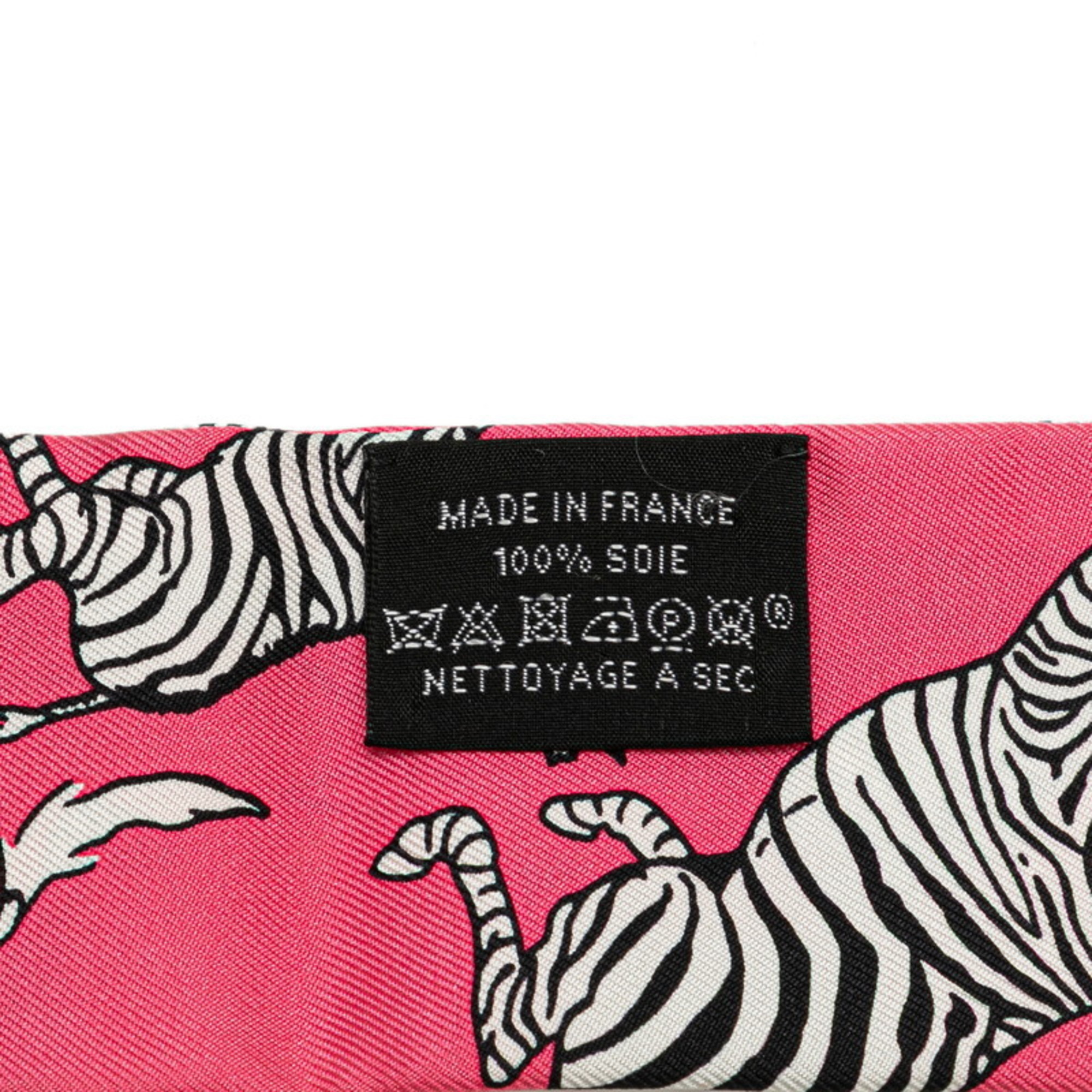 Hermès Twilly LES ZEBRES BANDANA Zebra Bandana Scarf Muffler Pink Black Silk Women's HERMES