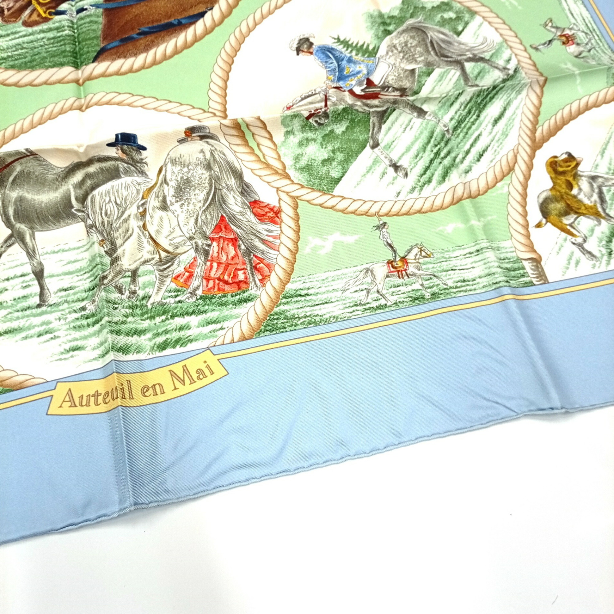 Home / ACCESSORIES / Hermes 100% silk Carré 90 Auteuil en Mai Sky Blue HERMES scarf muffler Unused