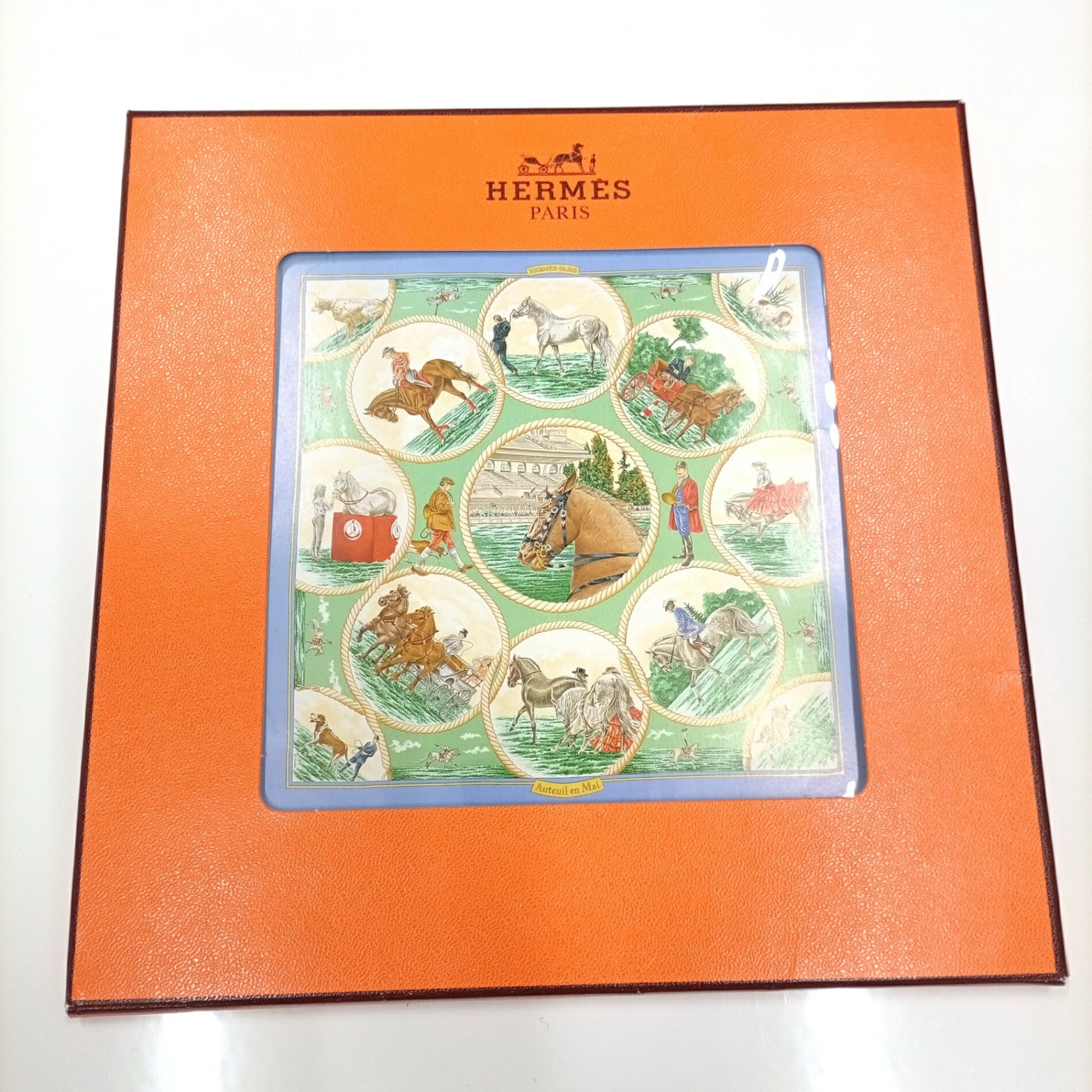 Be the first to review “Hermes 100% silk Carré 90 Auteuil en Mai Sky Blue HERMES scarf muffler Unused”