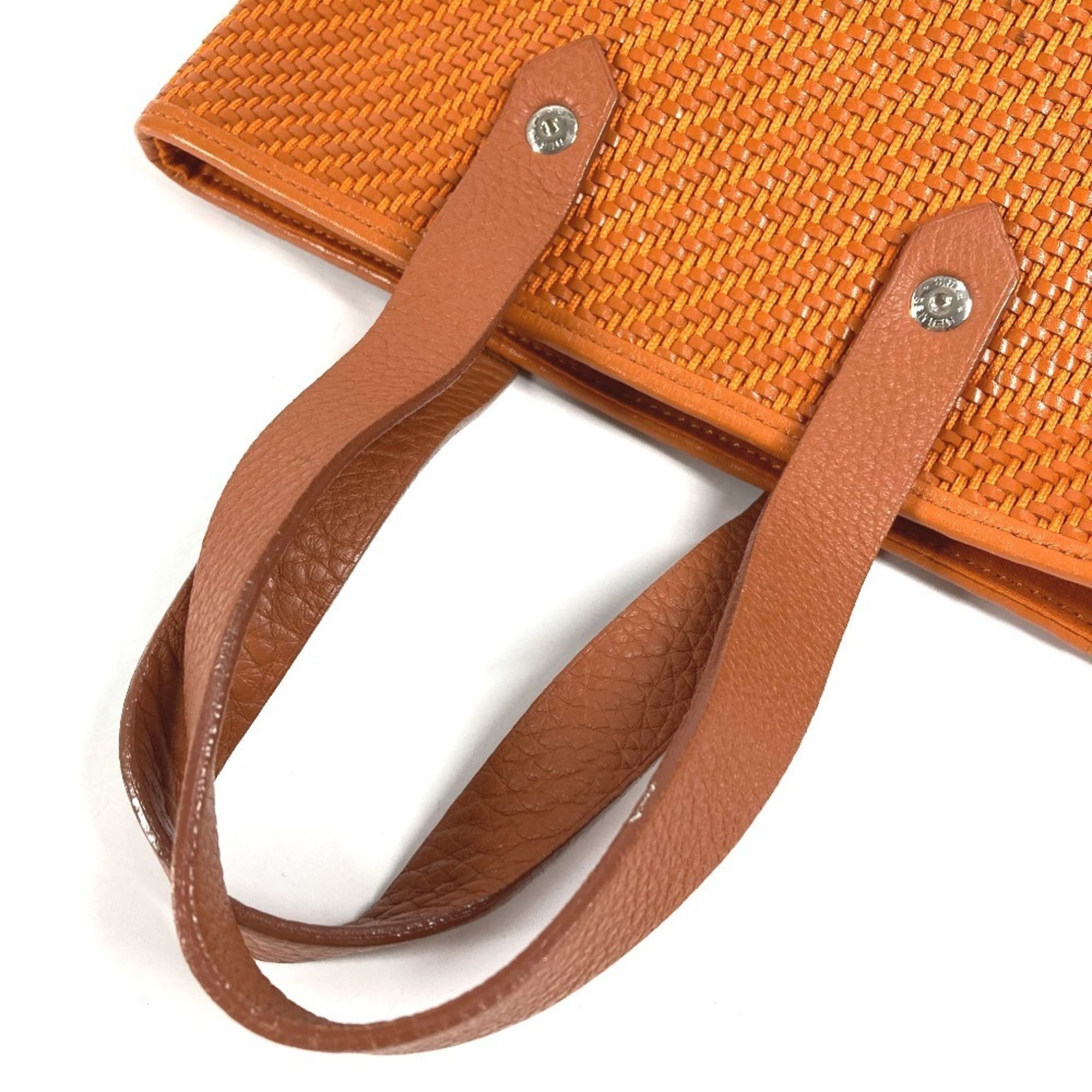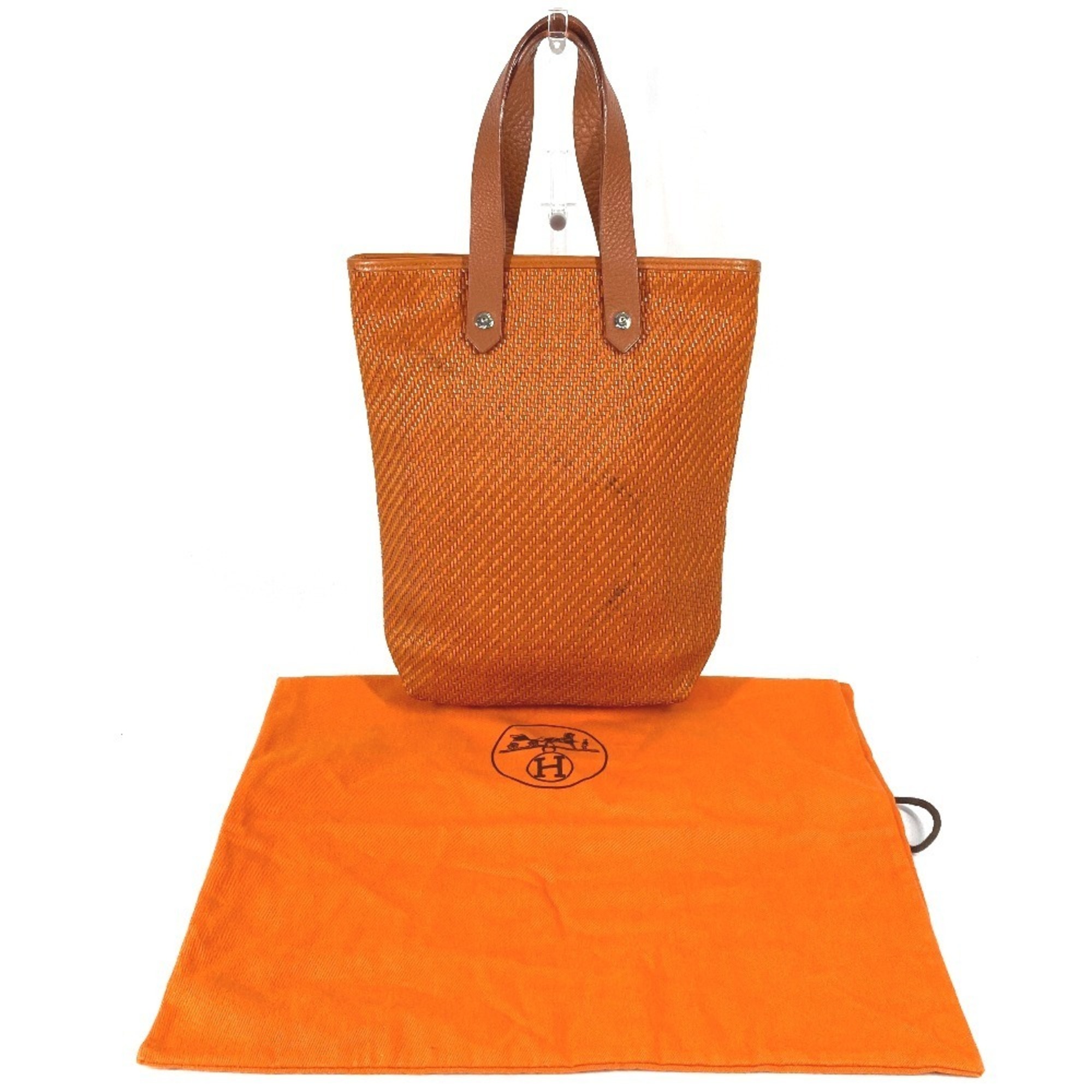 HERMES Amedaba PM Tote Bag, Handbag, Leather and Canvas, Men's Women's, Orange