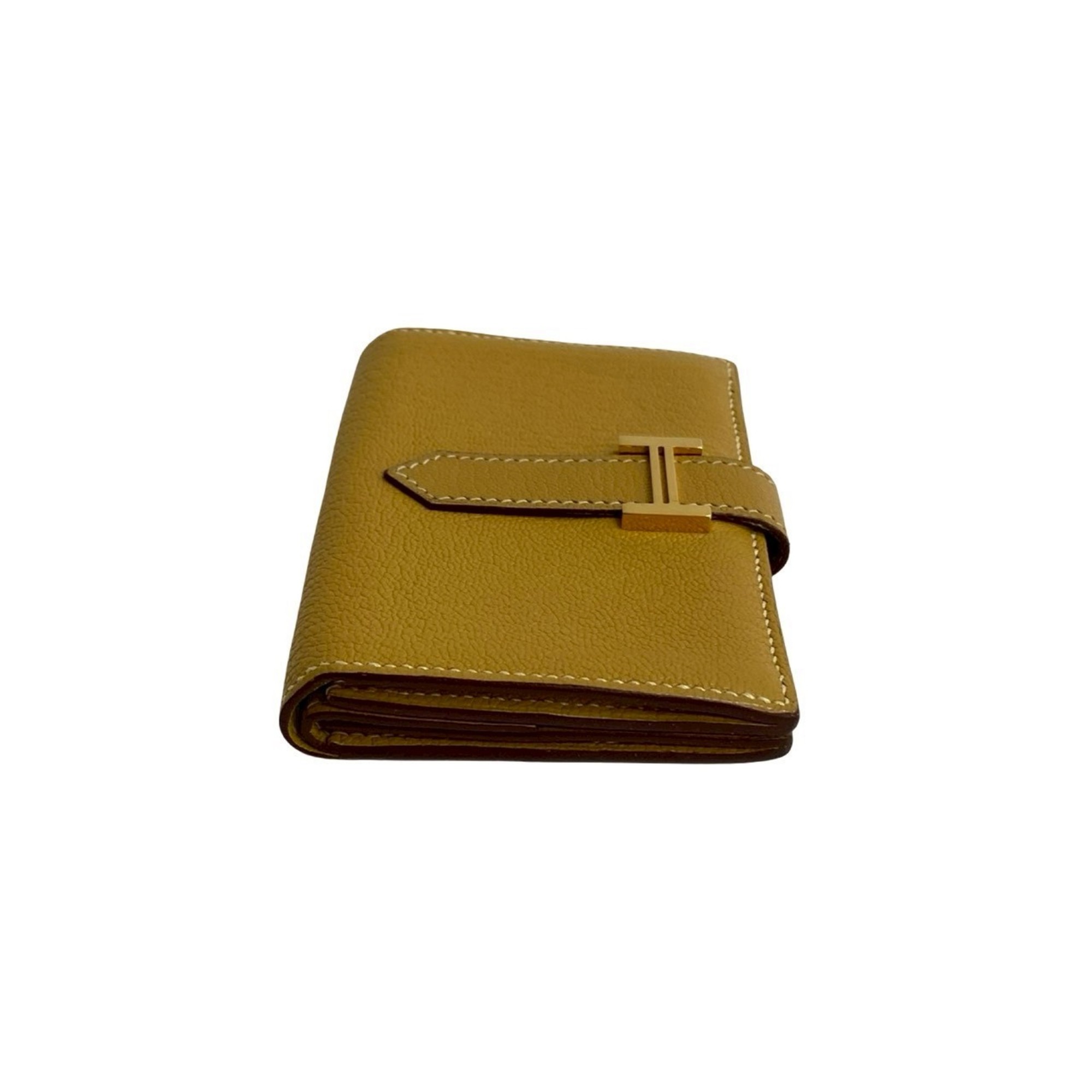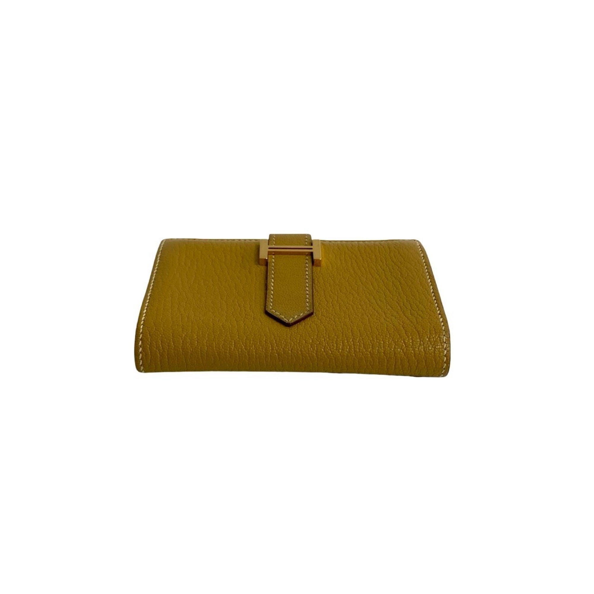 HERMES Bearn Mini Chevre Leather Business Card Case/Card Case, Yellow, 42052