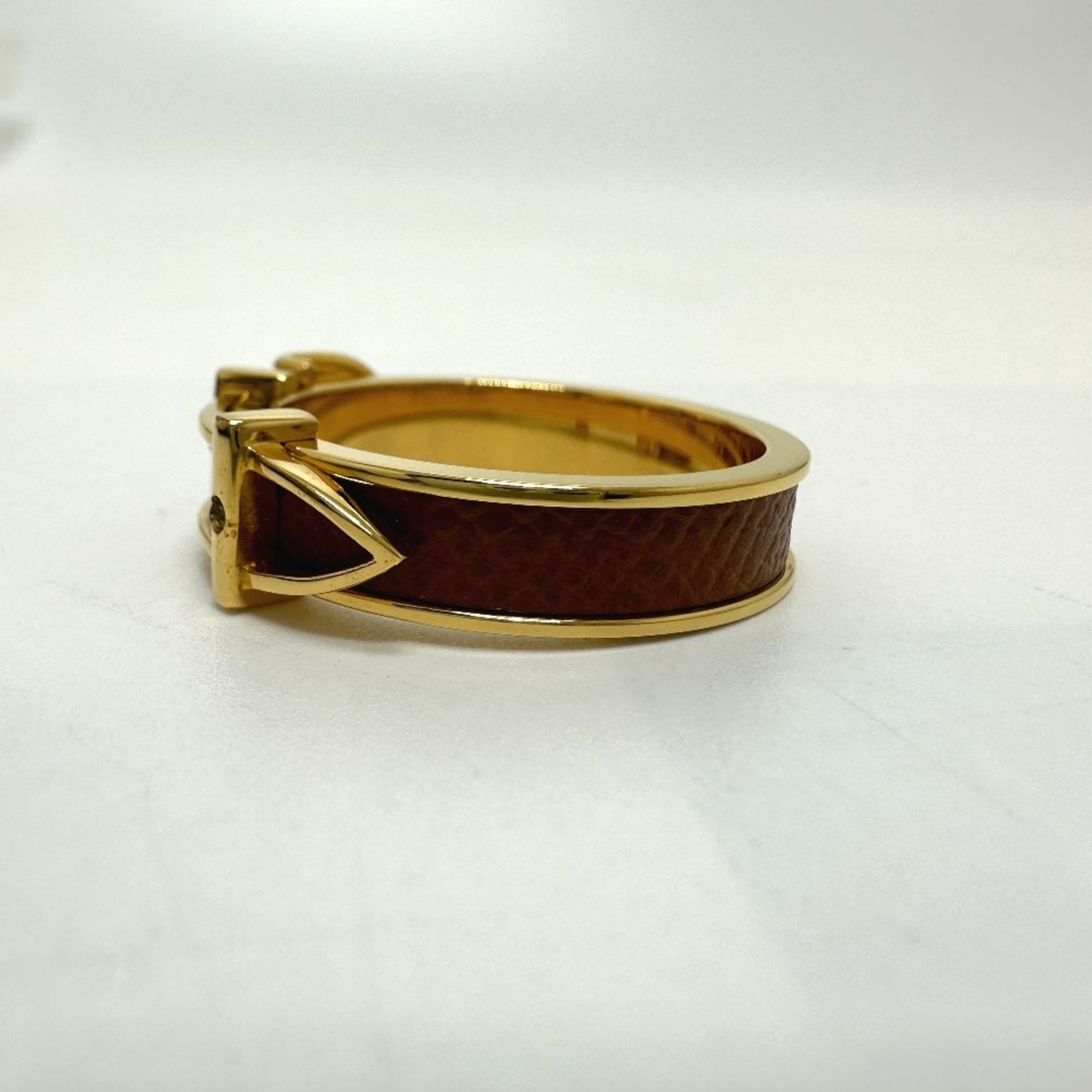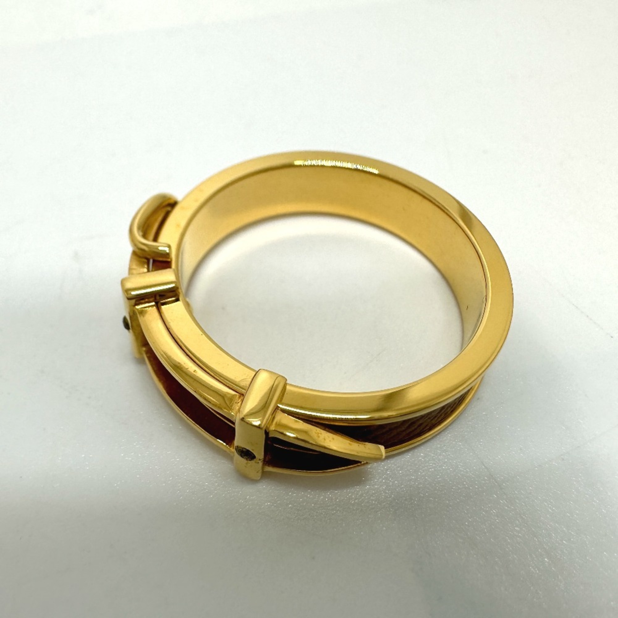 HERMES Belt Motif Scarf Ring GP Women's Beige
