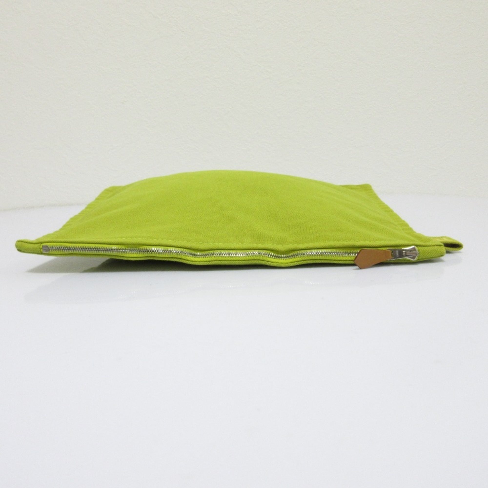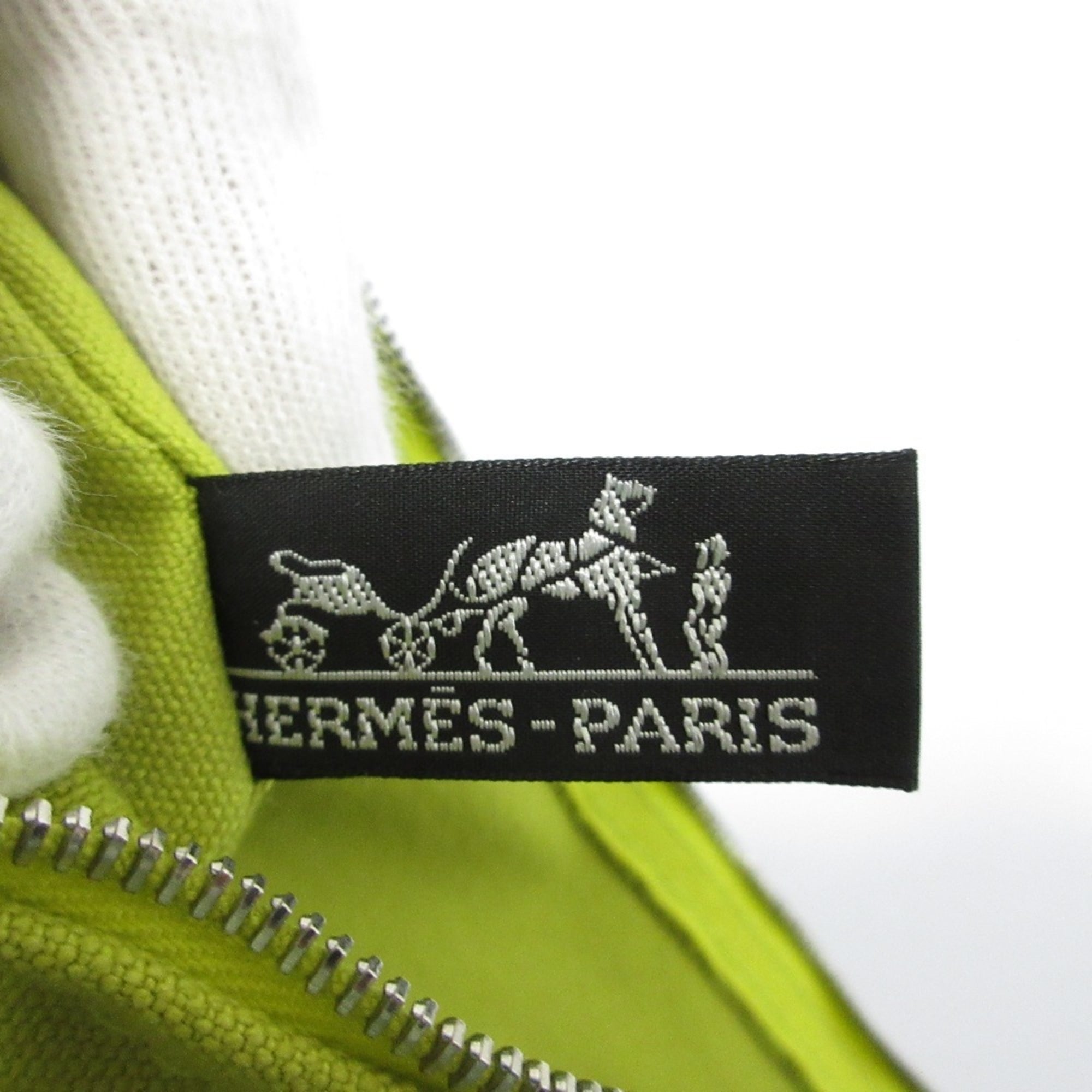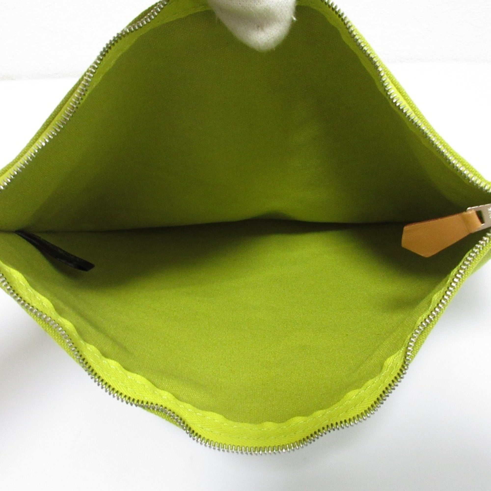 HERMES Bora Canvas Pouch, Yellow-Green, Women's