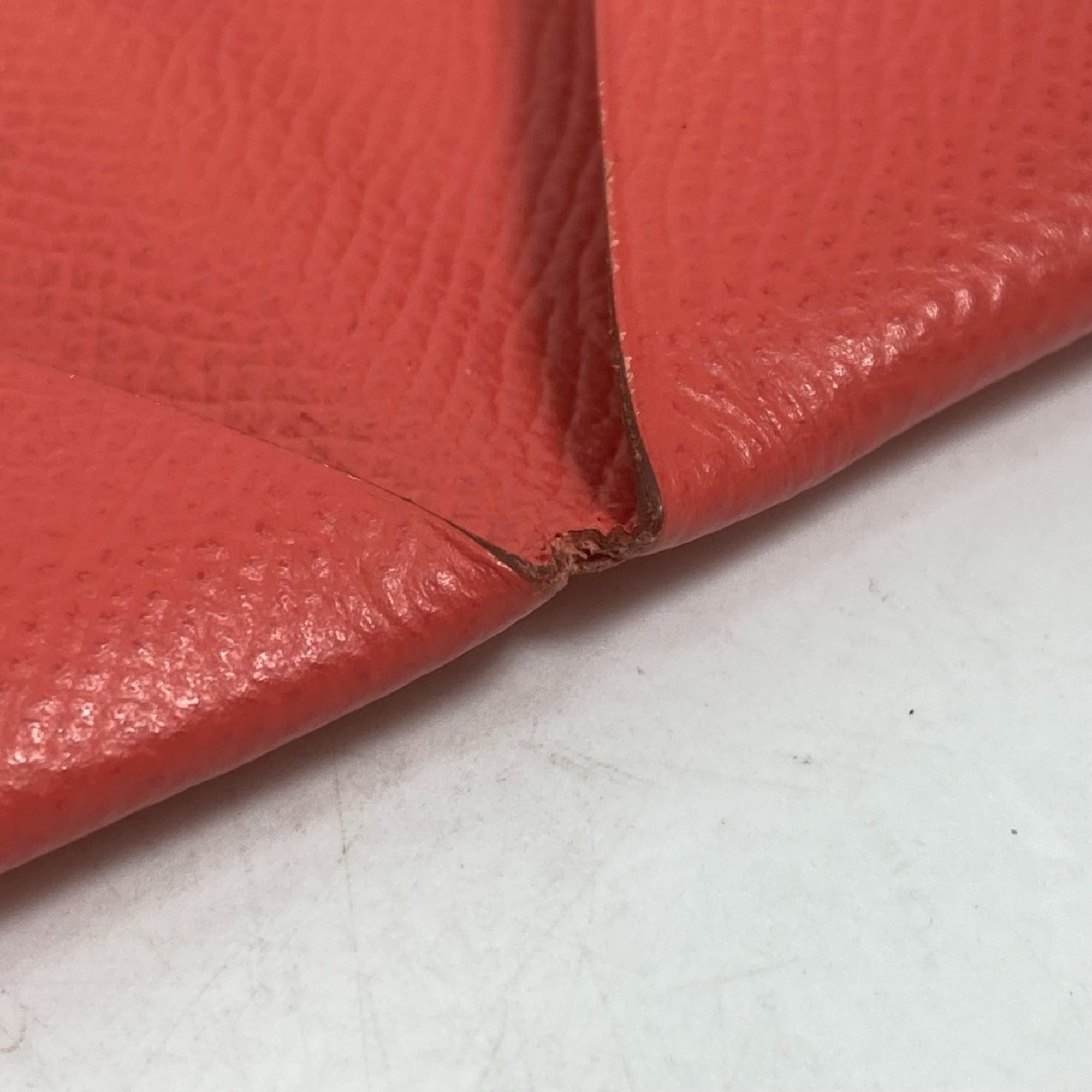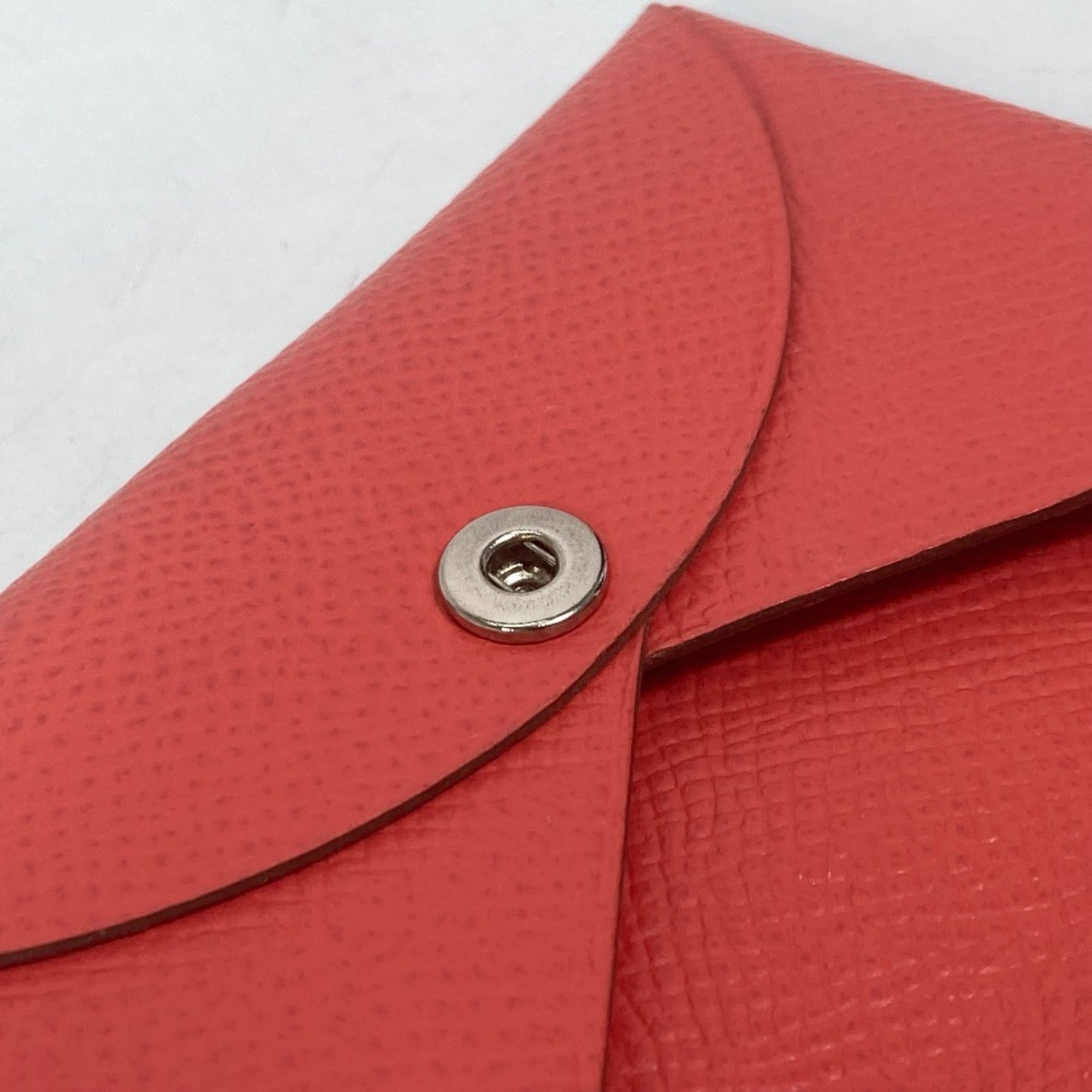 HERMES Calvi Bifold Business Card Case, Pass Epson, Women's, Rose Texas, Red