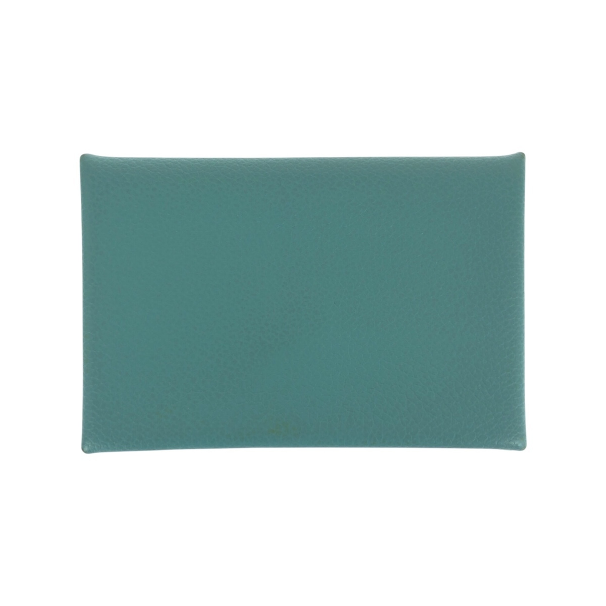 HERMES Calvi Light Blue Chevre Business Card Case with Silver Hardware, A Stamp, Women's