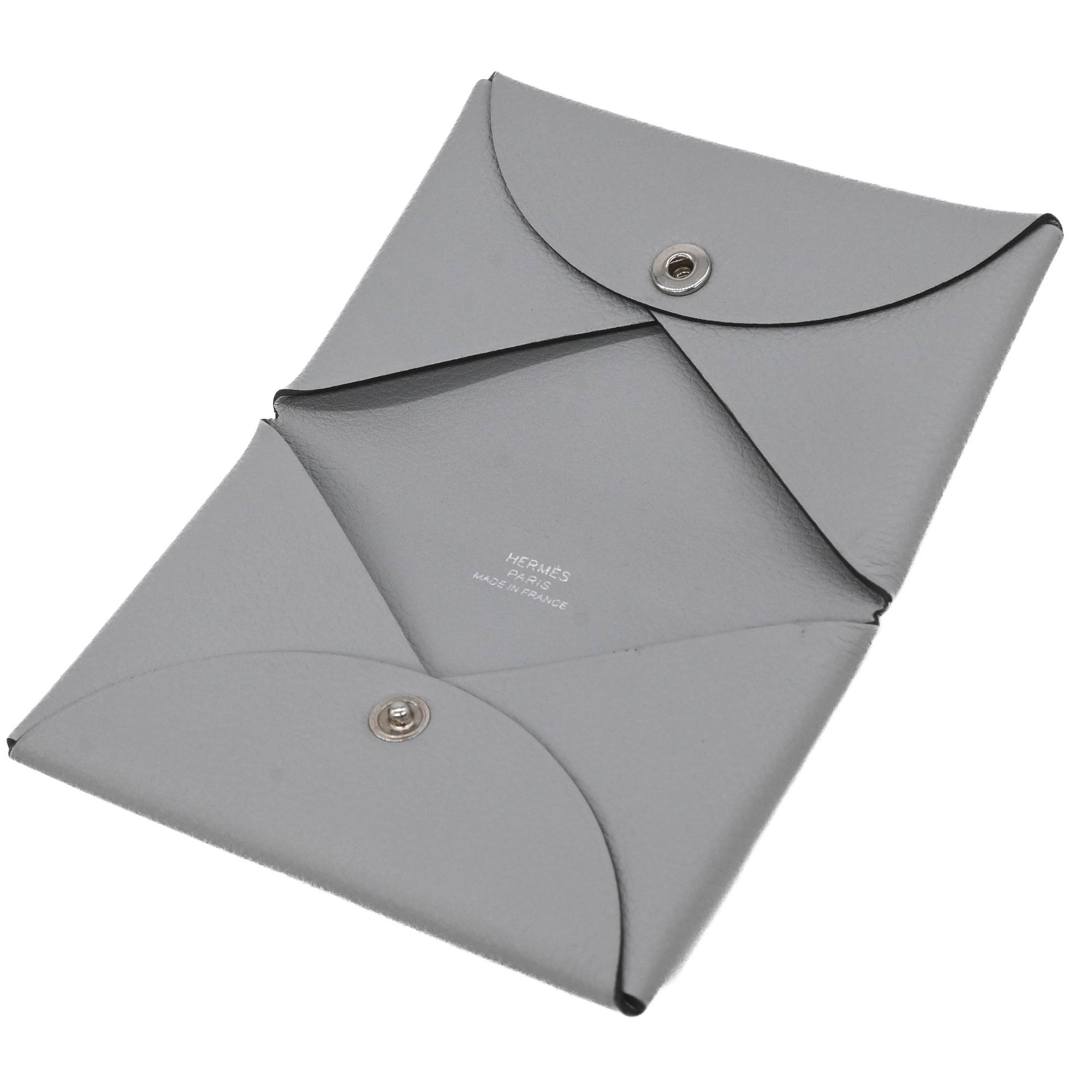 HERMES CALVI Men's Evercolor Gray Leather Wallet/Coin Case #W Chevre Mysore Business Card