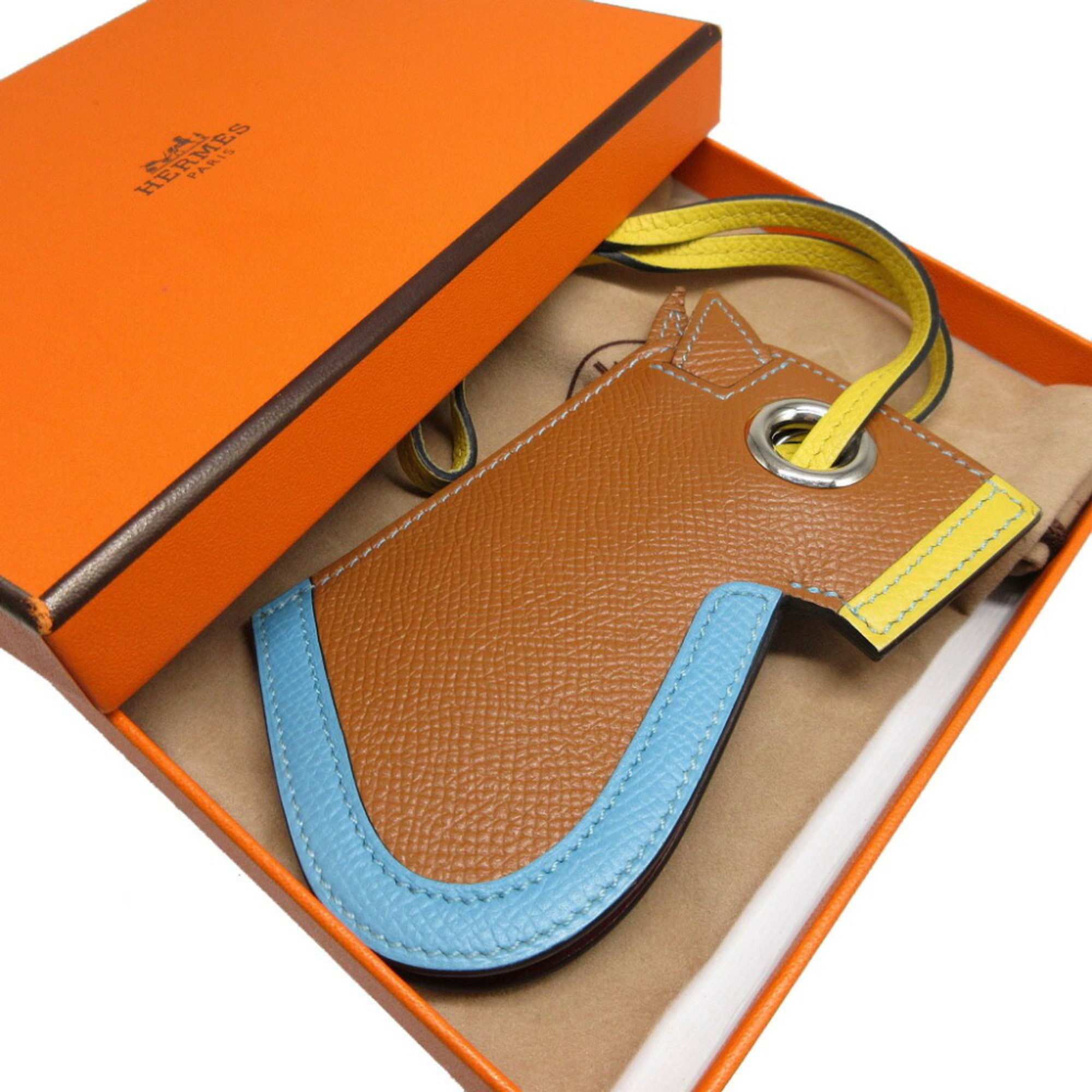 Hermes Camayle Epsom Gold Lime Azur O Stamp (2011) Bag Charm Keychain 0676HERMES