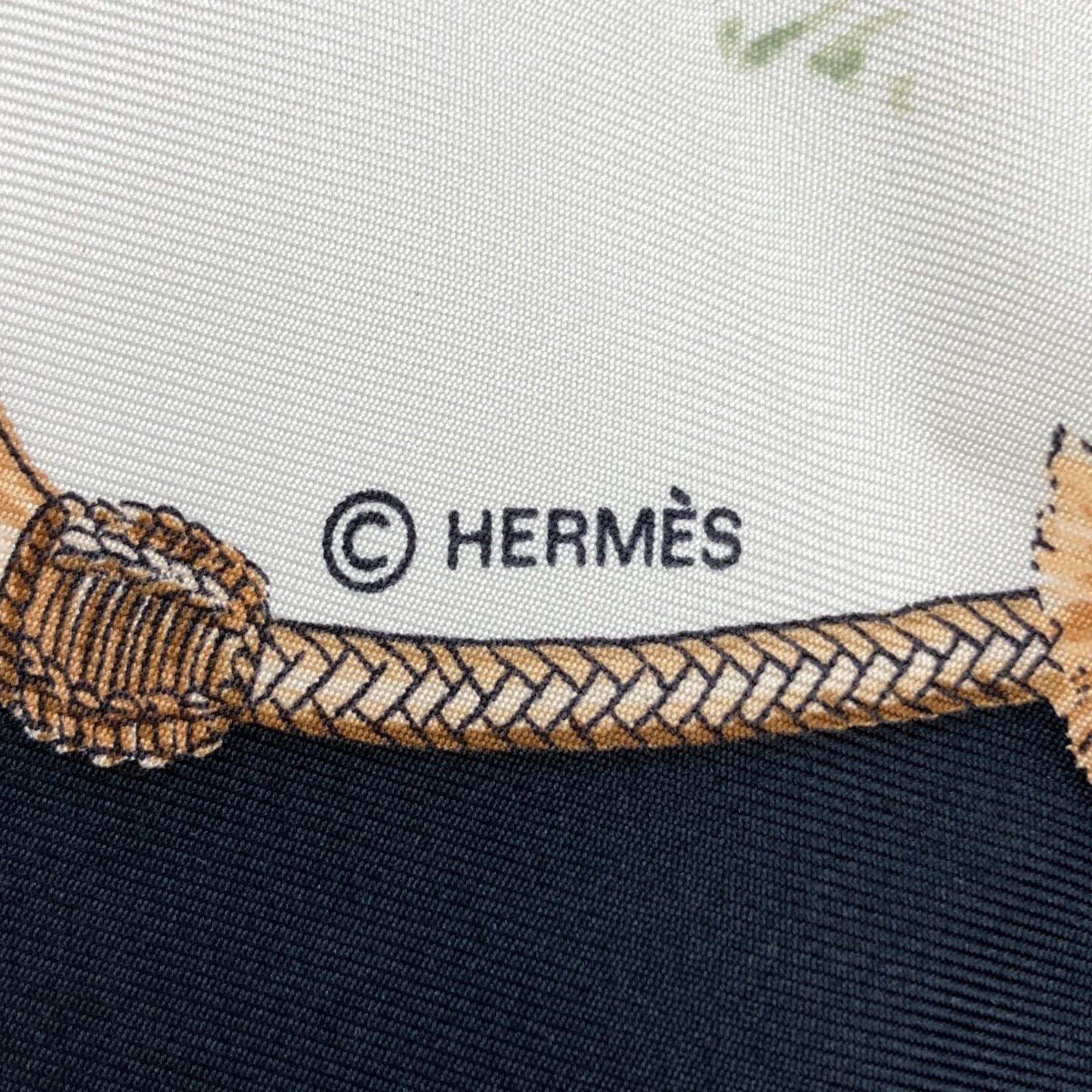 HERMES Carré 90 PAMPA Prairie Jean de Fougerolle Scarf/Muffler with Horse Print, Black, Women's