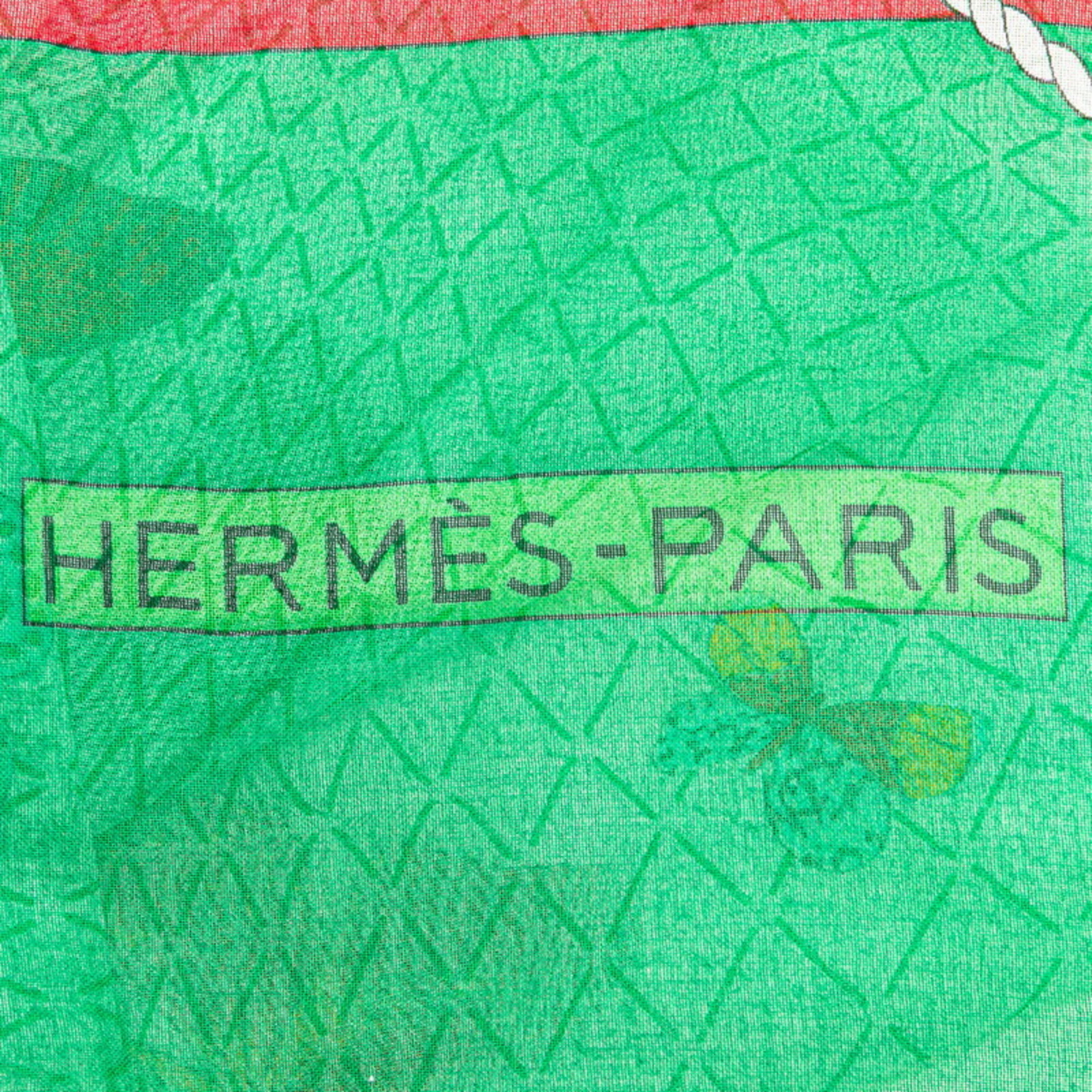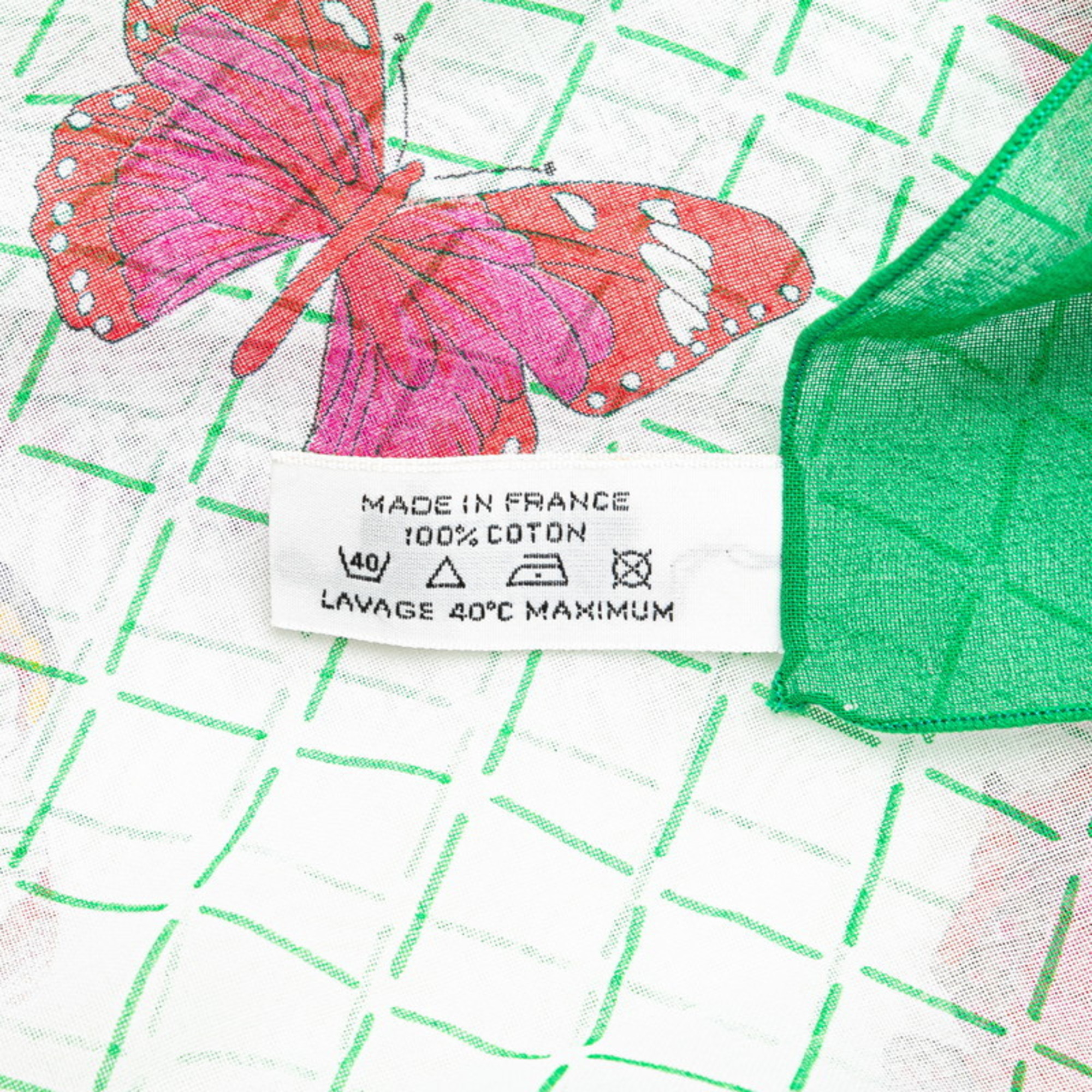 Hermes Carre Gean 140 FARANDOLE Provencal Dance Butterfly Scarf Muffler Green Cotton Women's HERMES