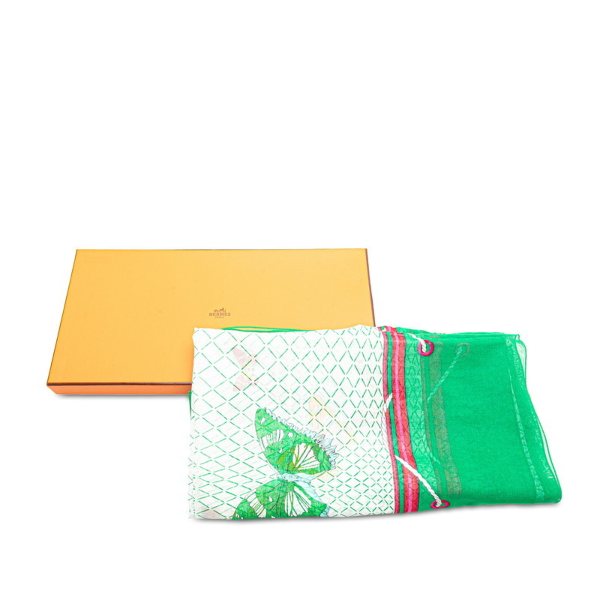 Home / ACCESSORIES / Hermes Carre Gean 140 FARANDOLE Provencal Dance Butterfly Scarf Muffler Green Cotton Women’s HERMES