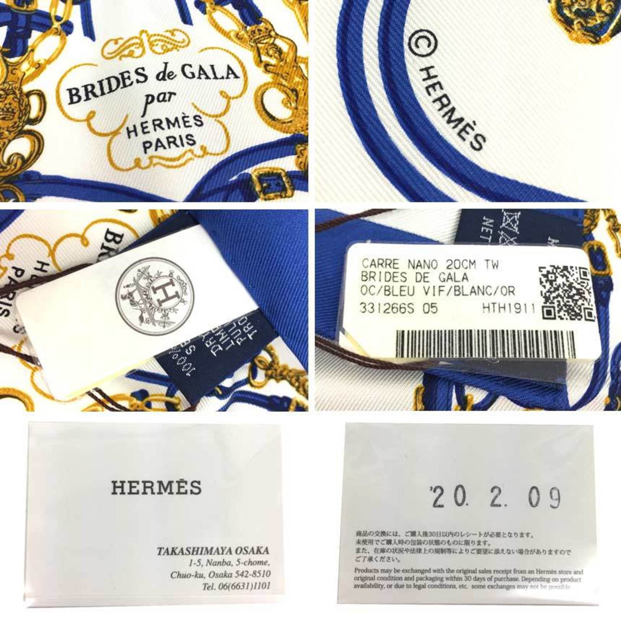 Home / ACCESSORIES / HERMES CARRE NANO 20CM BRIDES DE GALA Ceremony bridle Karenano KARE 20 NanoKare Scarf Muffler BLEU VIF/BLANC Blue x White 2020 100% Silk Hermes aq6263