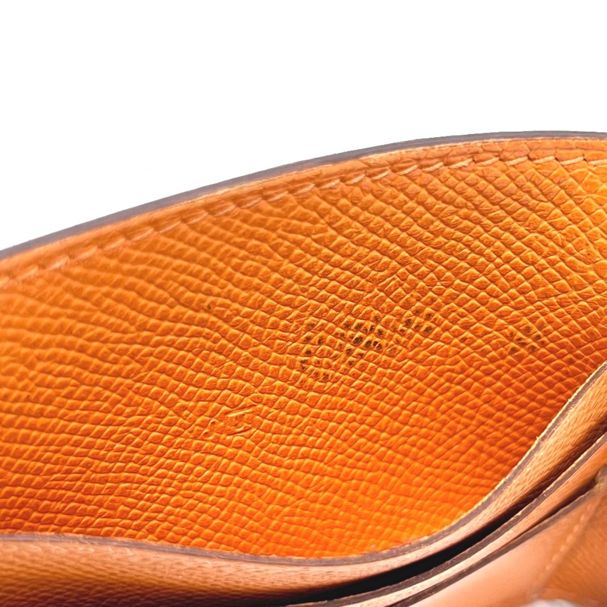 HERMES Flat Multi IC Case, Business Card Epsom Leather, Women's, Orange