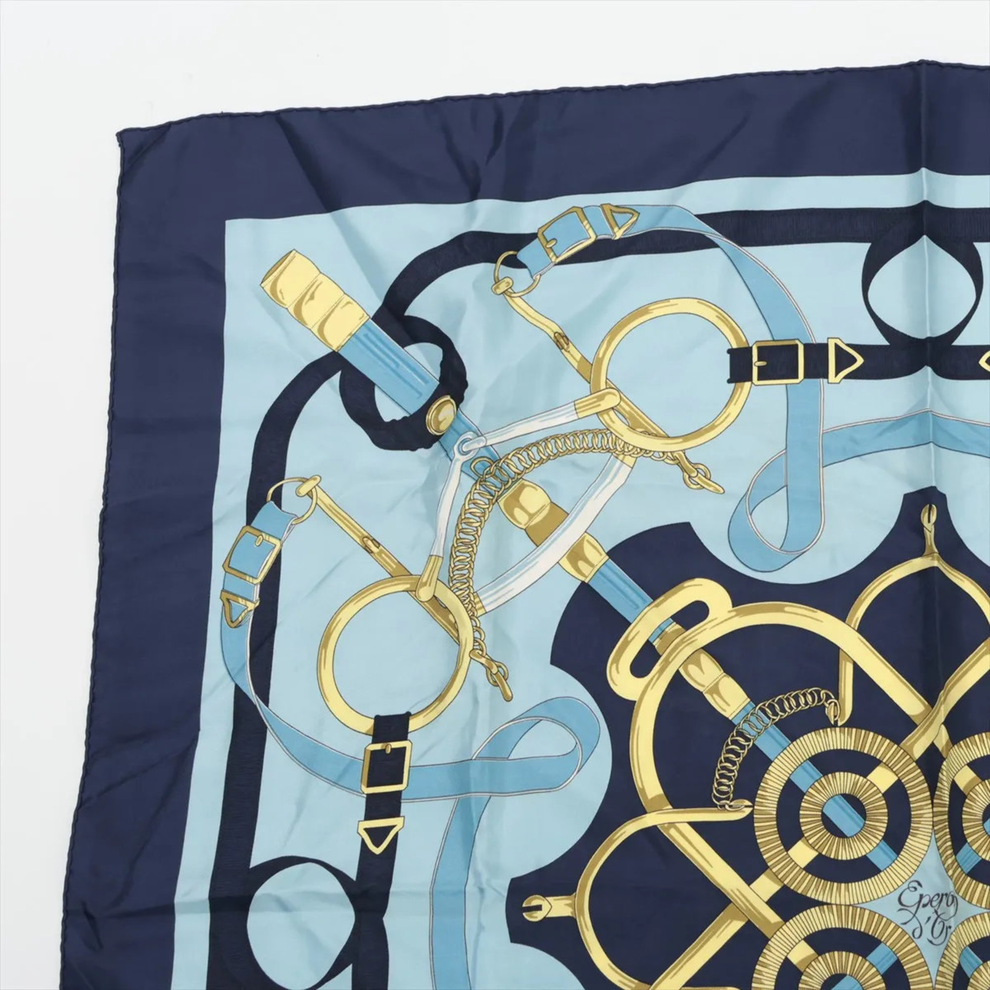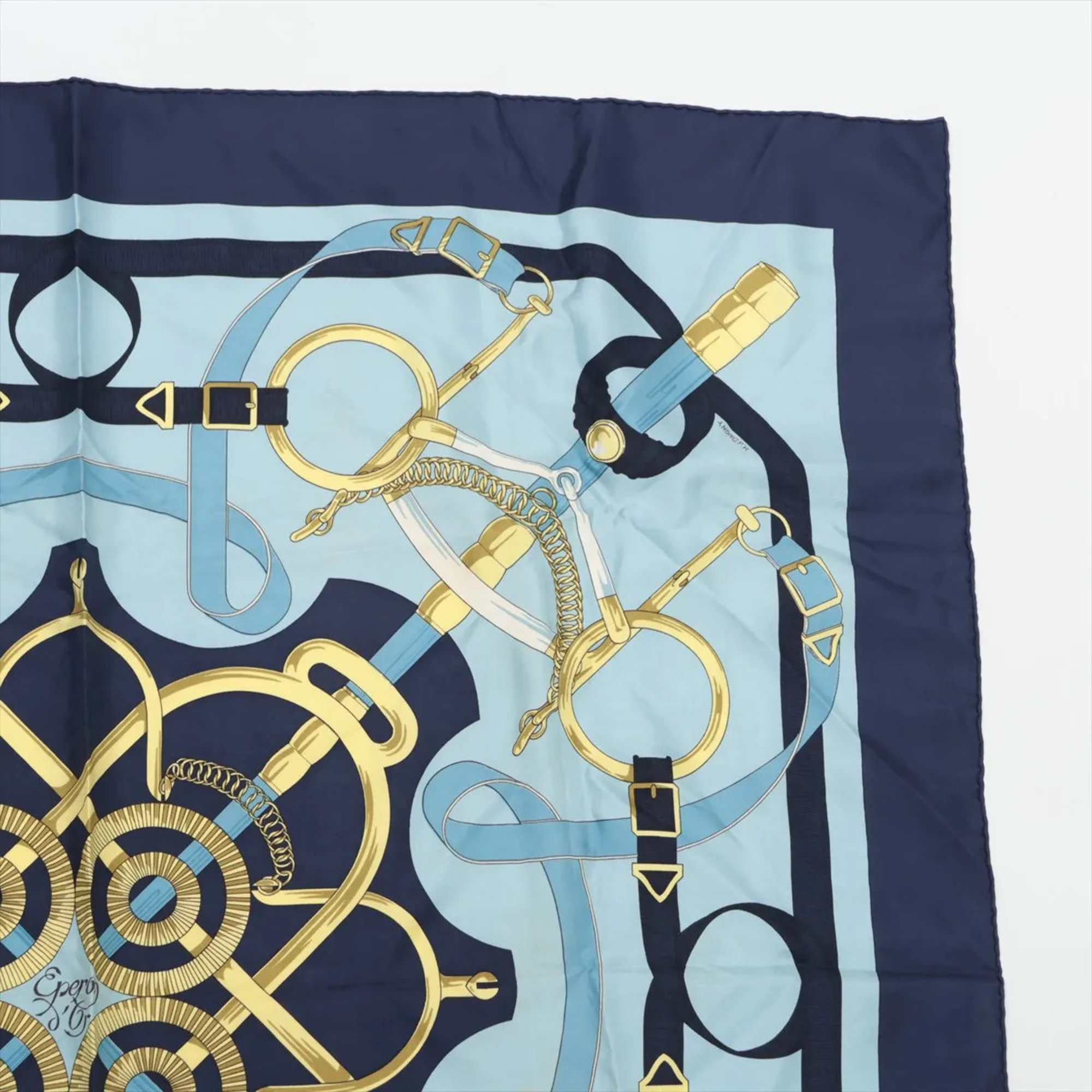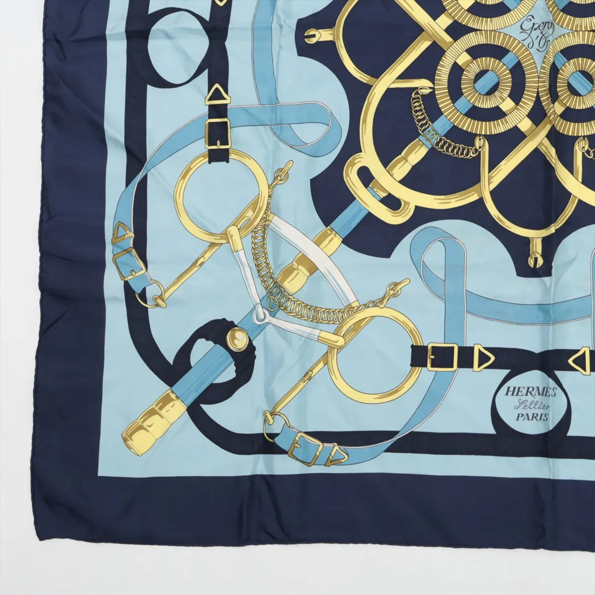 Hermes Hermès Carré 90 Eperon d'or Golden Spur Blue Scarf/Muffler Stole Silk Women's