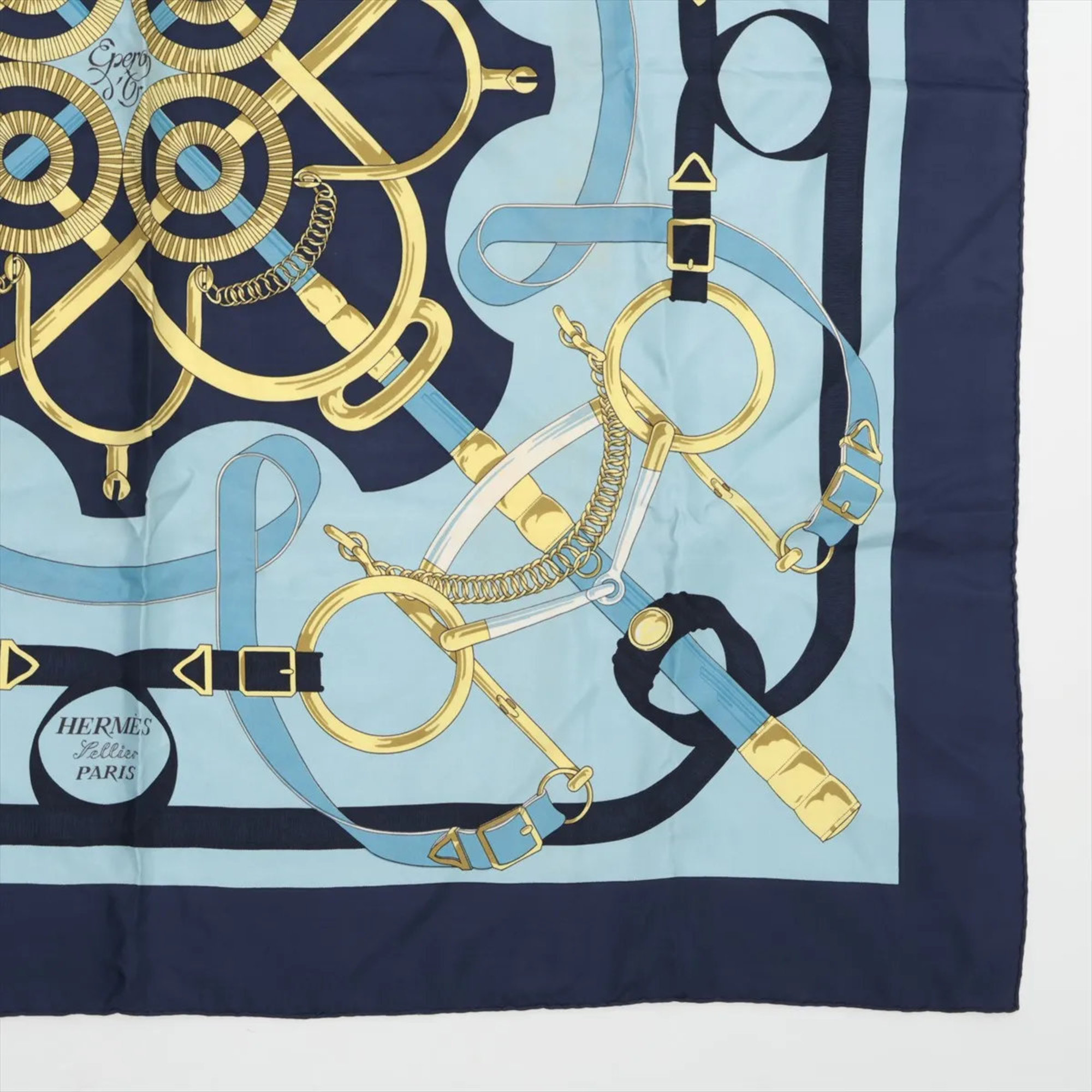 Home / ACCESSORIES / Hermes Hermès Carré 90 Eperon d’or Golden Spur Blue Scarf/Muffler Stole Silk Women’s