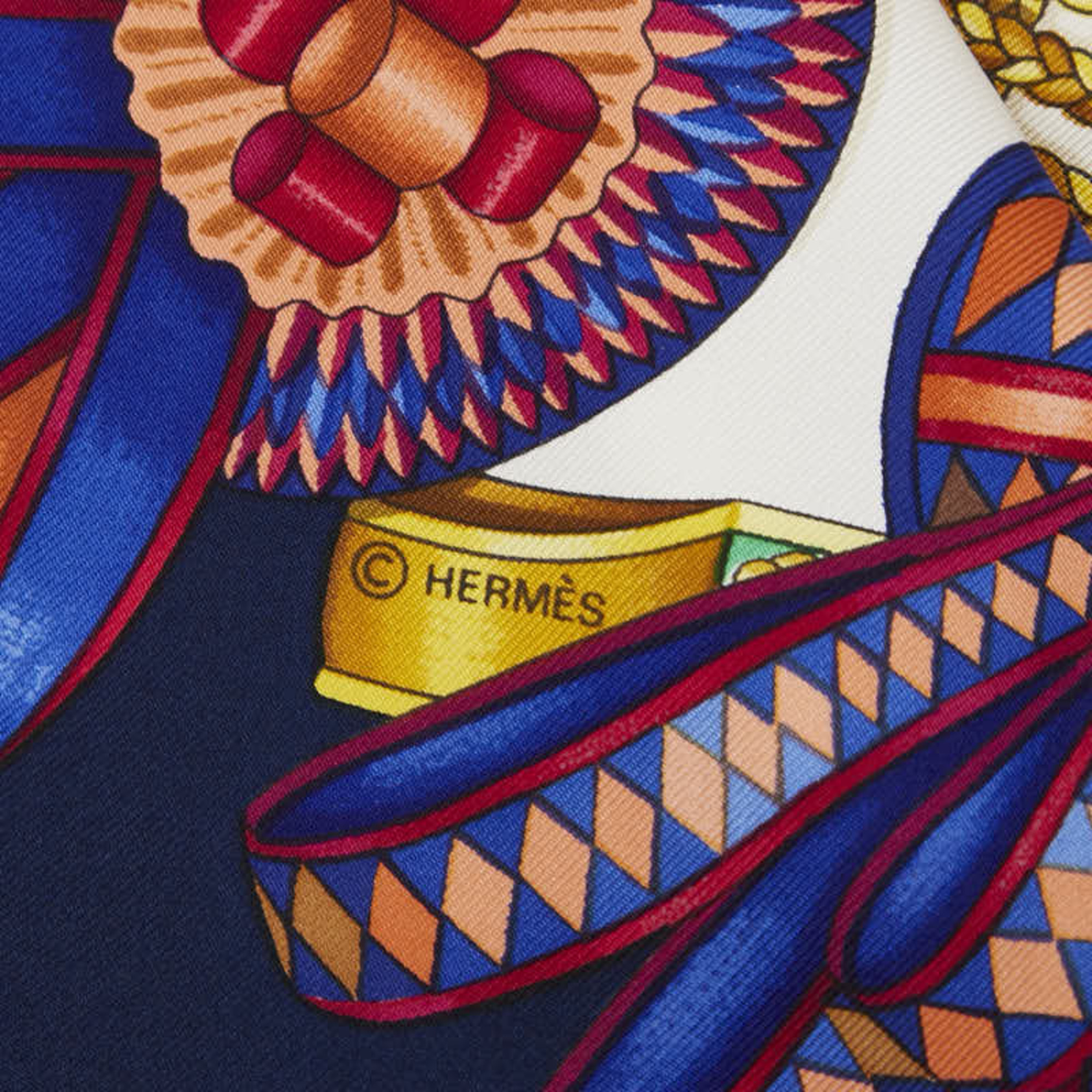 Be the first to review “Hermes Hermès Carré 90 “Les Rubans du Cheval” Horse Ribbon Scarf, Navy, White, and Multicolor Silk, Women’s”