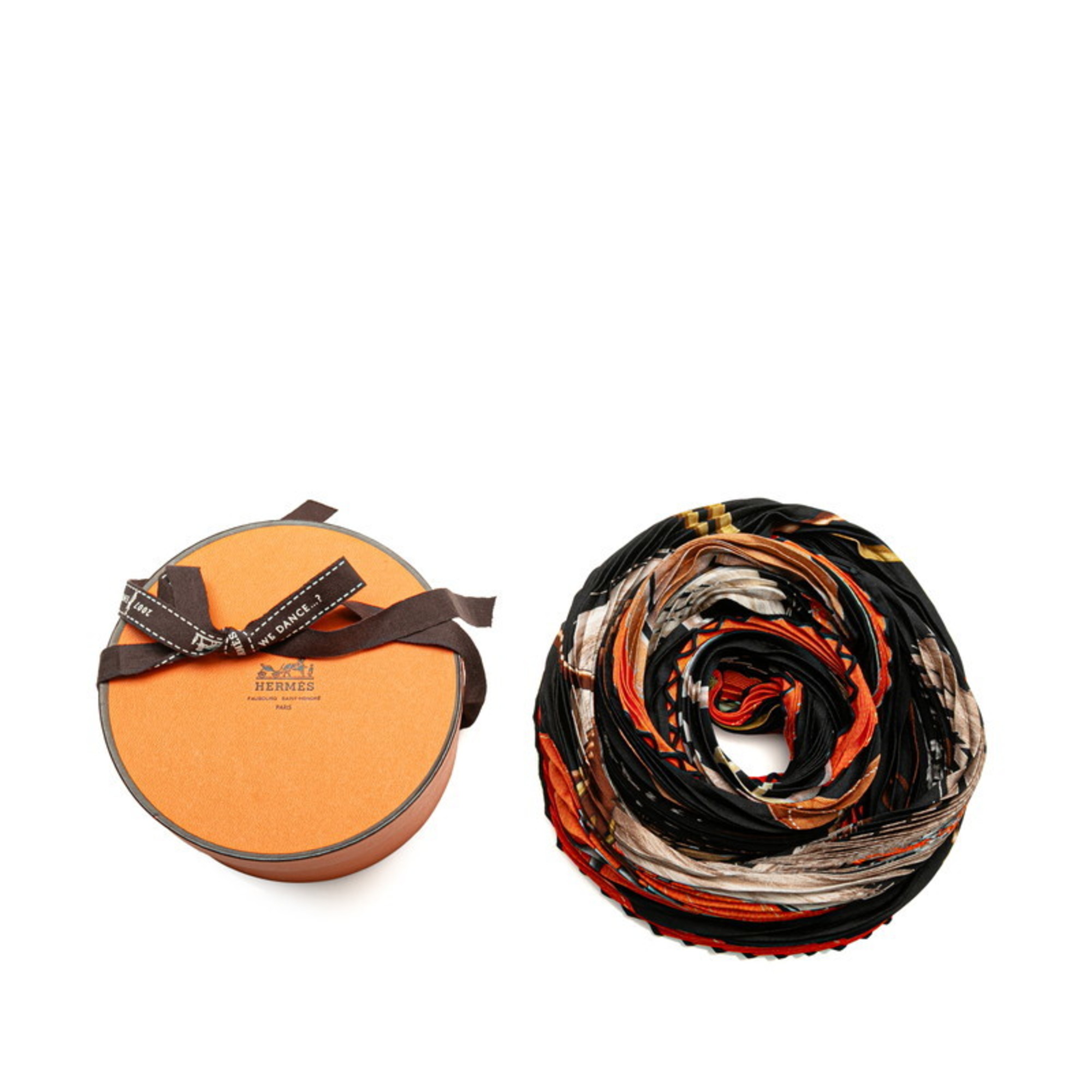 Home / ACCESSORIES / Hermes Hermès Carré 90 Pleated Scarf, PROJETS CARRES, Silk, Black, Orange, Multicolor, Women’s
