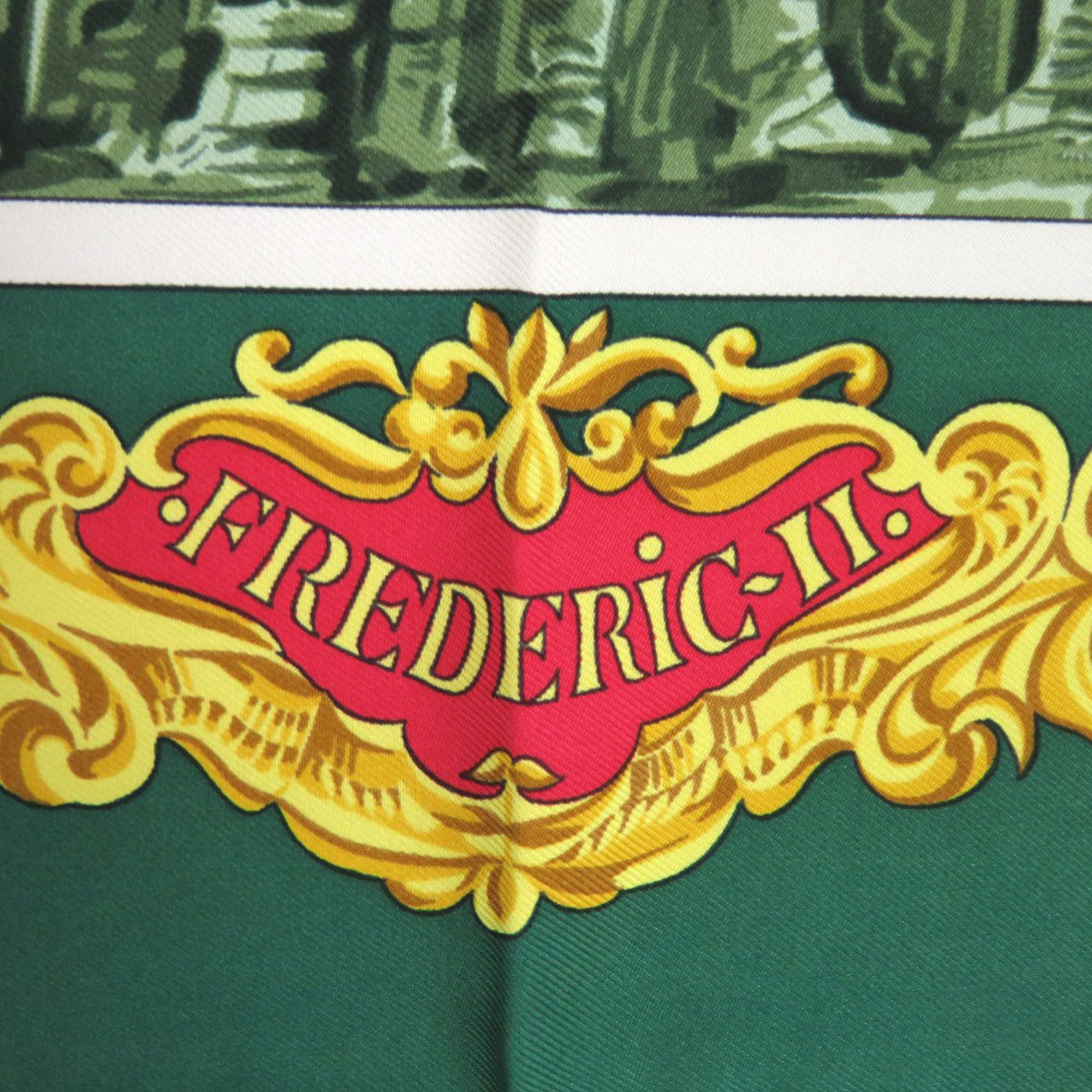 Home / ACCESSORIES / Hermes Hermès Carré 90 Sanssouci Palace Silk Scarf Muffler in Green, Gold, and Red (0137)