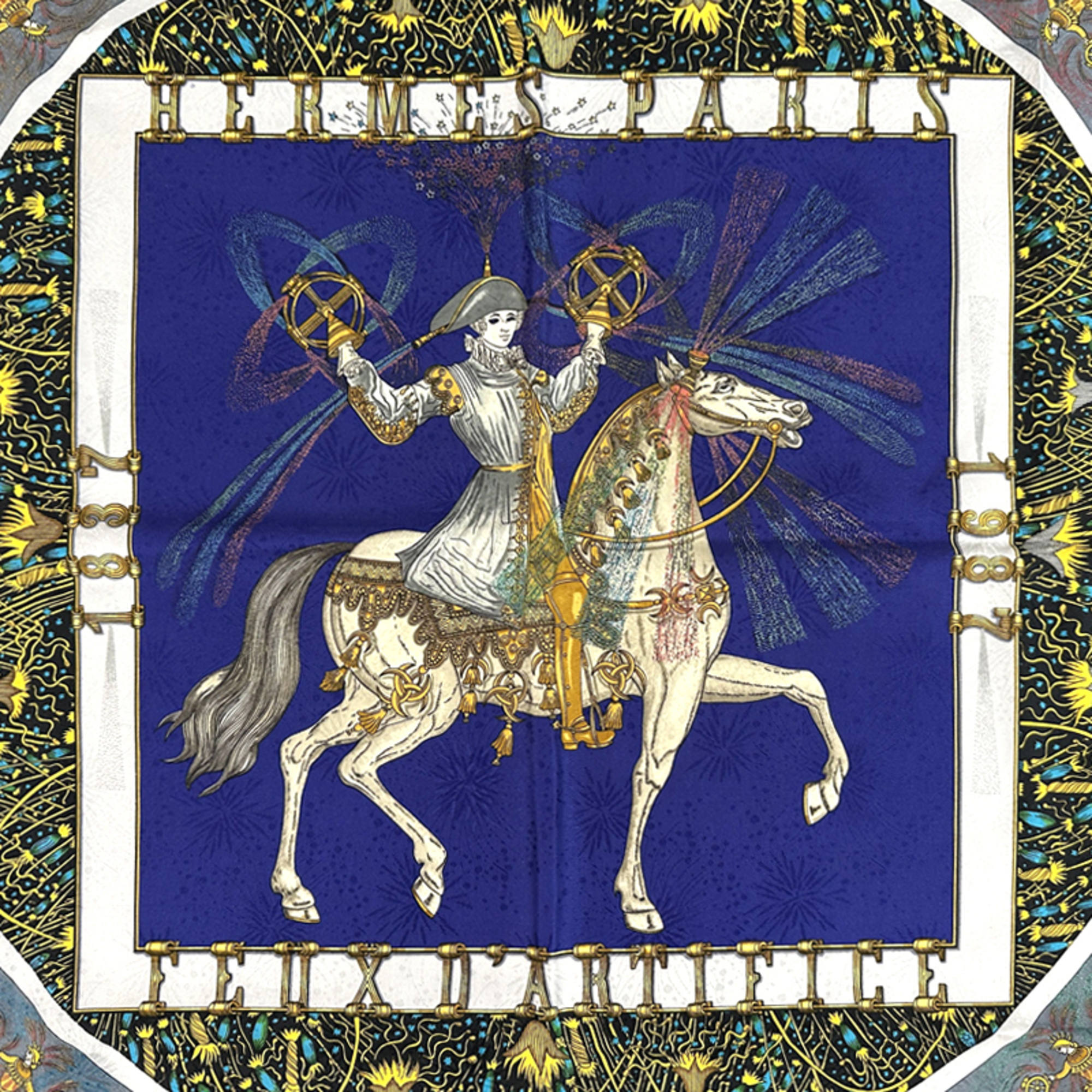 Home / ACCESSORIES / Hermes Hermès FEUX D’ARTIFICE Carré 90 Scarf, Women’s Silk, Blue, Multicolor, Horse, Fireworks, Large