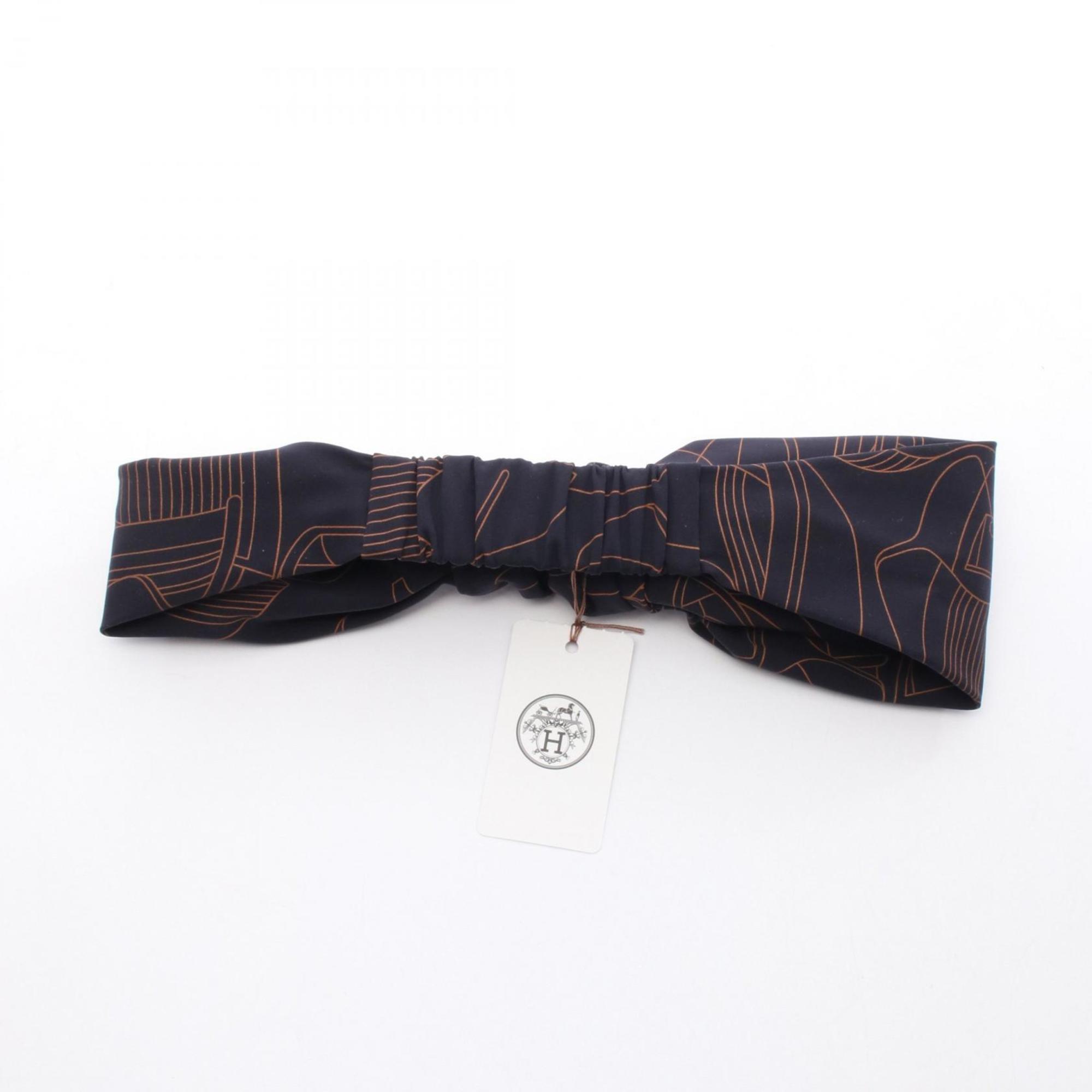 Hermes Hermès Gabi Hairband, Polyester, Women's, Navy and Brown