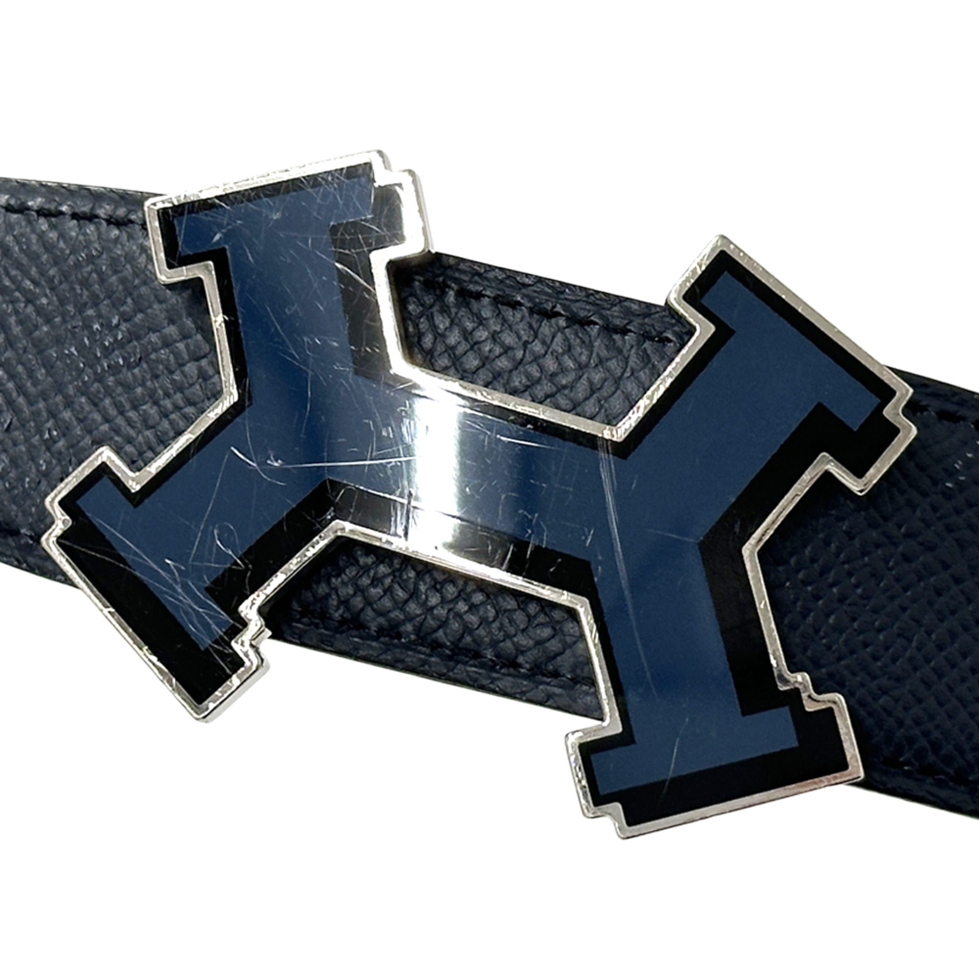 Hermes Hermès Men's Street H Leather Belt, Navy/Gray, Reversible, Rare, C Stamp