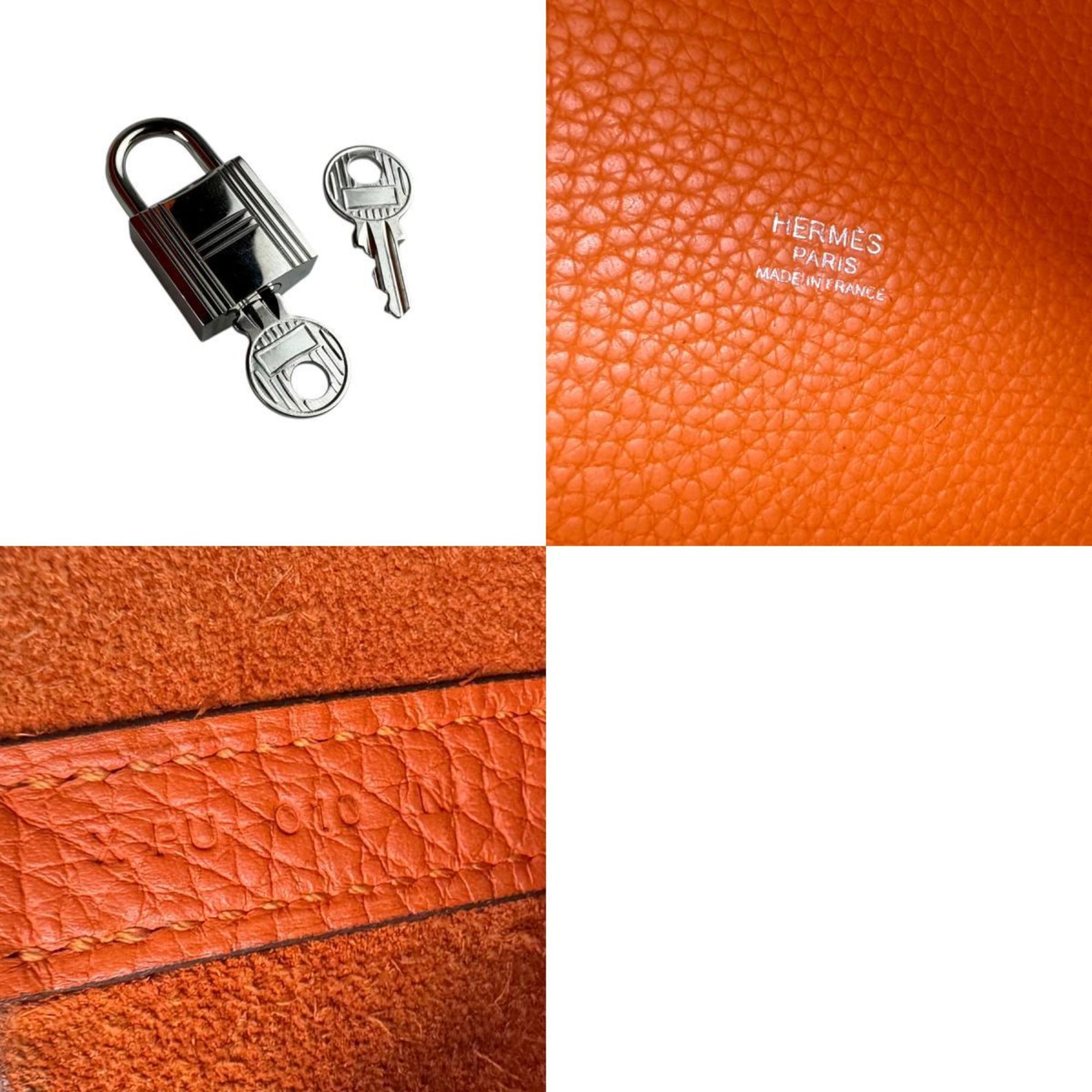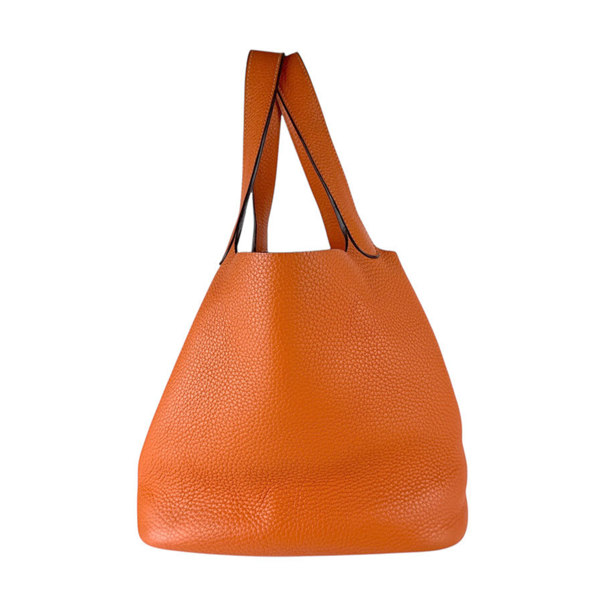 Hermes Hermès Picotin Lock MM 22 Handbag in Taurillon Clemence Leather, Orange and Silver, Women's, z7353