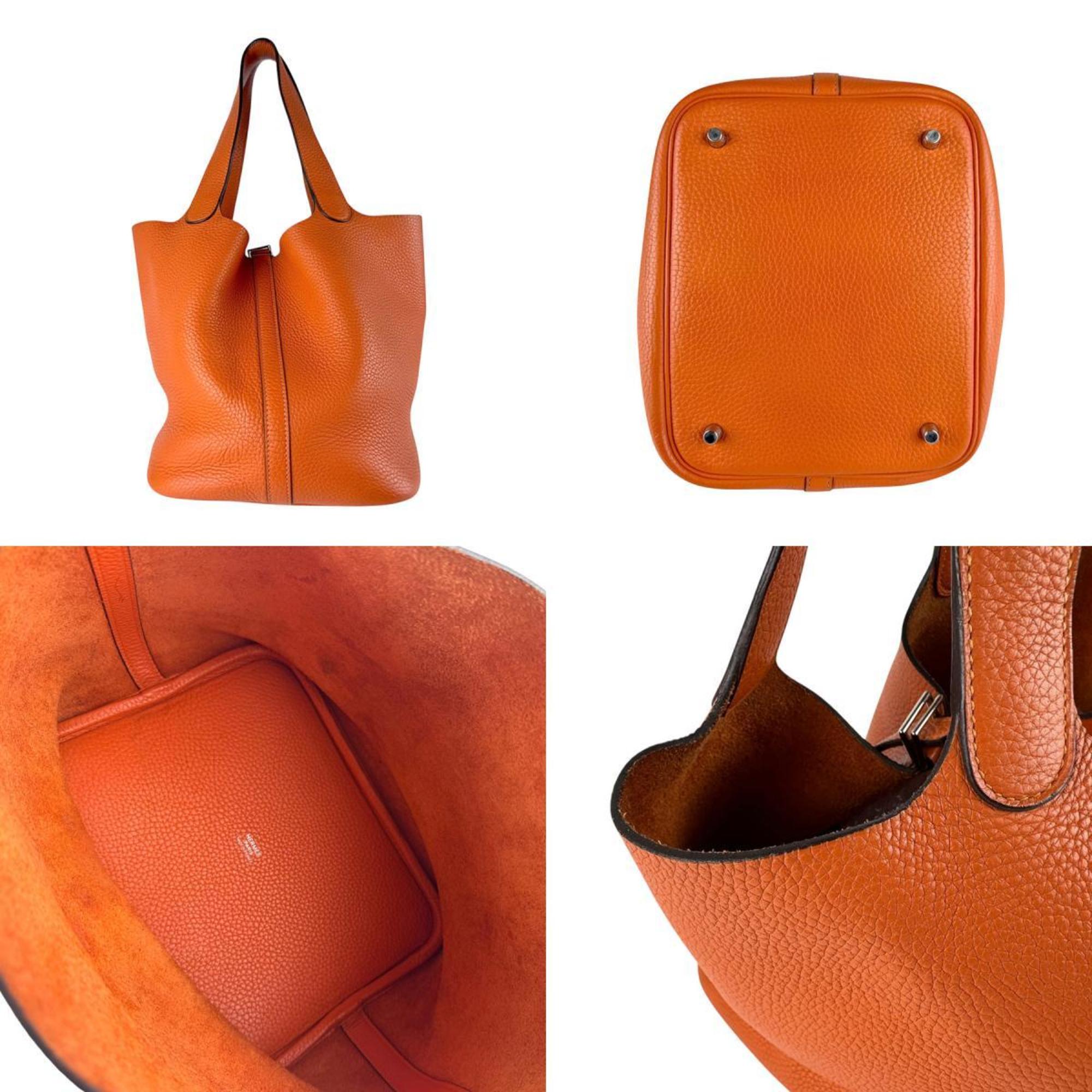 Be the first to review “Hermes Hermès Picotin Lock MM 22 Handbag in Taurillon Clemence Leather, Orange and Silver, Women’s, z7353”
