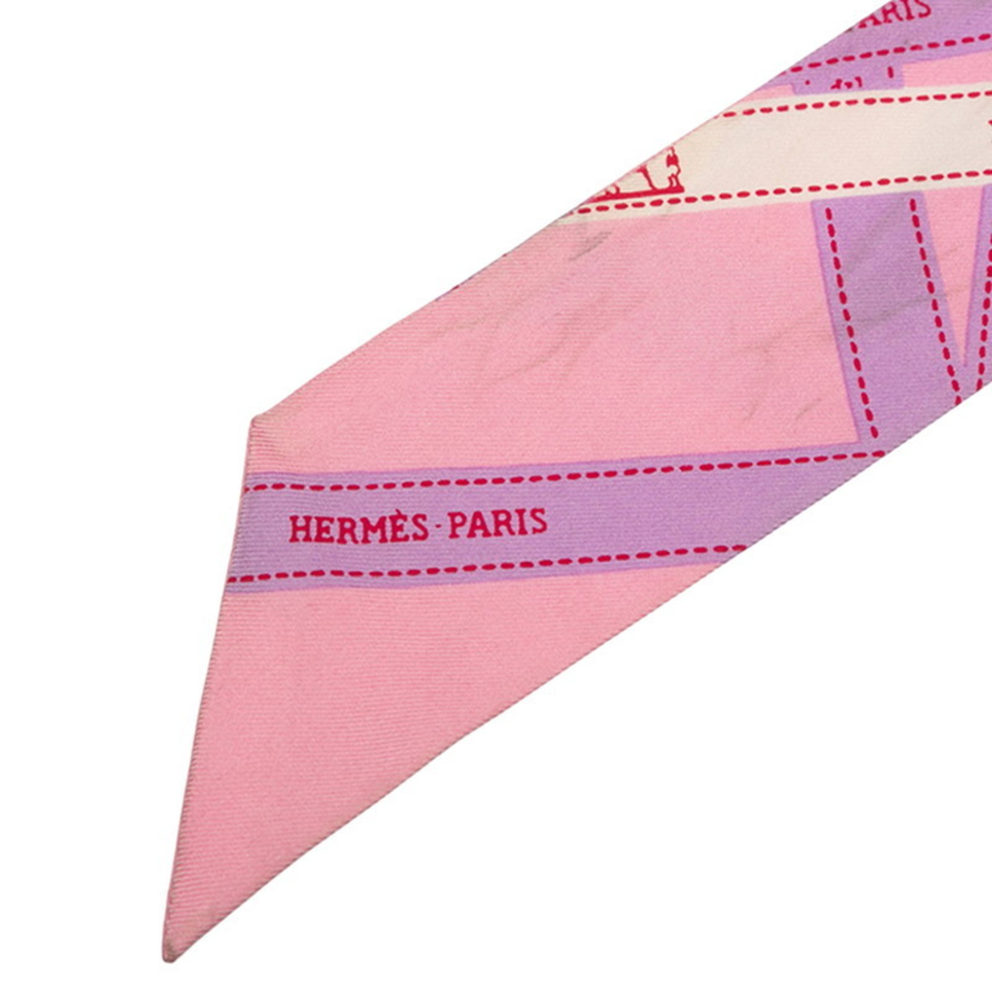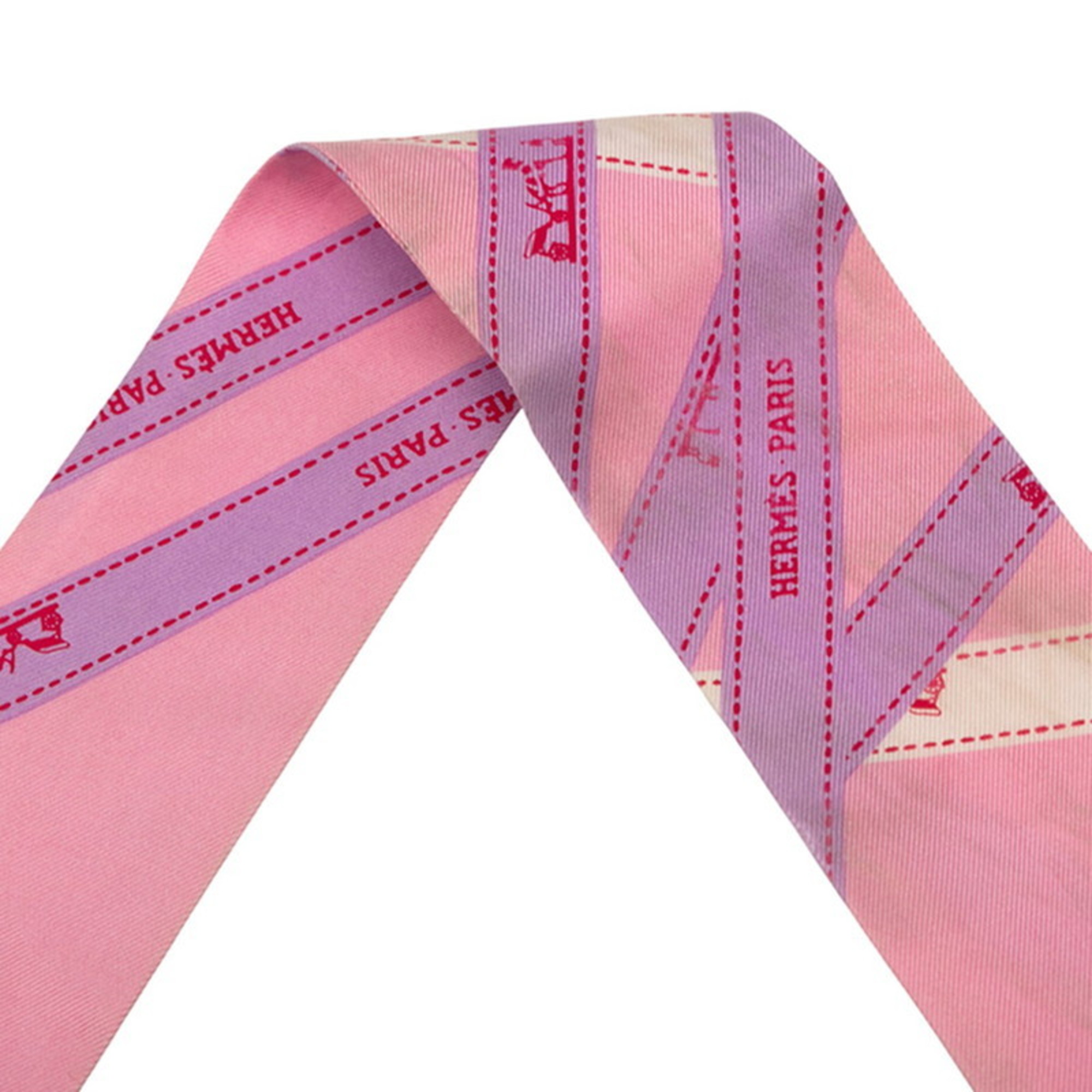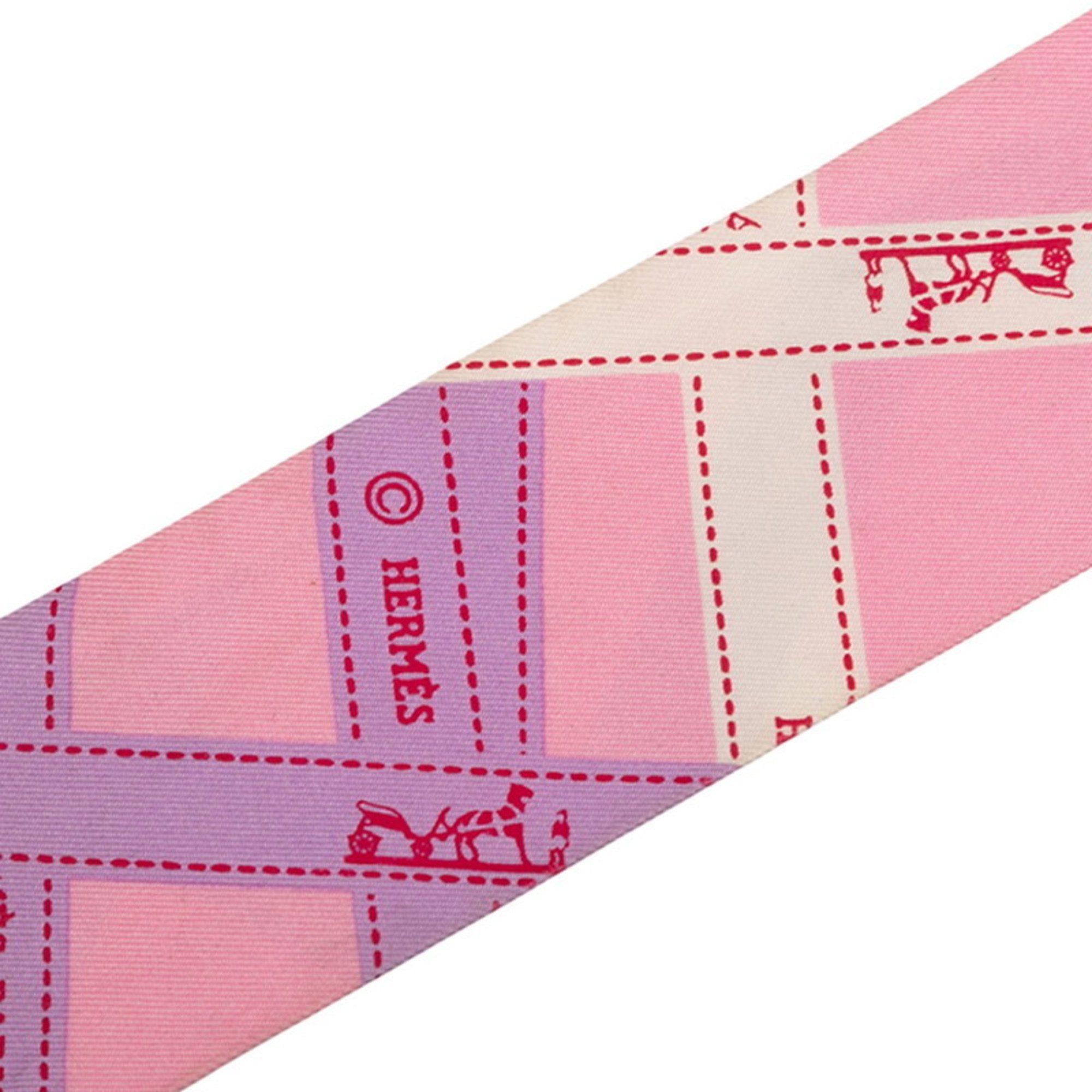 Hermes Hermès Twilly BOLDUC Ribbon Scarf, Pink and Purple Silk, Women's