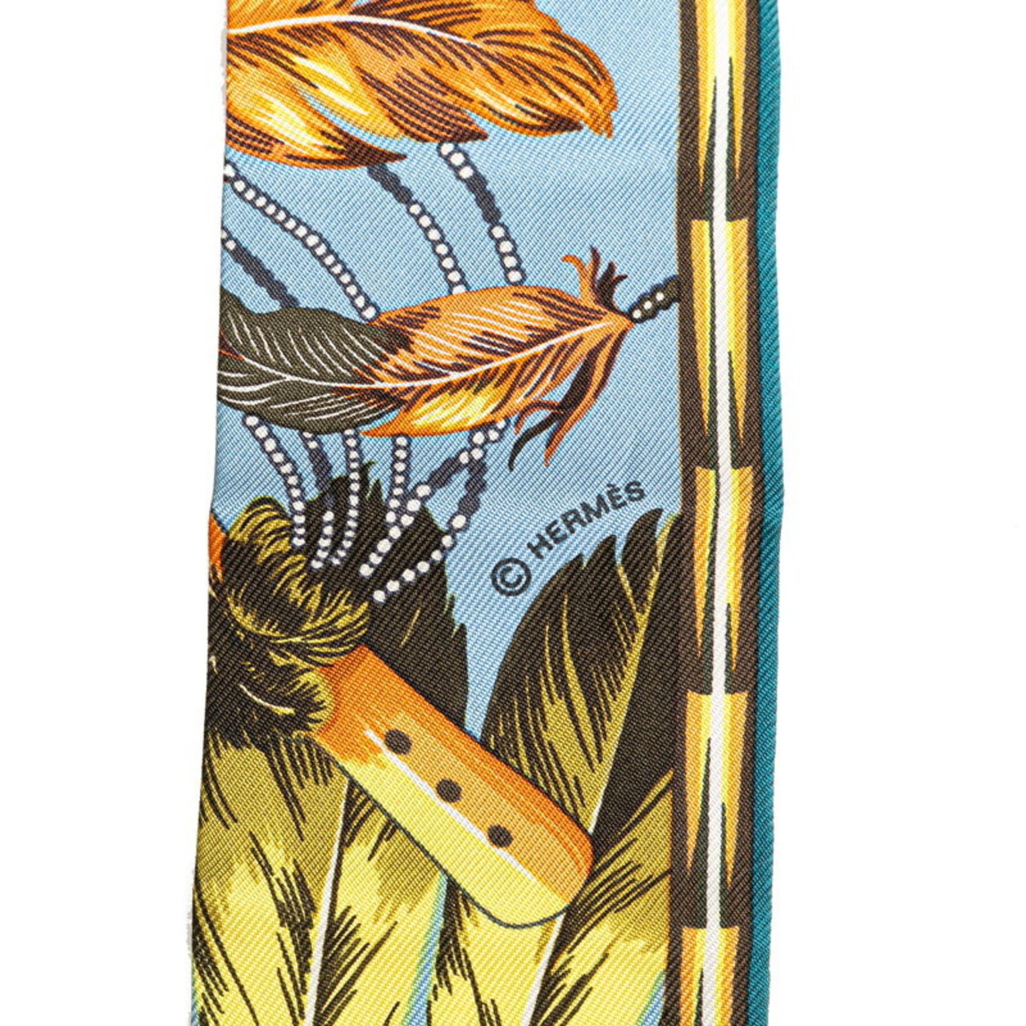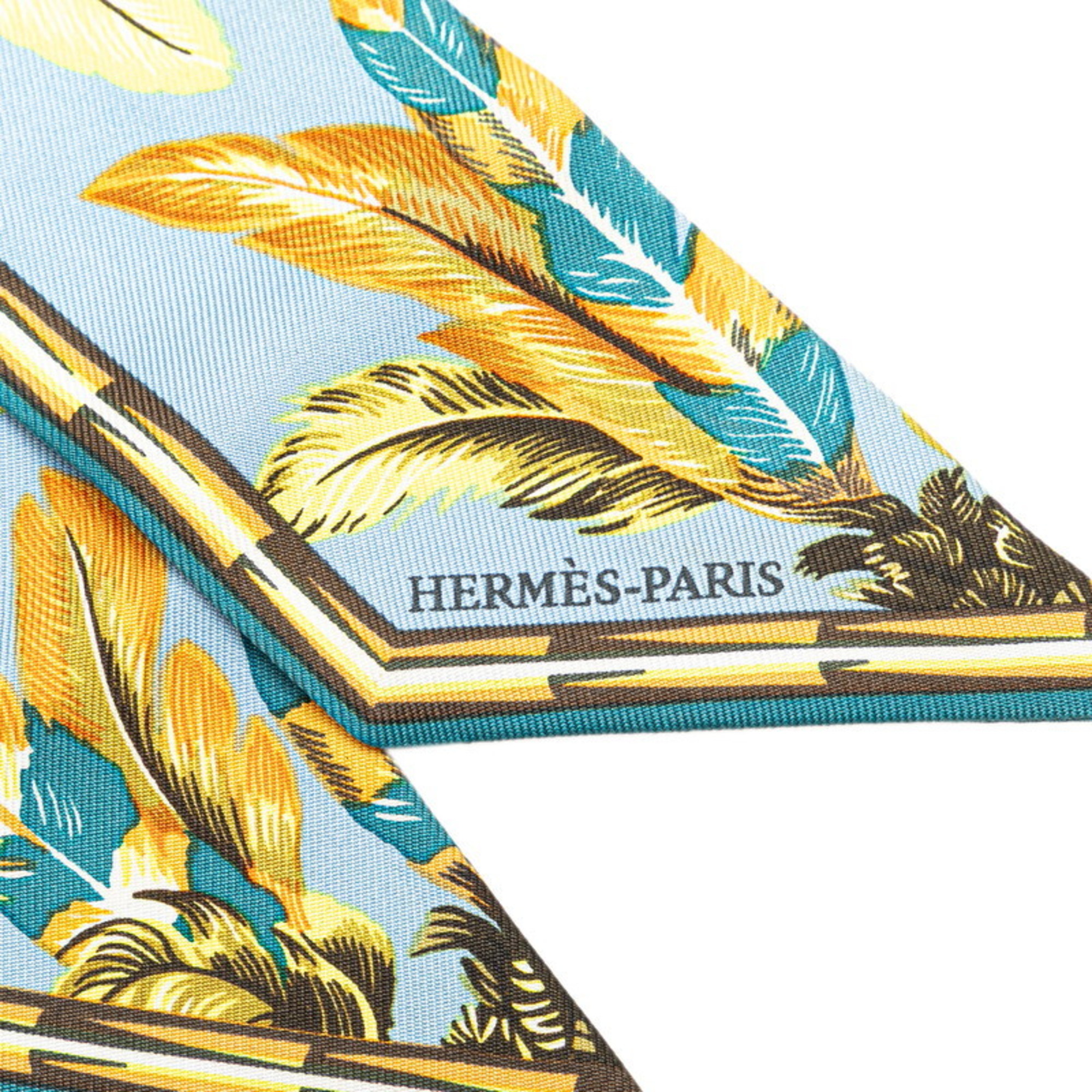 Hermes Hermès Twilly Brazil Scarf, Light Blue Multicolor Silk, Women's