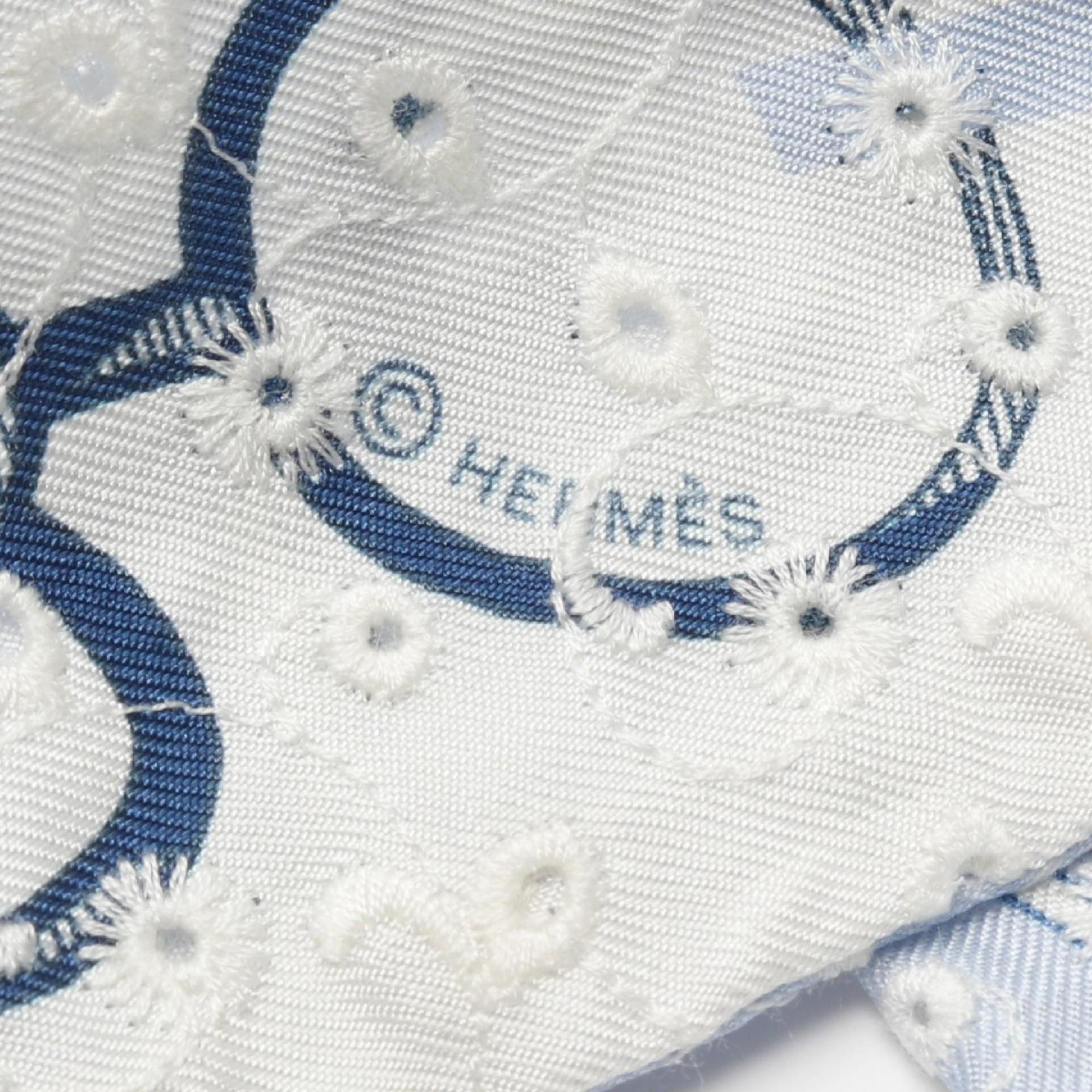 Hermes Hermès Twilly Do Re Boucles Broderie Anglaise Silk Scarf for Women in Blue and White