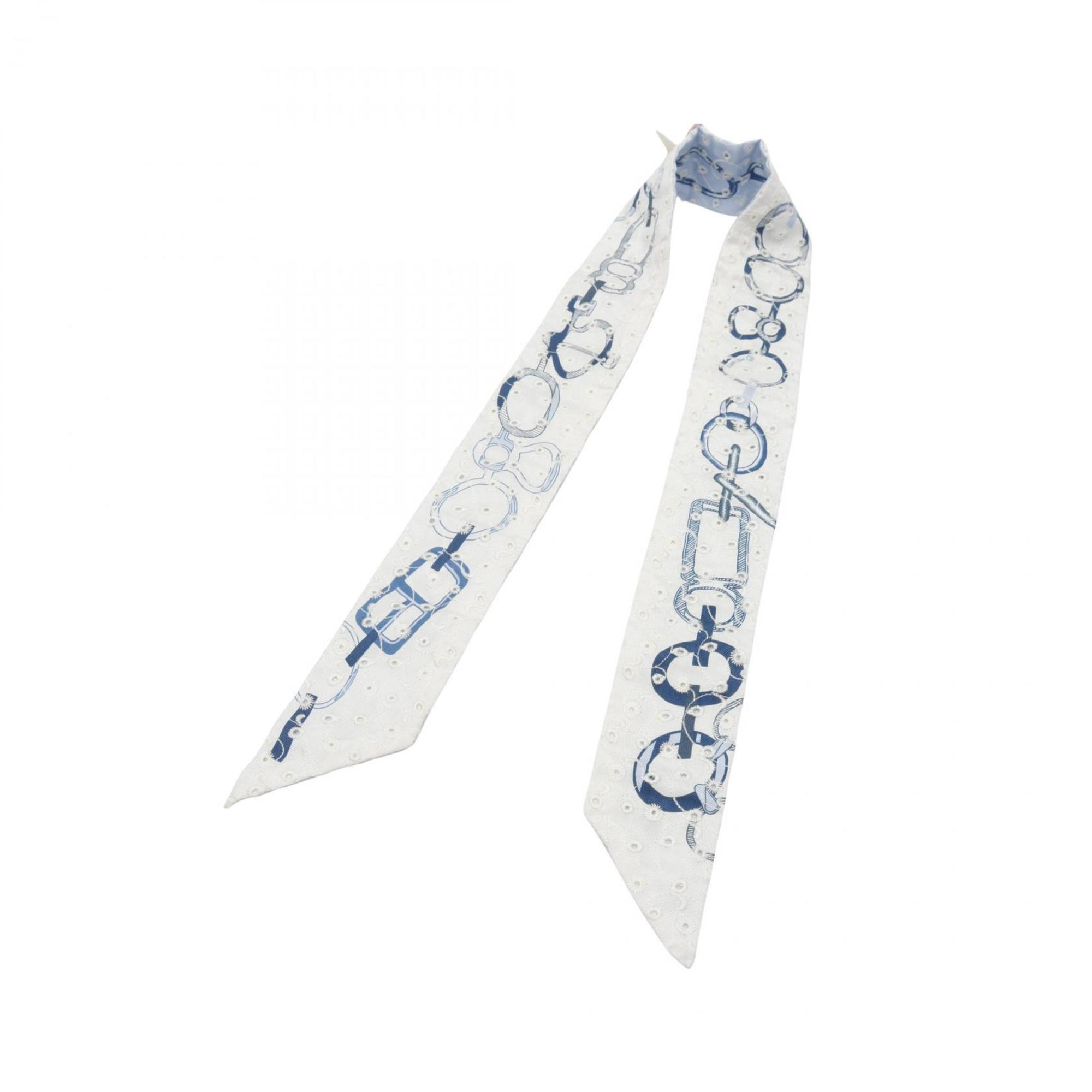 Home / ACCESSORIES / Hermes Hermès Twilly Do Re Boucles Broderie Anglaise Silk Scarf for Women in Blue and White