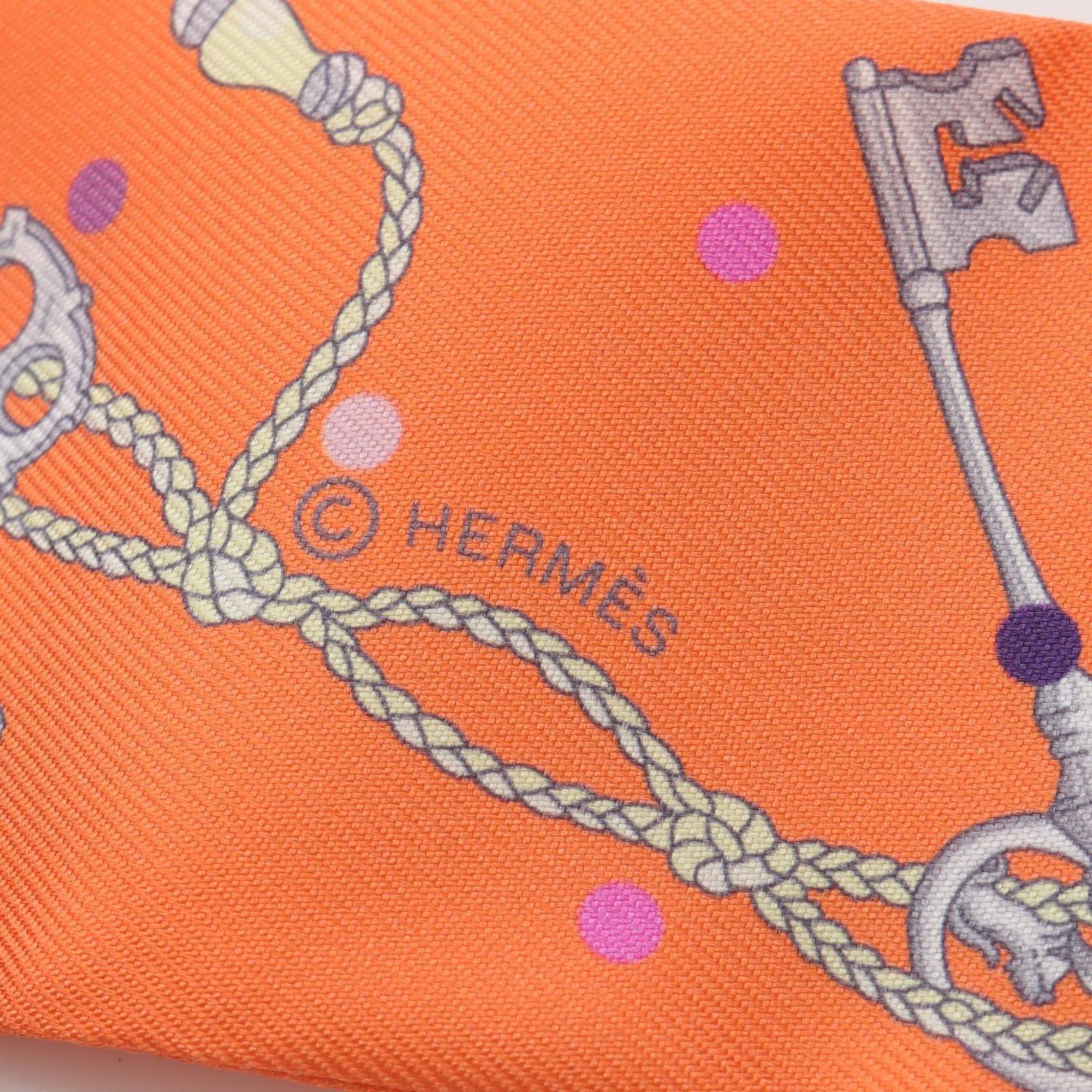 Hermes Hermès Twilly "Les Cles a Pois" Silk Scarf for Women, Orange Multicolor