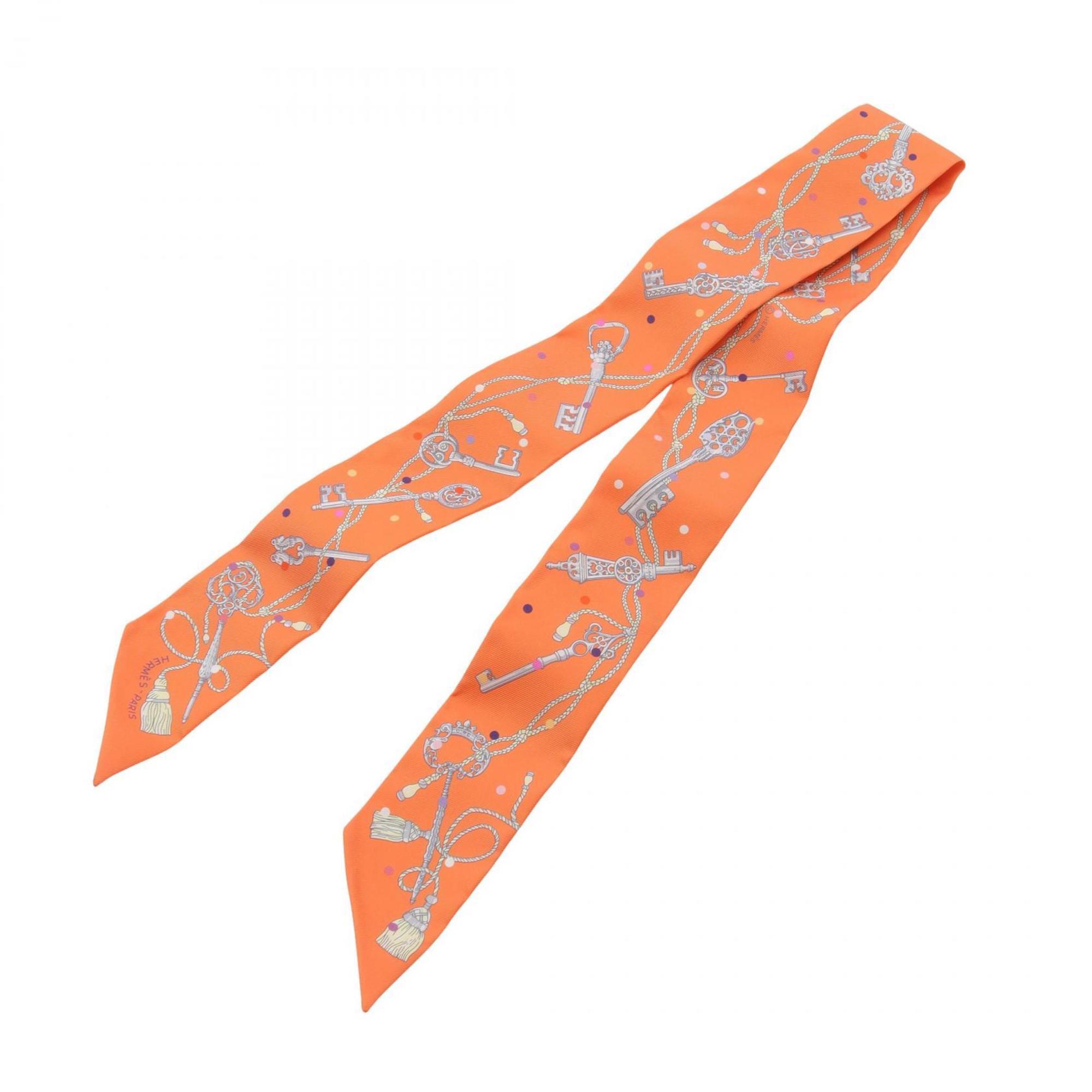 Home / ACCESSORIES / Hermes Hermès Twilly “Les Cles a Pois” Silk Scarf for Women, Orange Multicolor