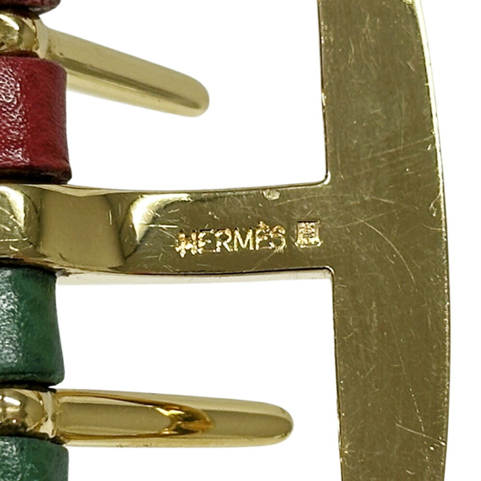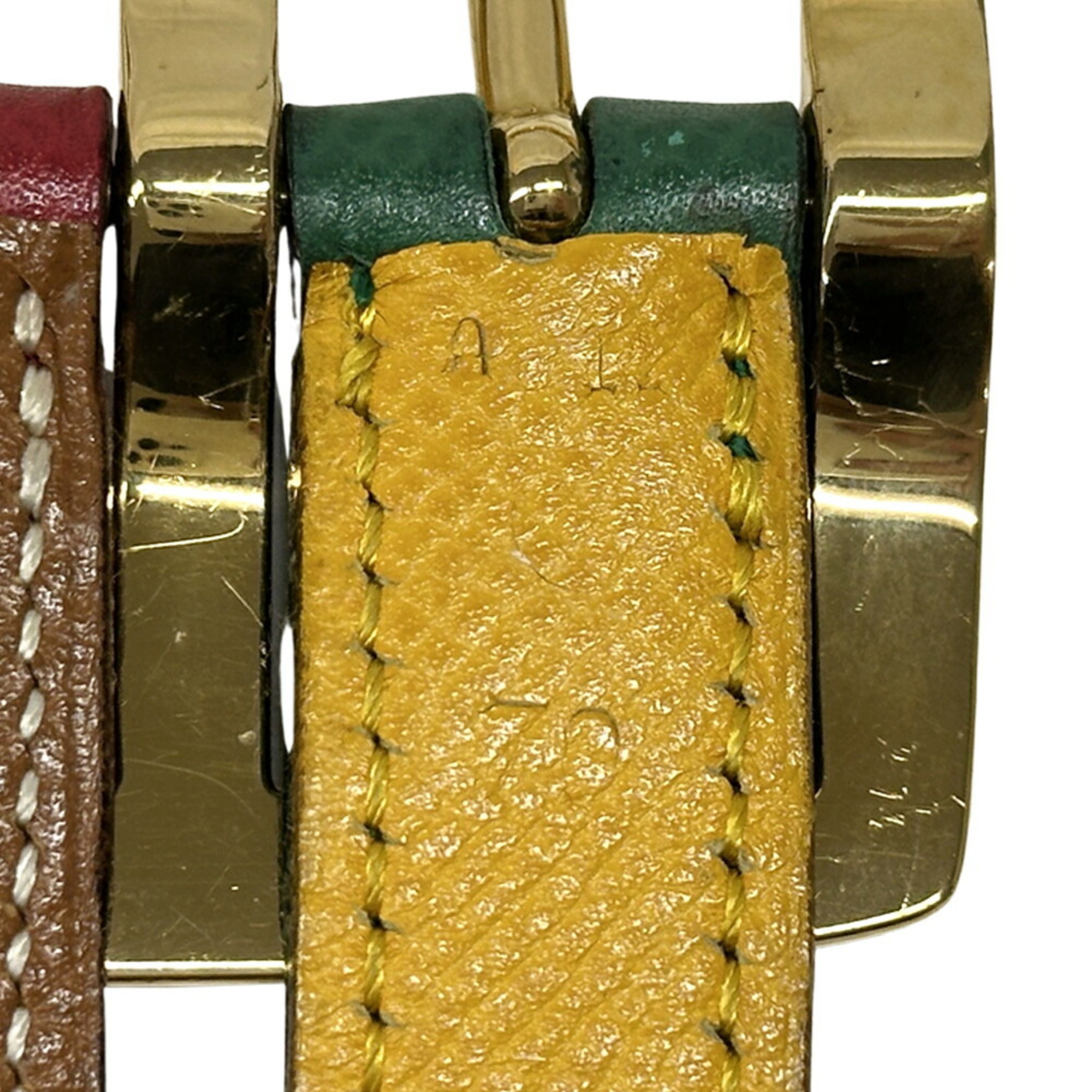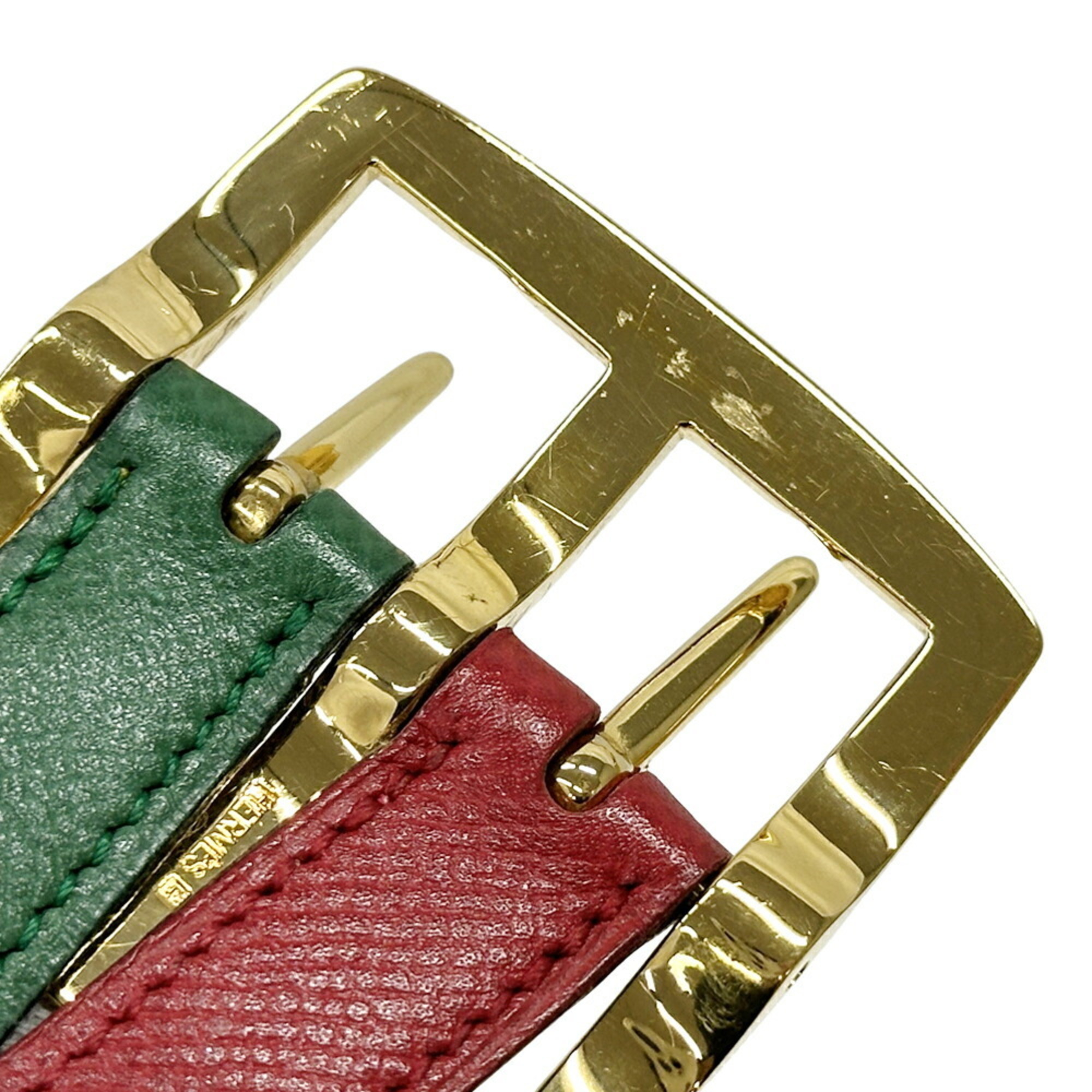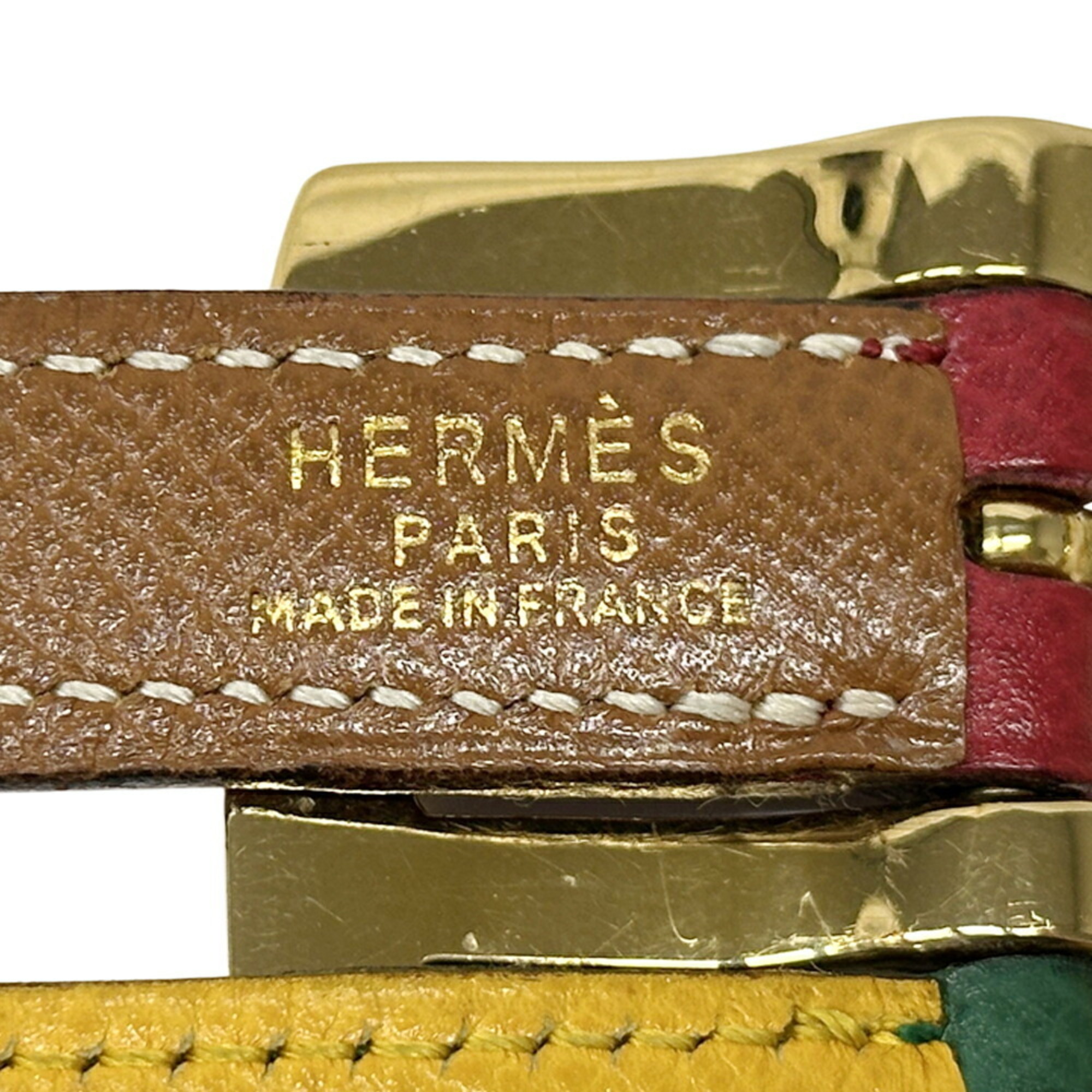 Hermes Hermès Women's Couchvel Belt, Multicolor, Brown, Green, Yellow, and Red, Reversible, Engraved with a Circle