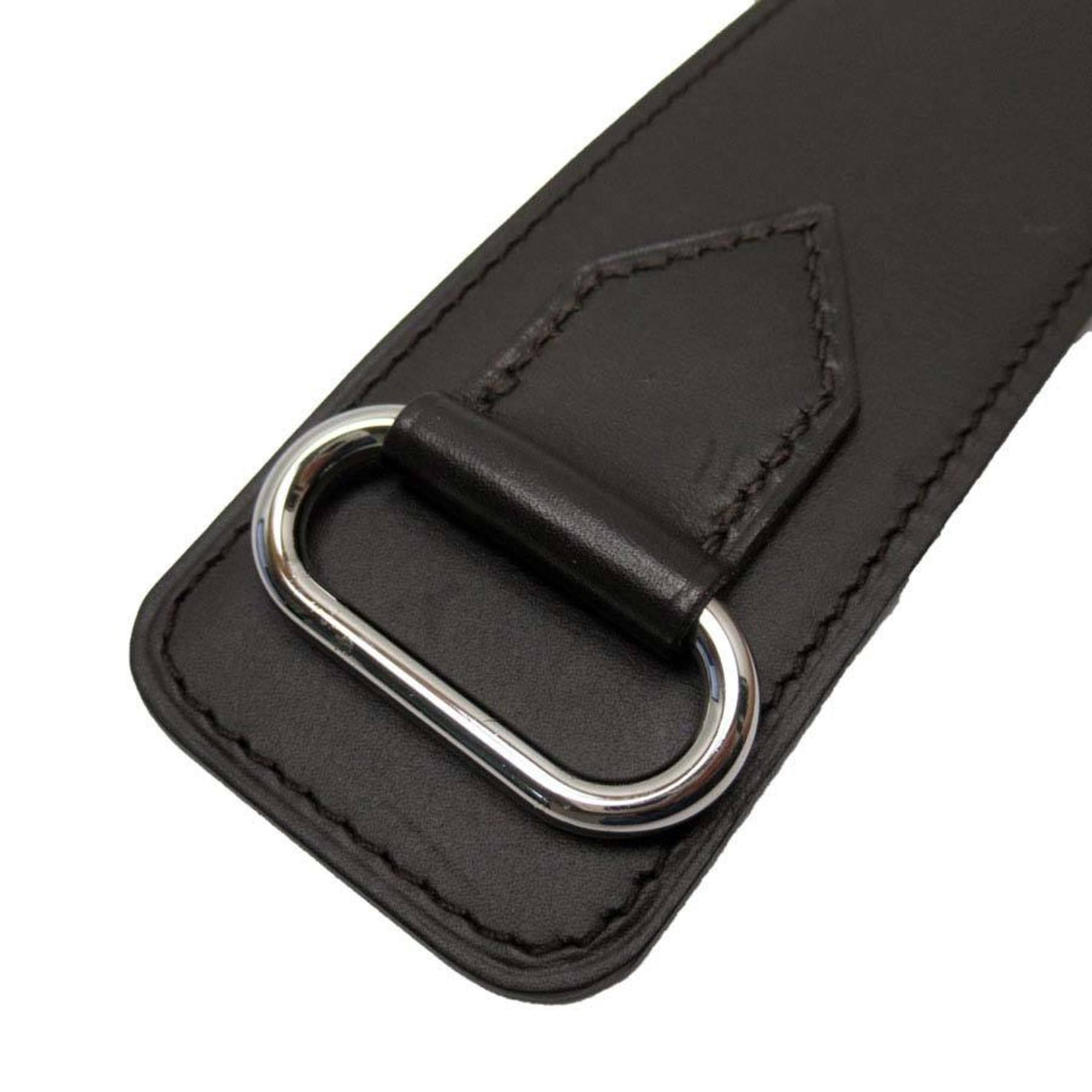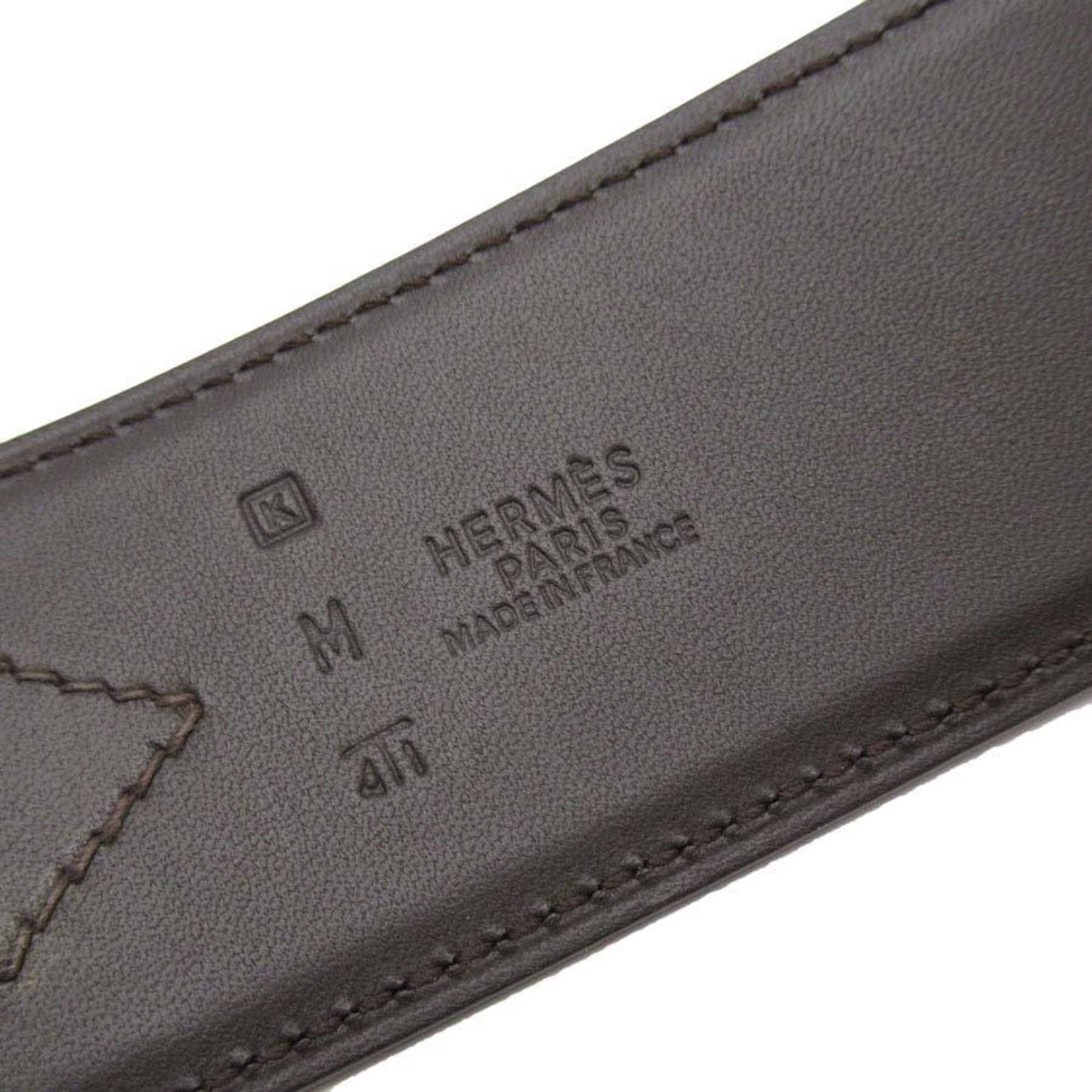 Hermes HERMES belt dark brown silver leather