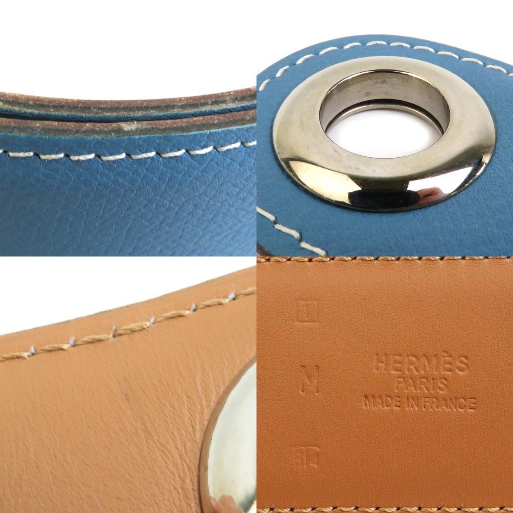 Hermes HERMES Belt Scarf Muffler Leather Blue Silver Women's e60040a