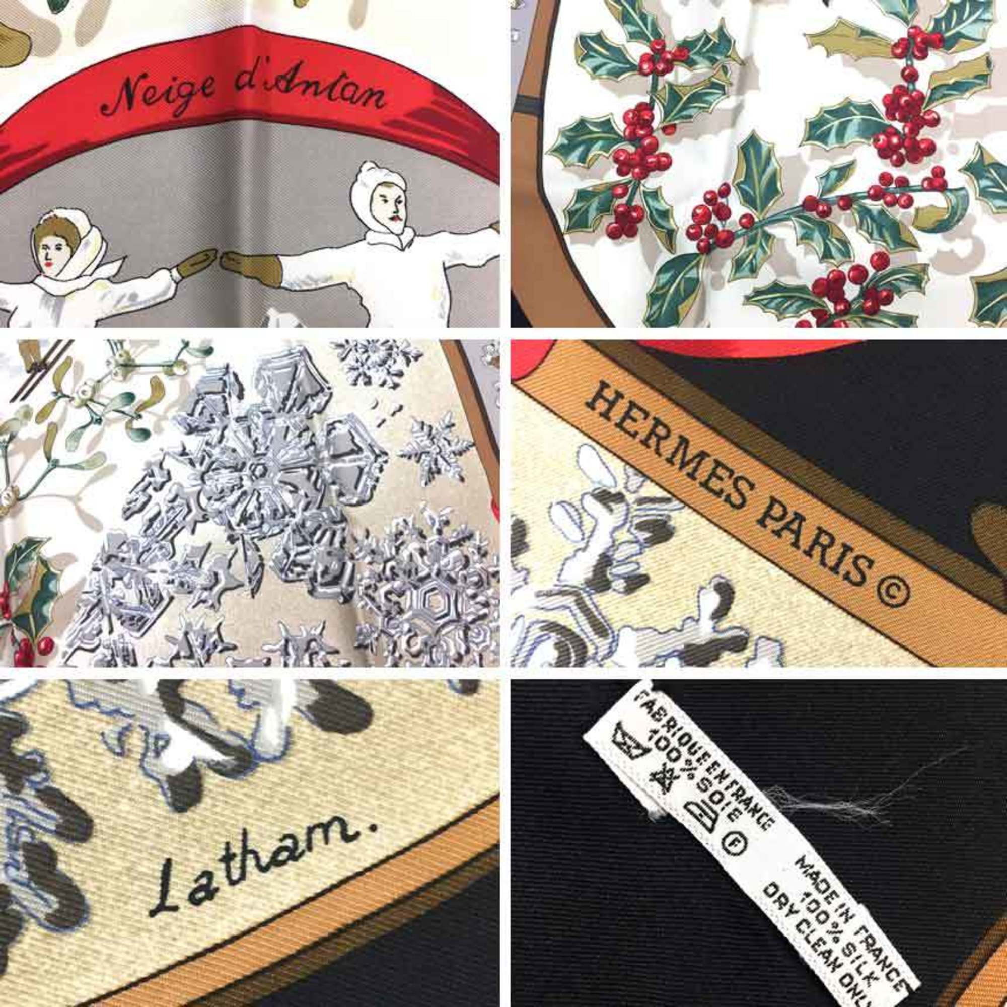 HERMES Hermes Cashmere Silk Scarf Muffler Carre 90 Neige d'Antan Last Year's Snow Black x Ivory