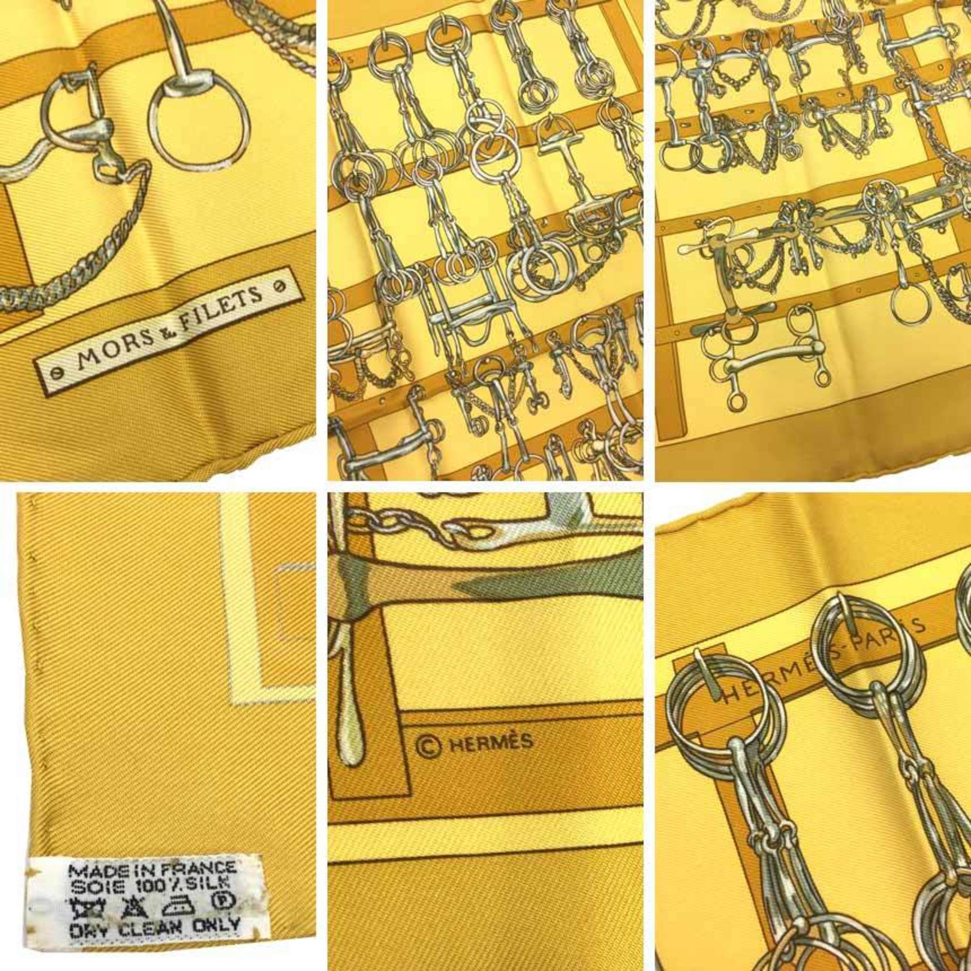 Home / ACCESSORIES / HERMES Hermes Scarf Muffler Carre 45 Petit MORS & FILETS (Horse Tack and Bits) Yellow 100% Silk aq10393
