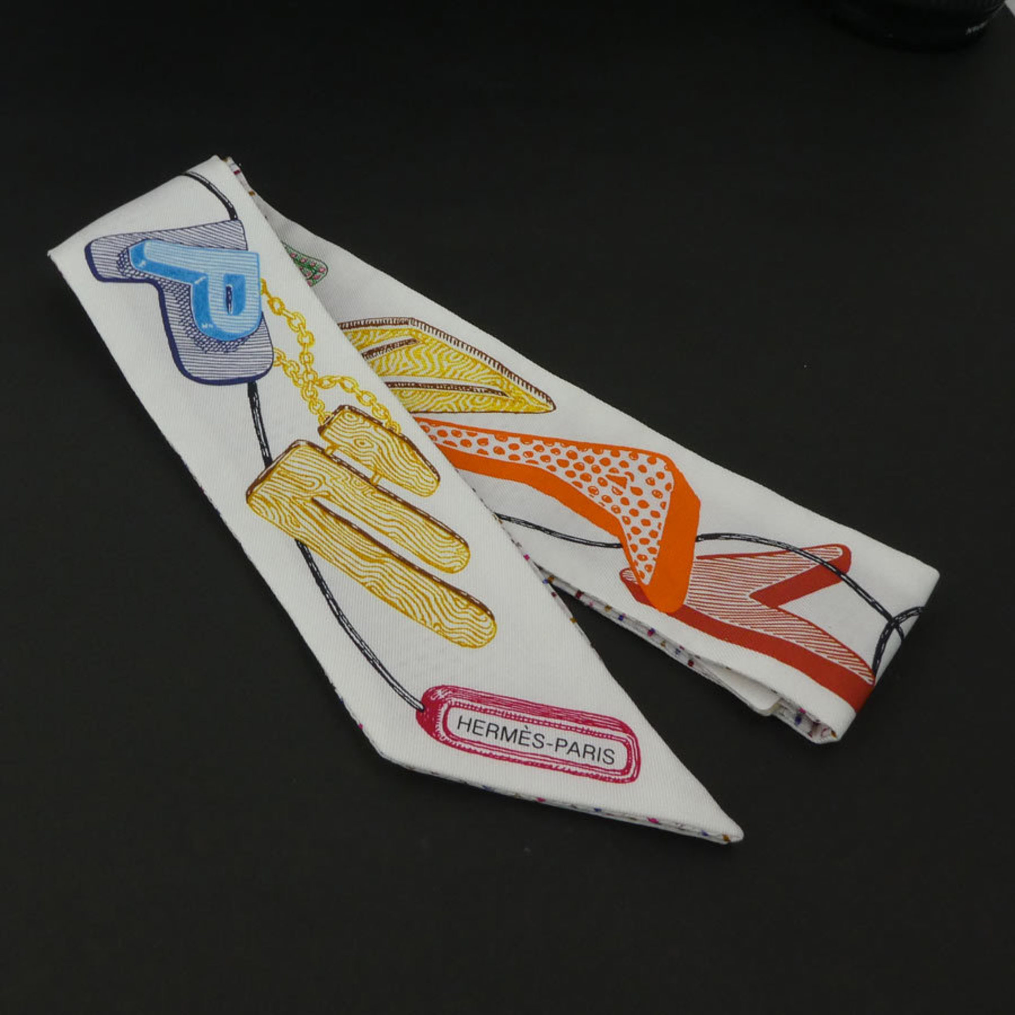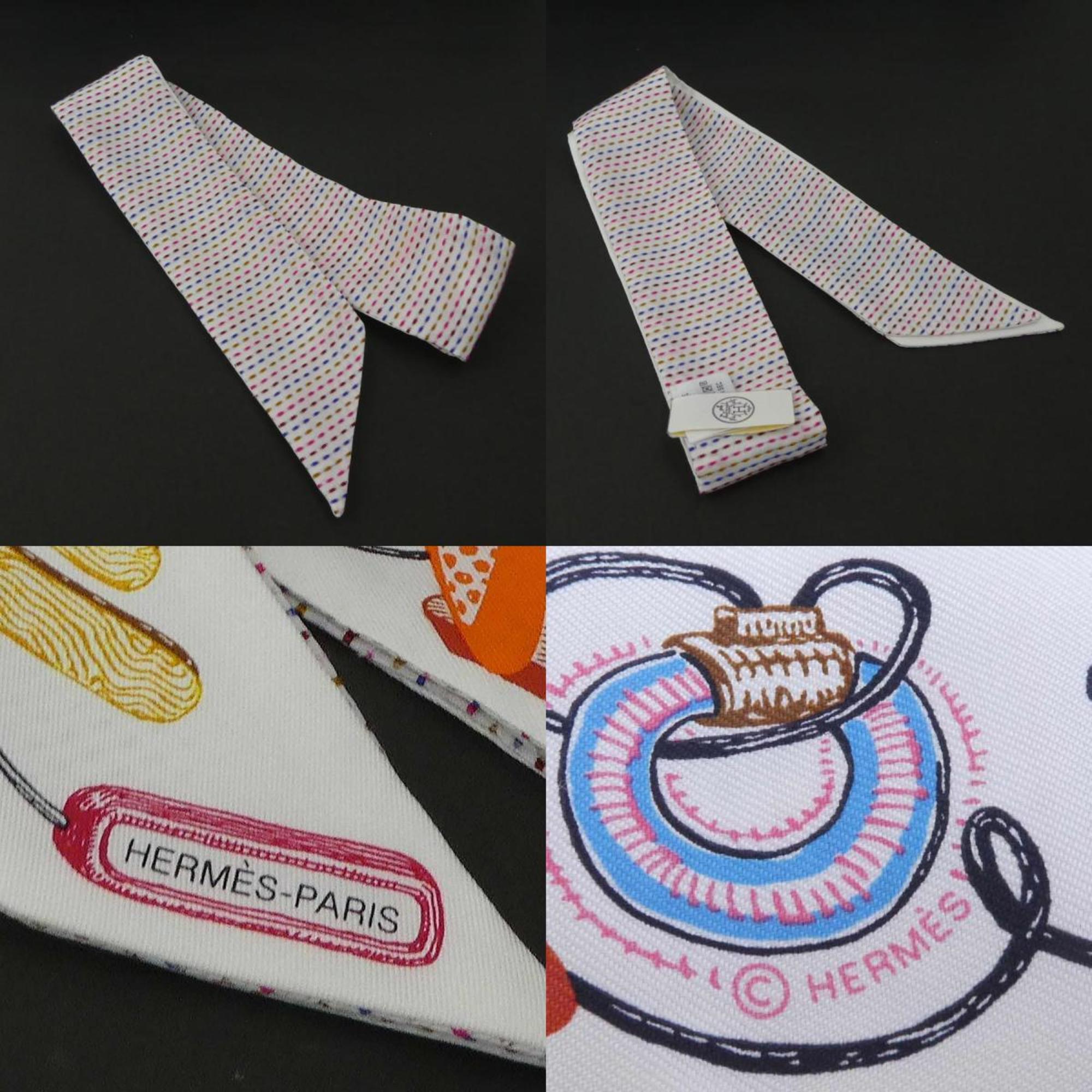 Hermes HERMES Scarf Twilly Silk White x Multicolor Women's h30299f