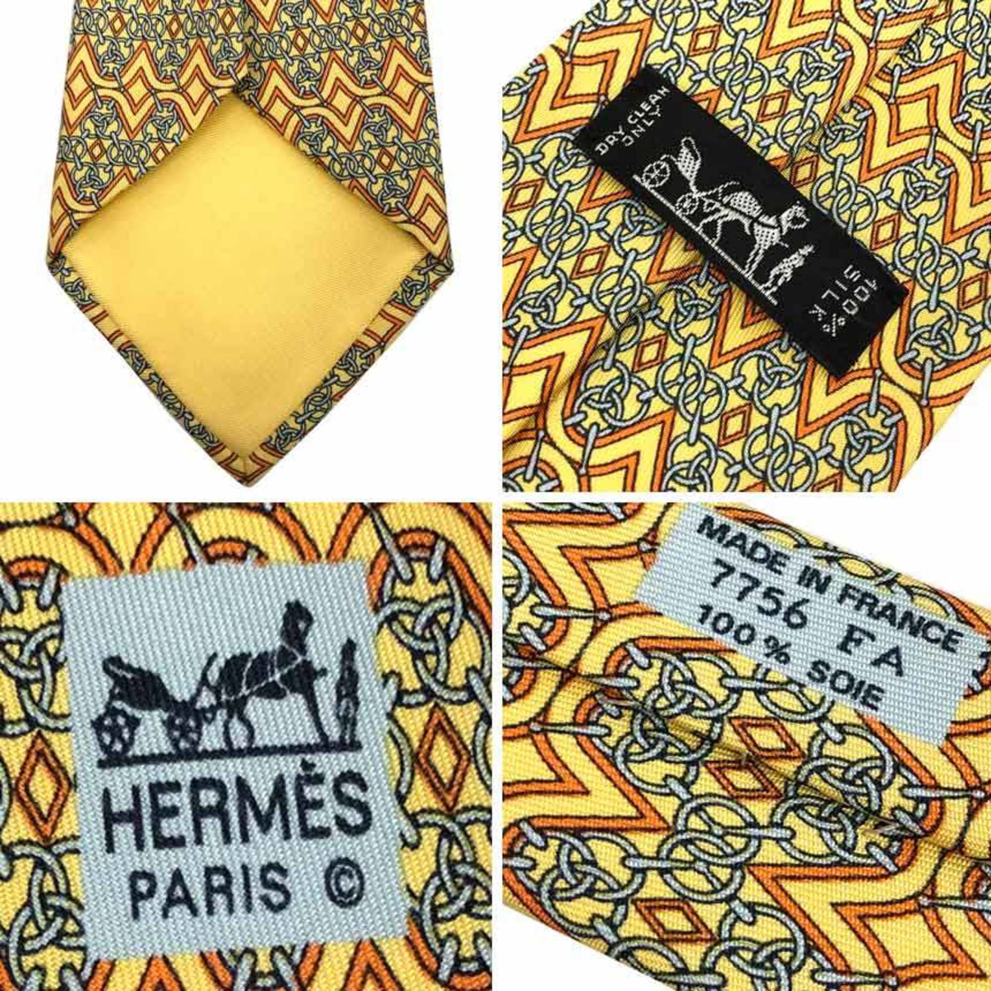 Hermes HERMES tie chain pattern yellow 100% silk men's