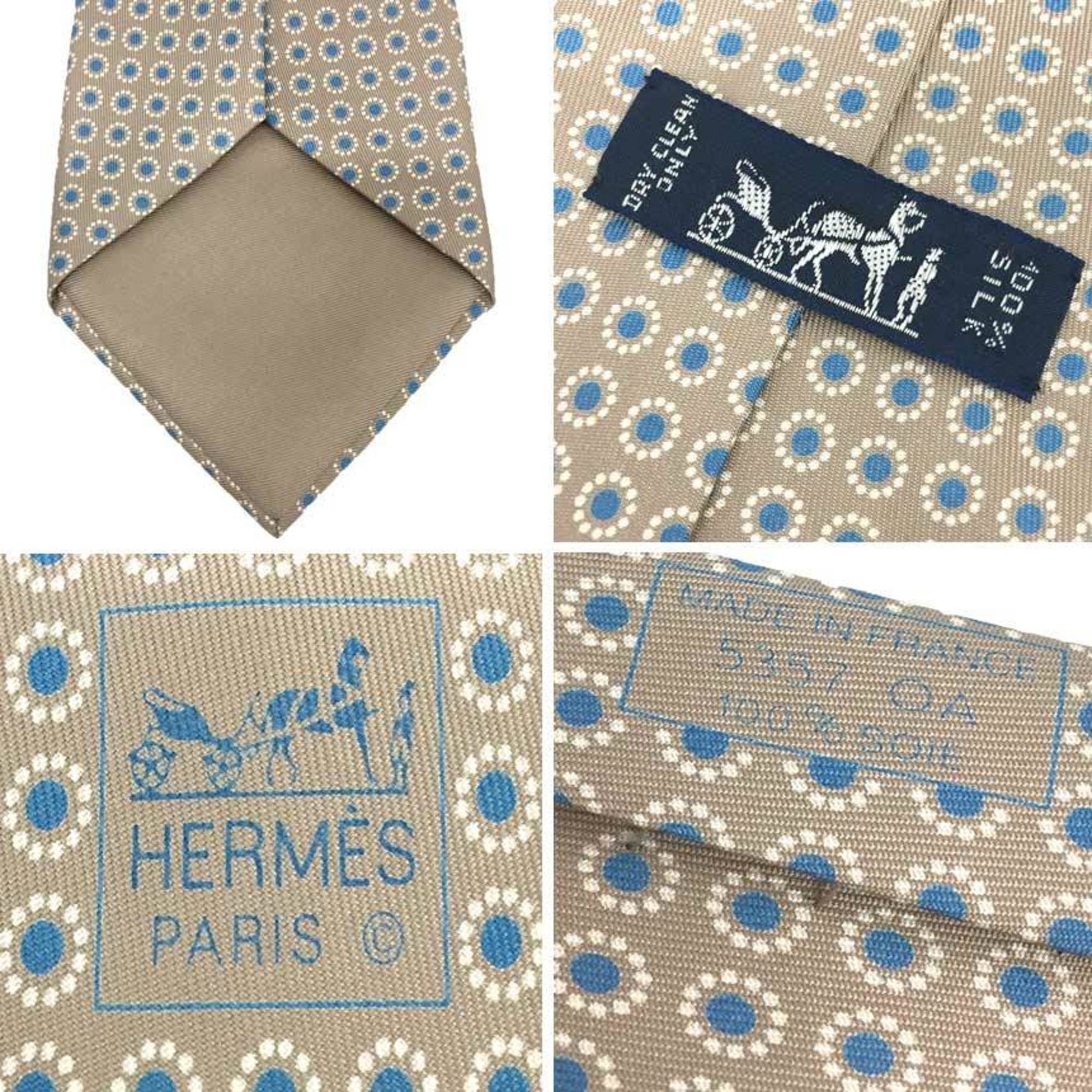 Hermes HERMES tie floral pattern 100% silk greige men's