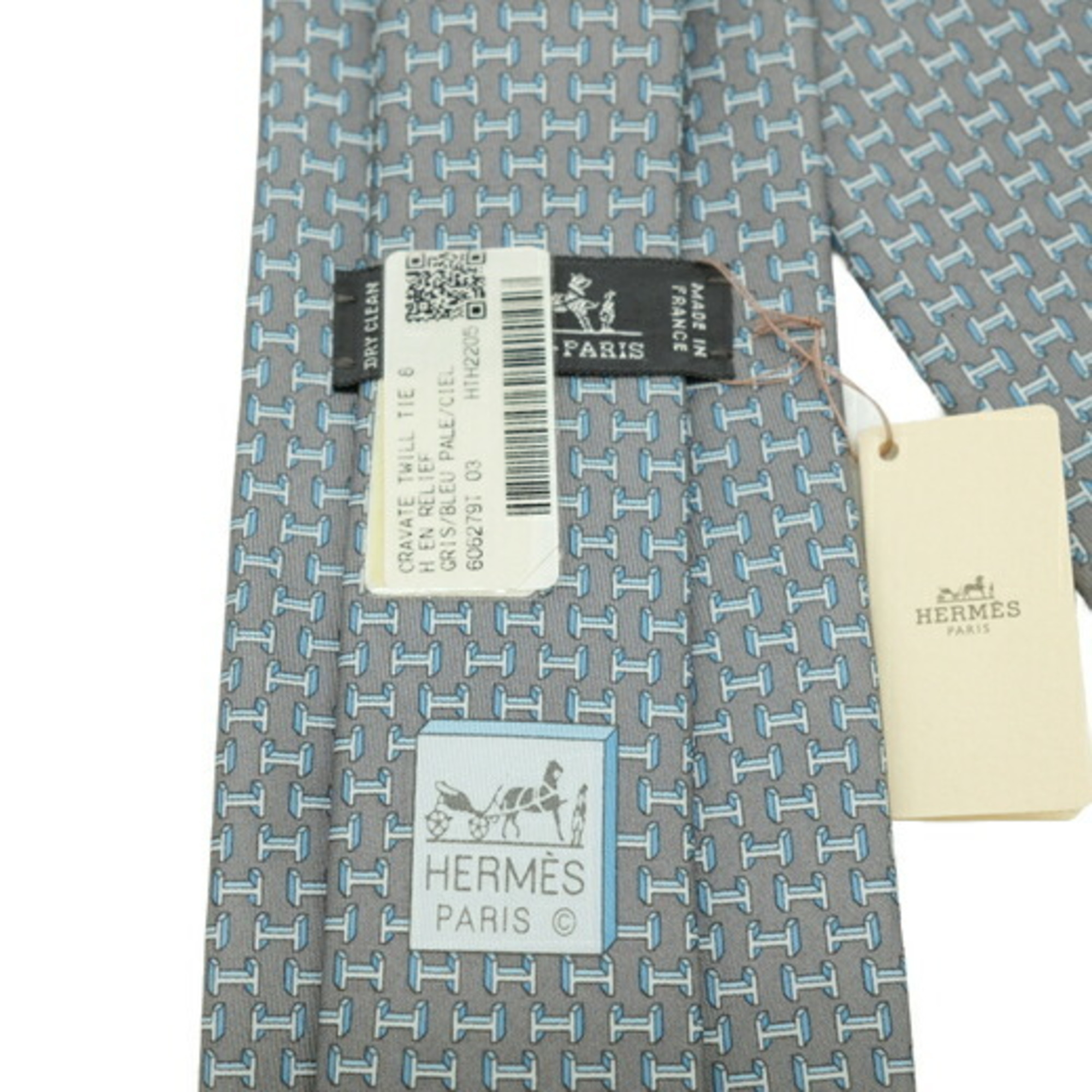 HERMES Hermes tie, gray, H pattern, 100% silk