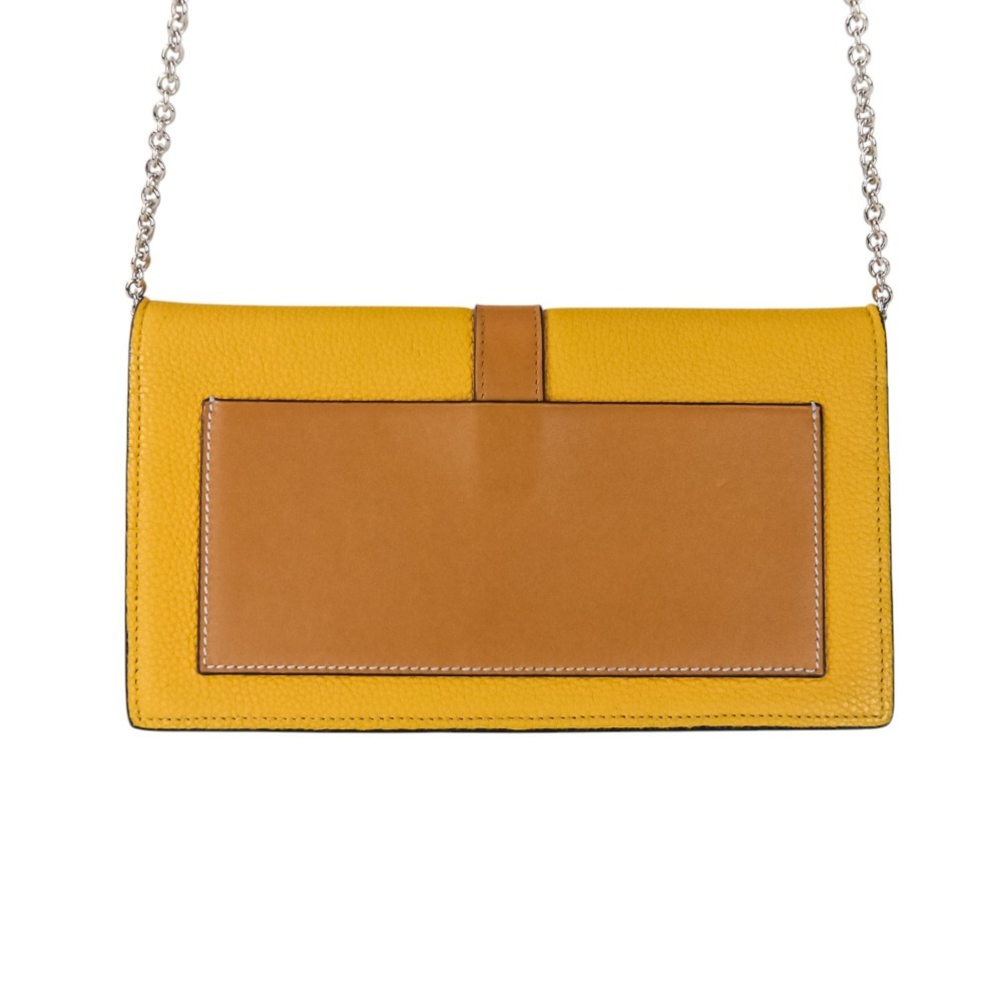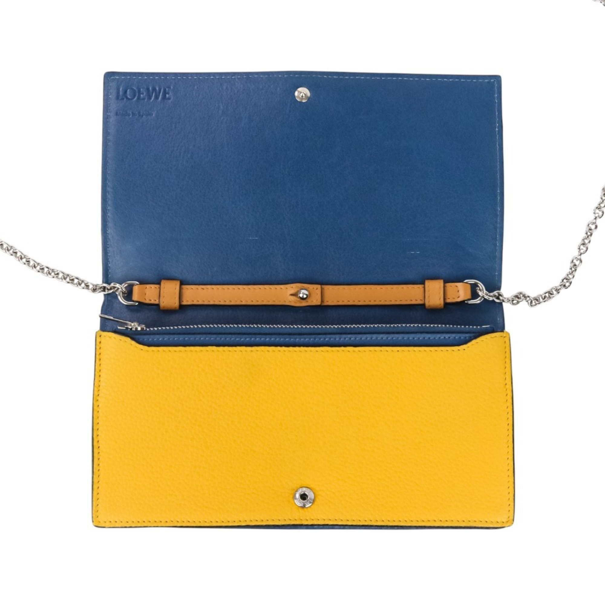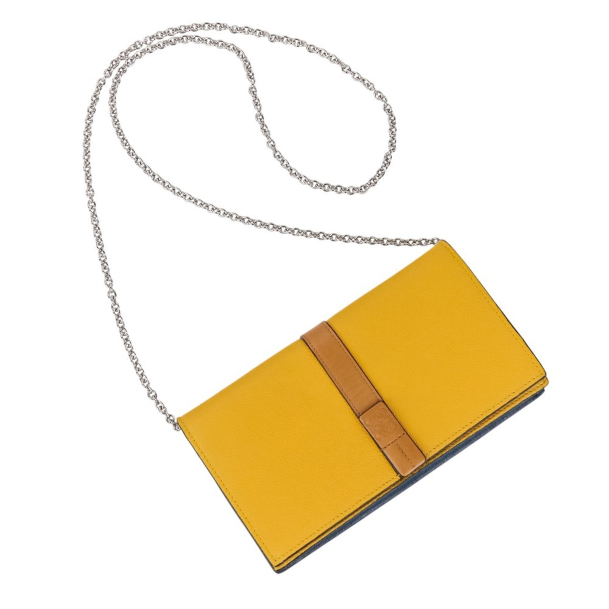 LOEWE Anagram Leather Chain Wallet Shoulder Bag Pochette Yellow Women's