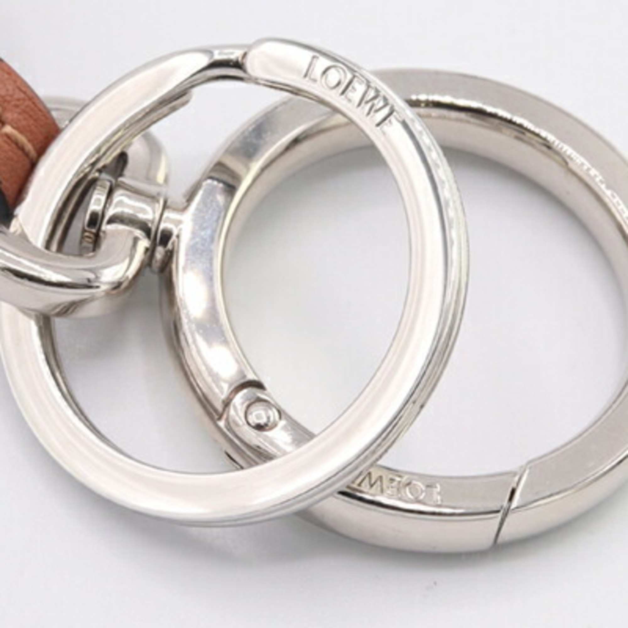 LOEWE Bag Charm Anagram C621232X83 TAN Brown Leather Key Ring Holder Women's