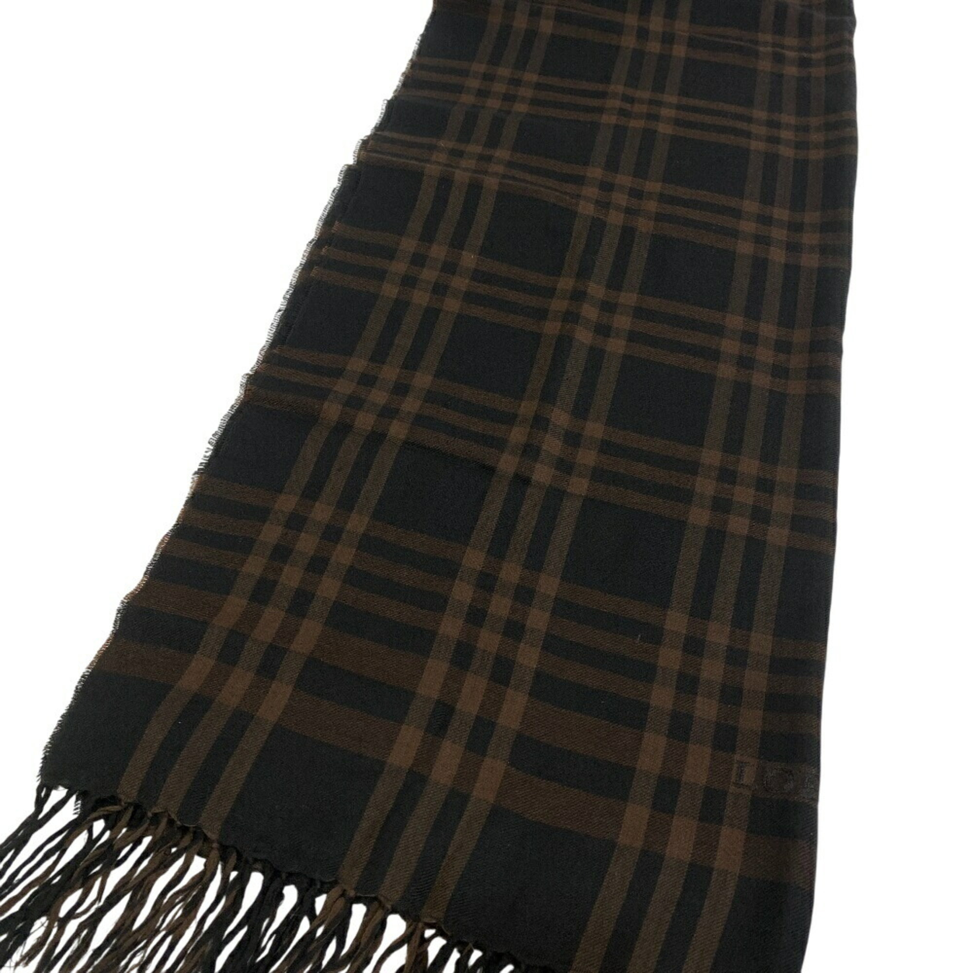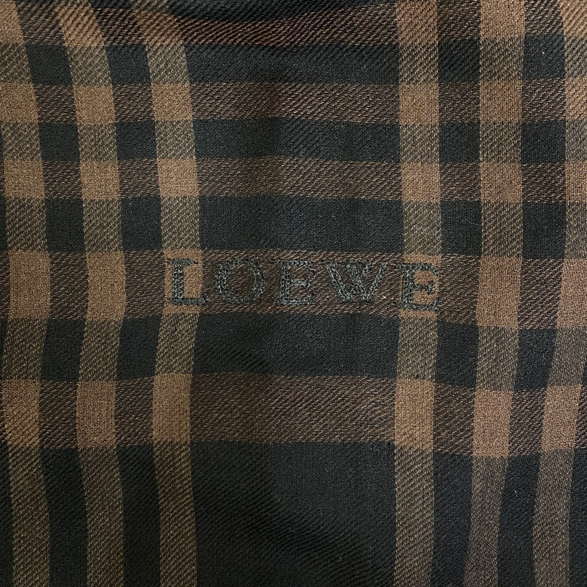 LOEWE Check Scarf Muffler Ribbon Brown Women's