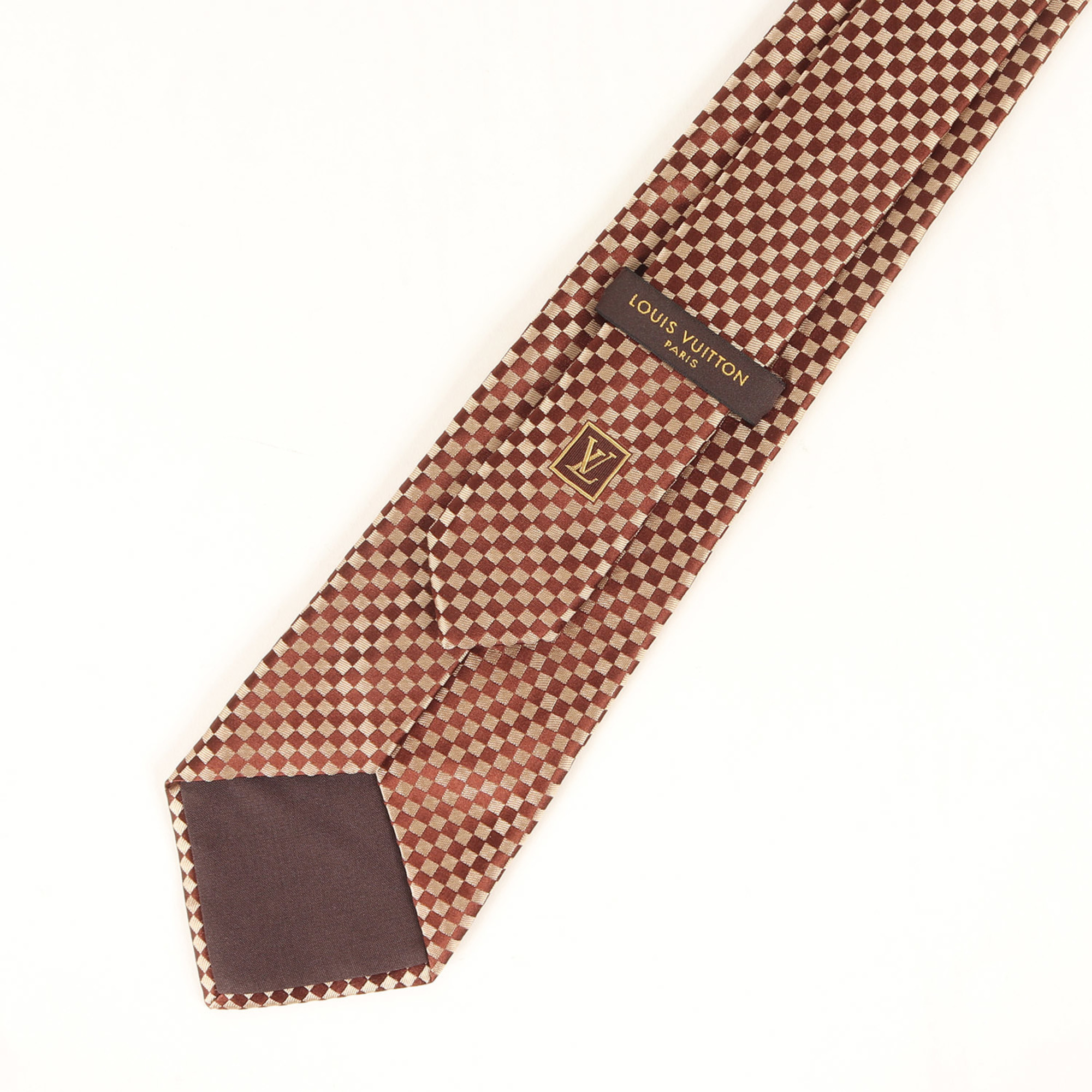 LOUIS VUITTON Louis Vuitton Micro Damier Silk Cravate Tie Brown Men's K4615