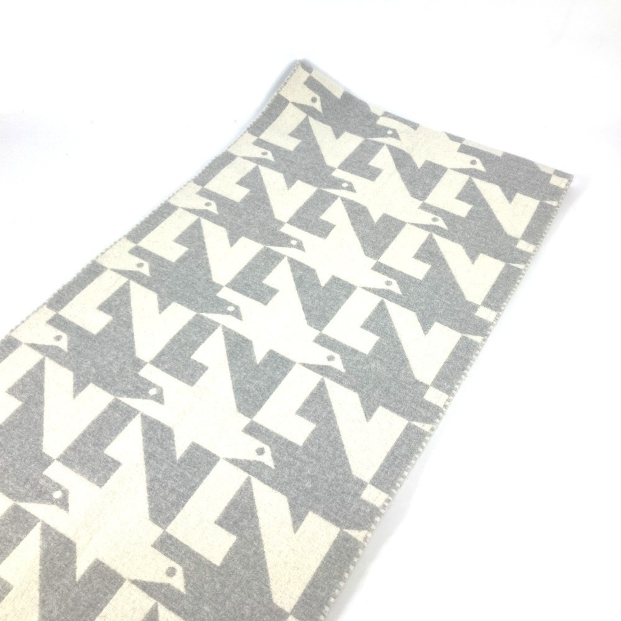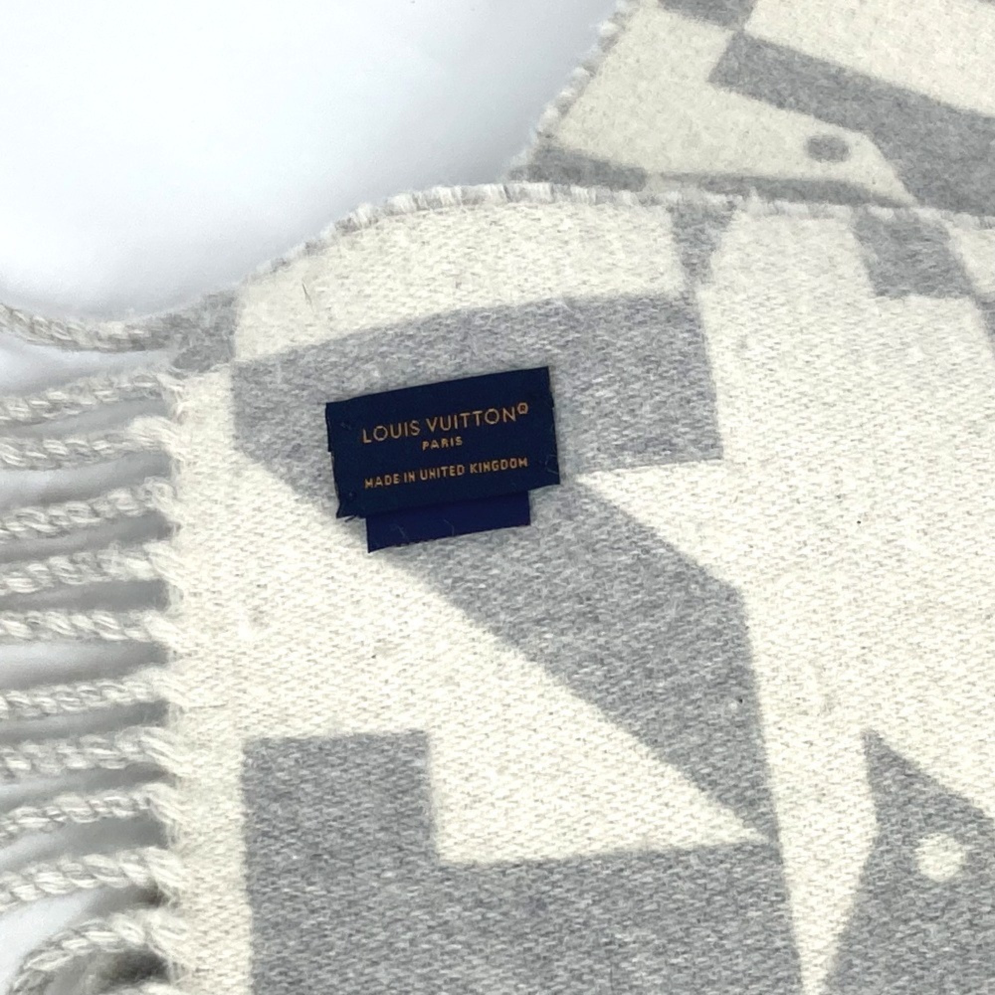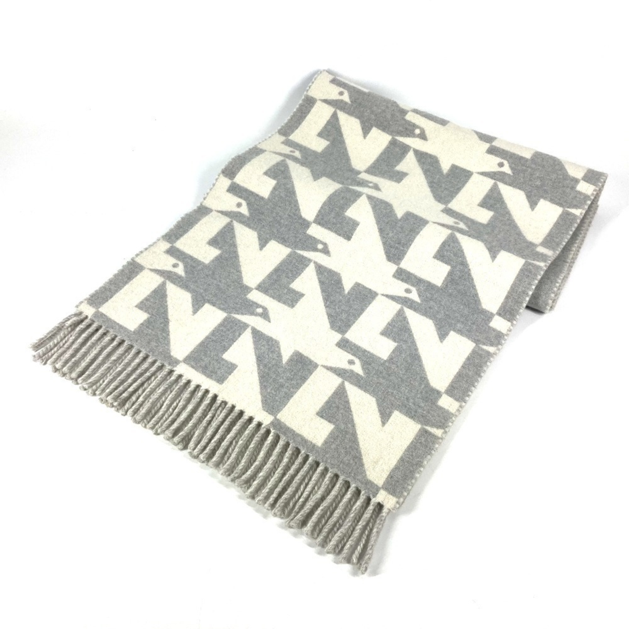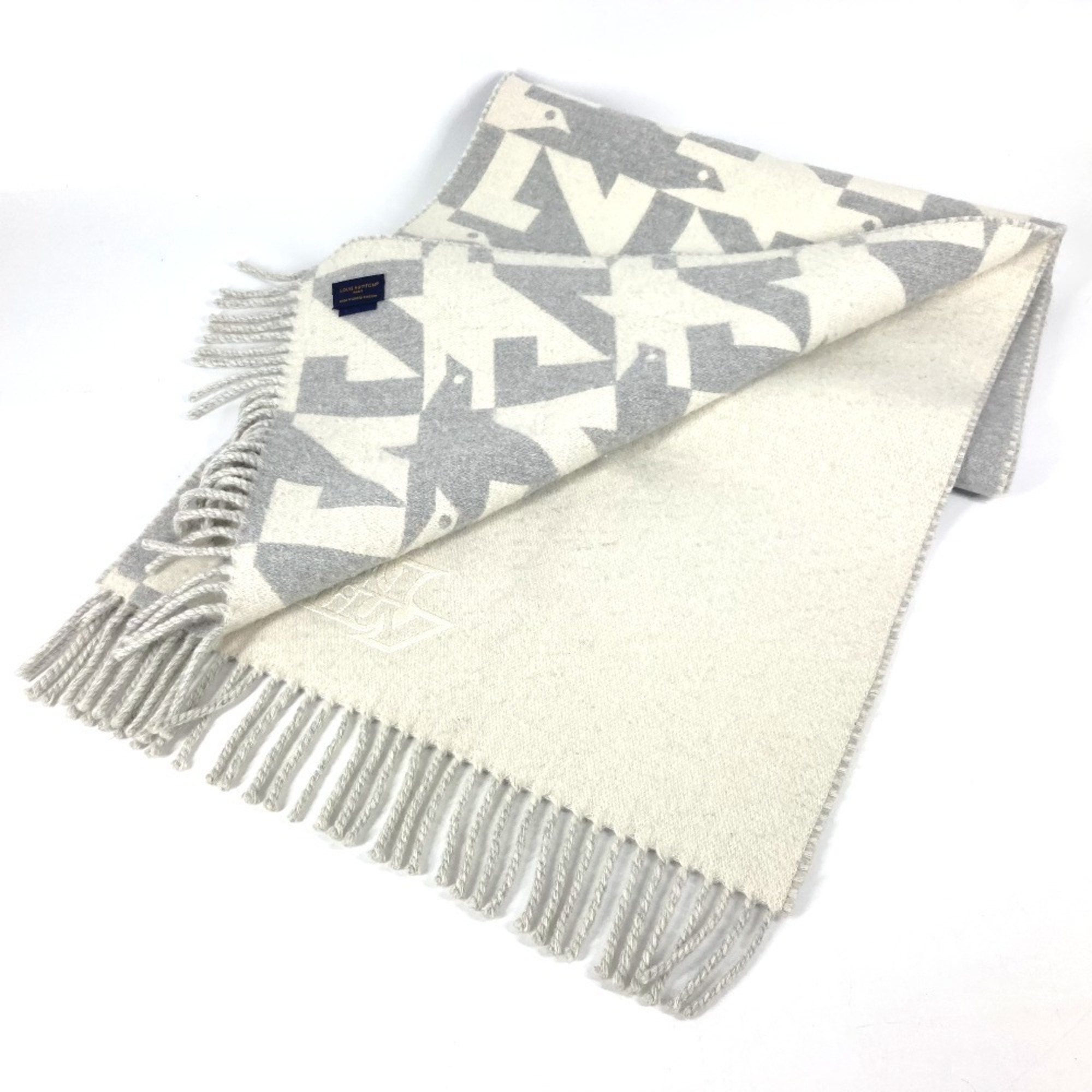 Home / ACCESSORIES / LOUIS VUITTON M78004 Fringe Scarf LV Dove Logo Wool Cashmere Men’s Women’s Grey