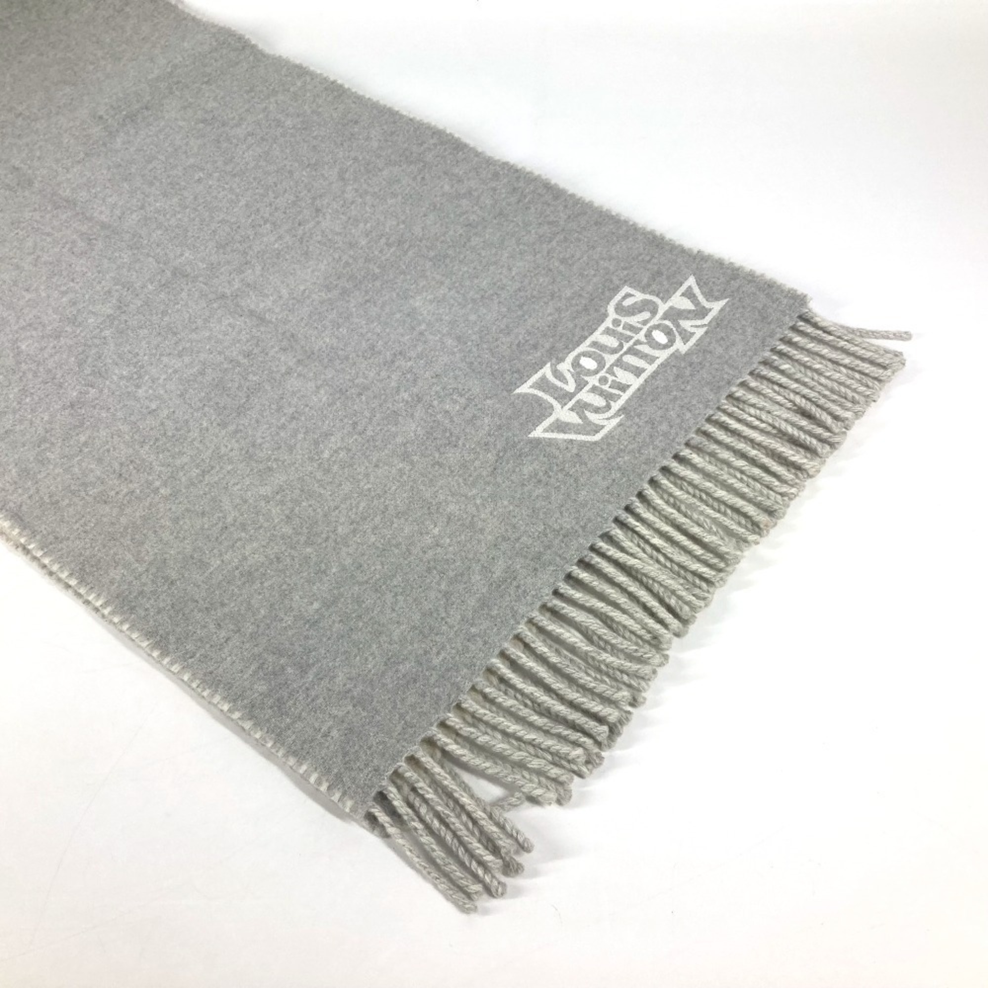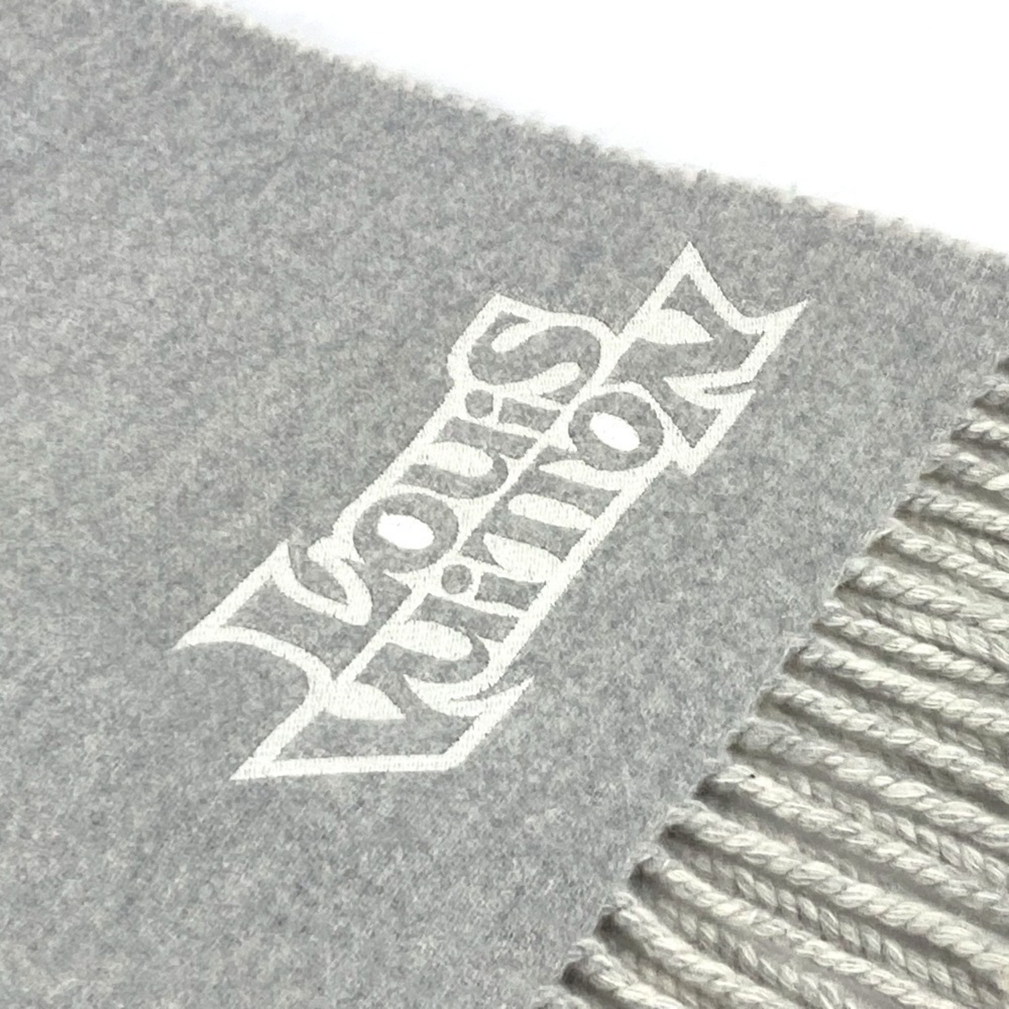 LOUIS VUITTON M78004 Fringe Scarf LV Dove Logo Wool Cashmere Men's Women's Grey